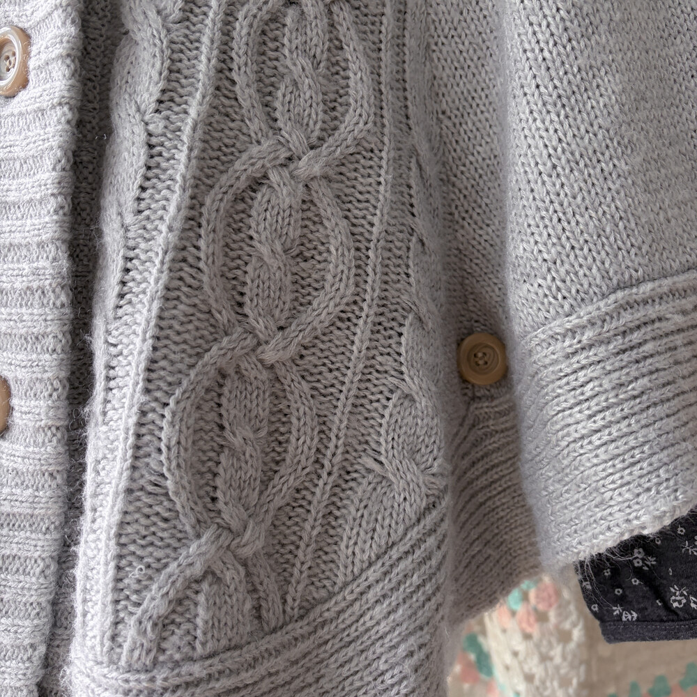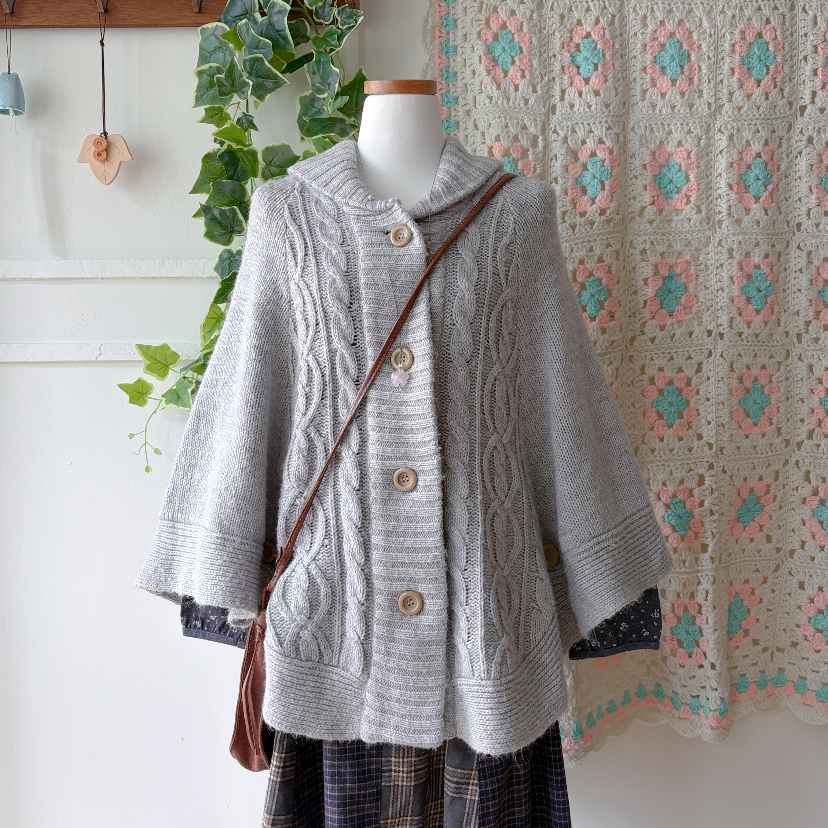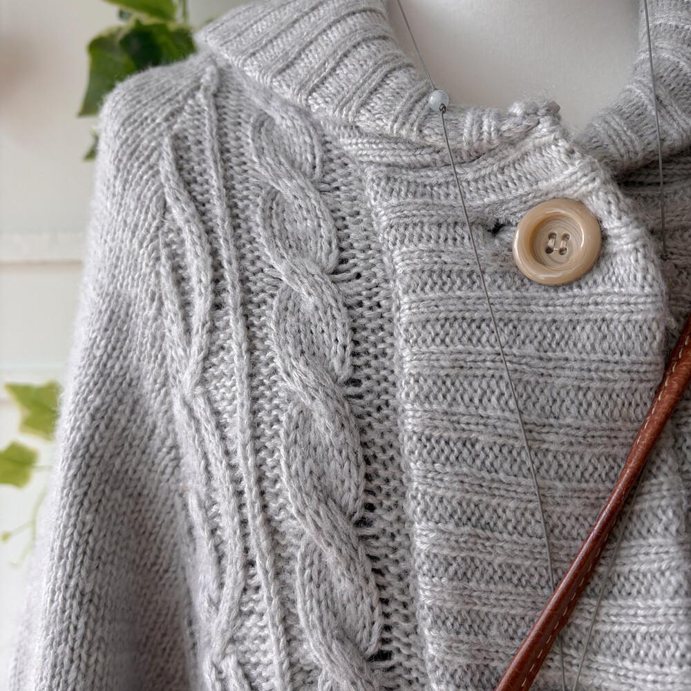 밝은 그레이 색감의 케이프 가디건이에요