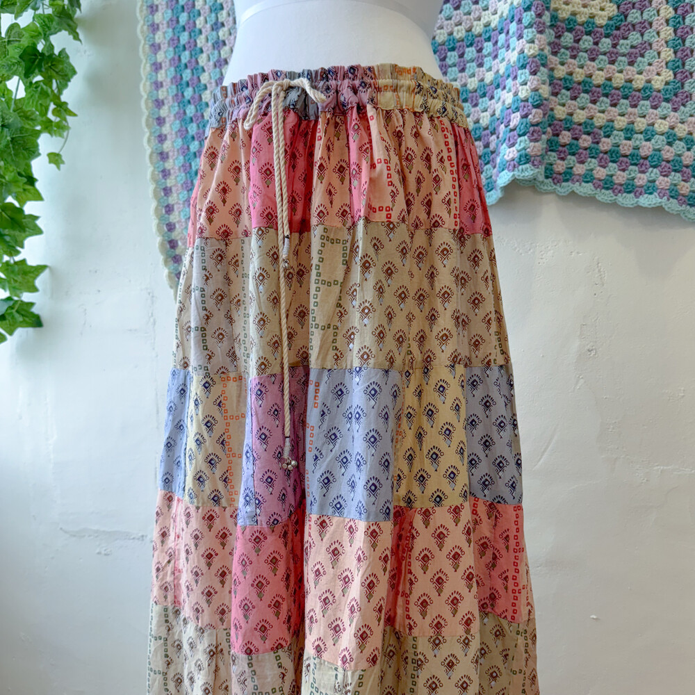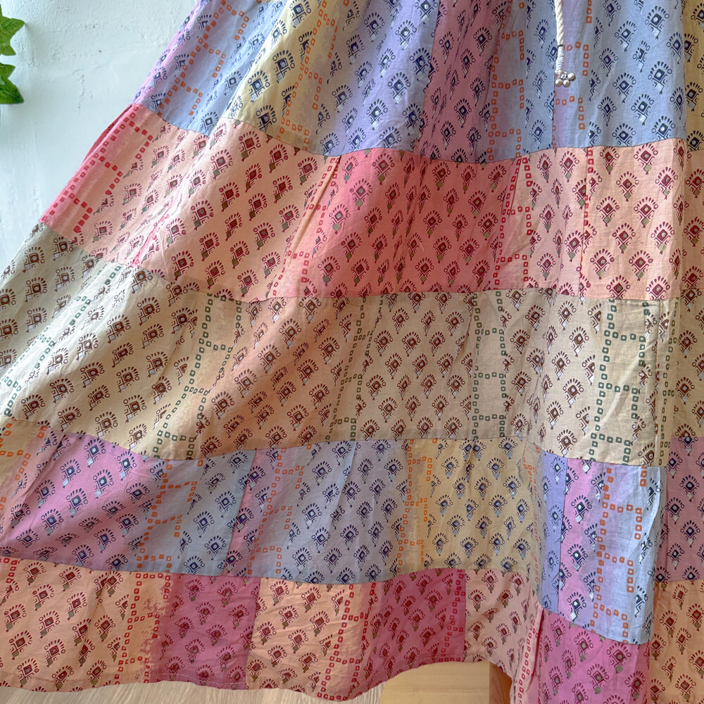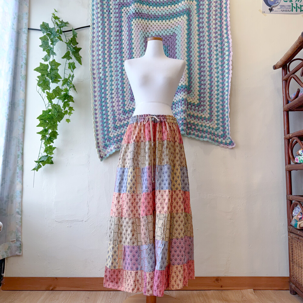 히피한 분위기의 패치워크 스커트예요