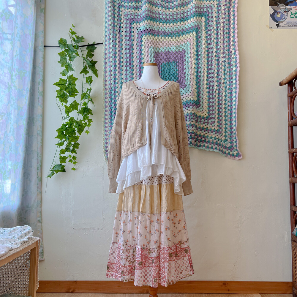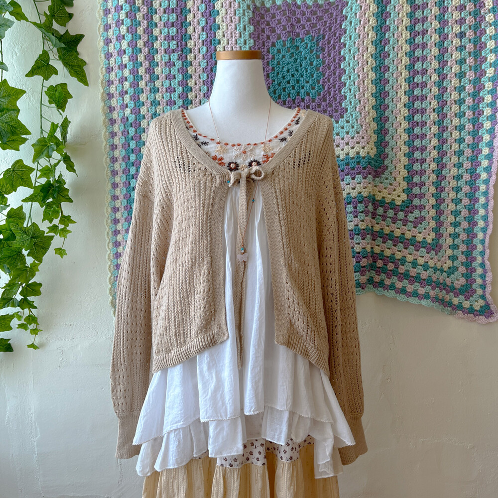 베이지 색감의 펀칭 가디건이에요