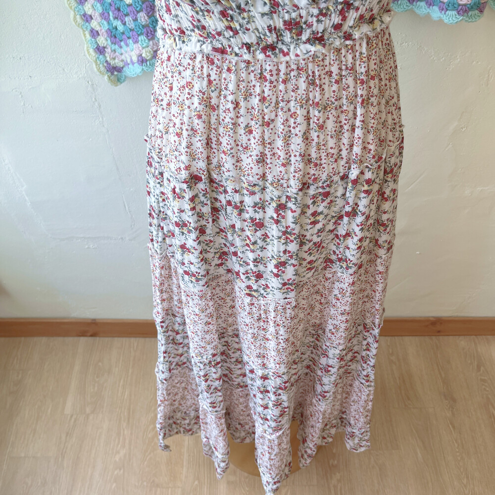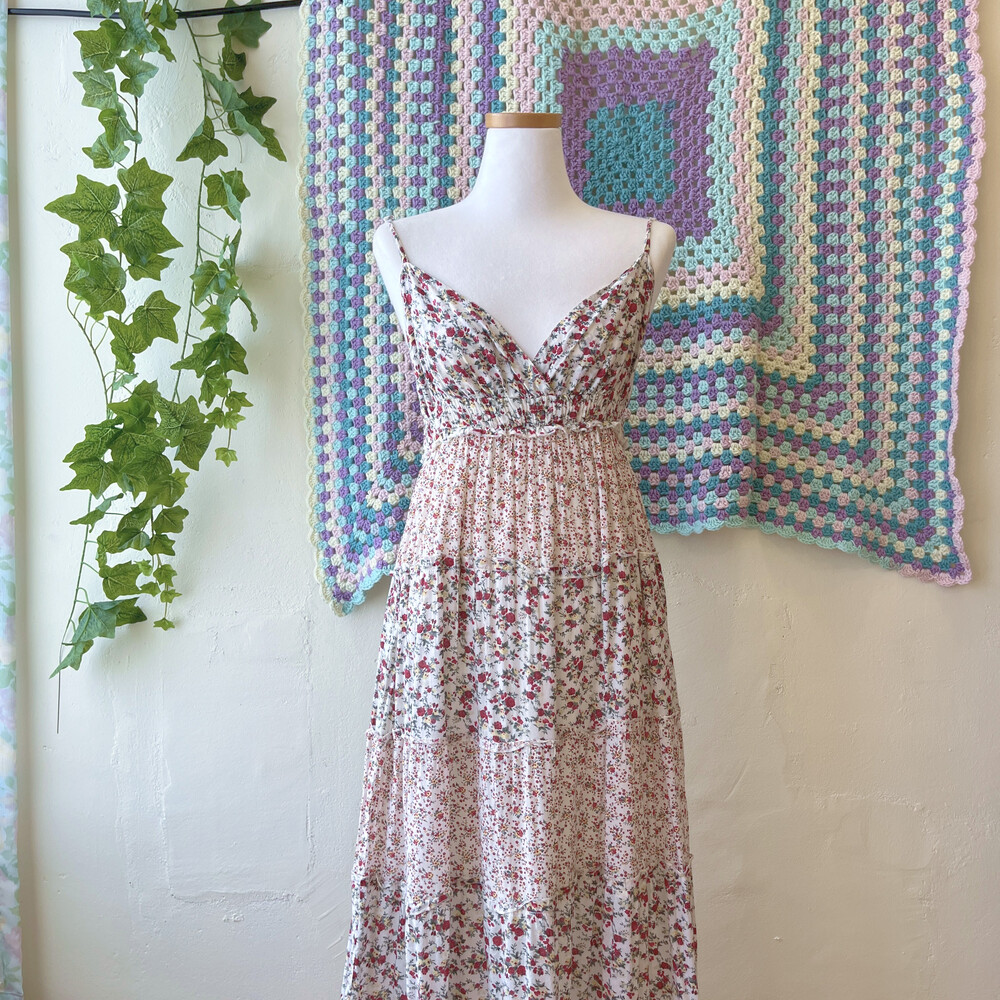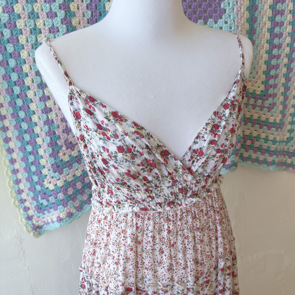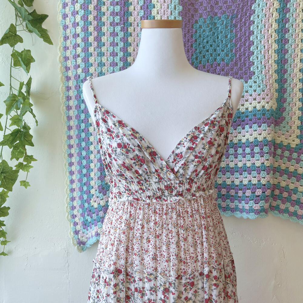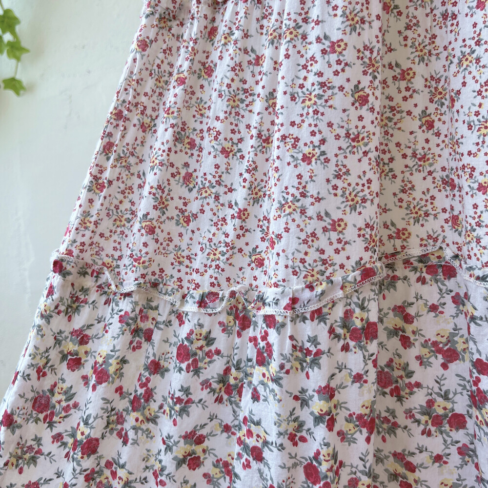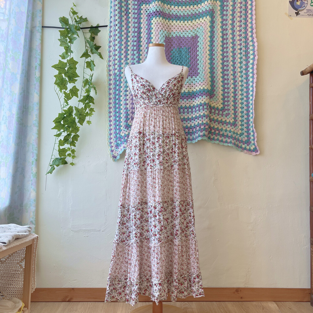 로즈 패턴의 브이넥 코튼 끈원피스예요