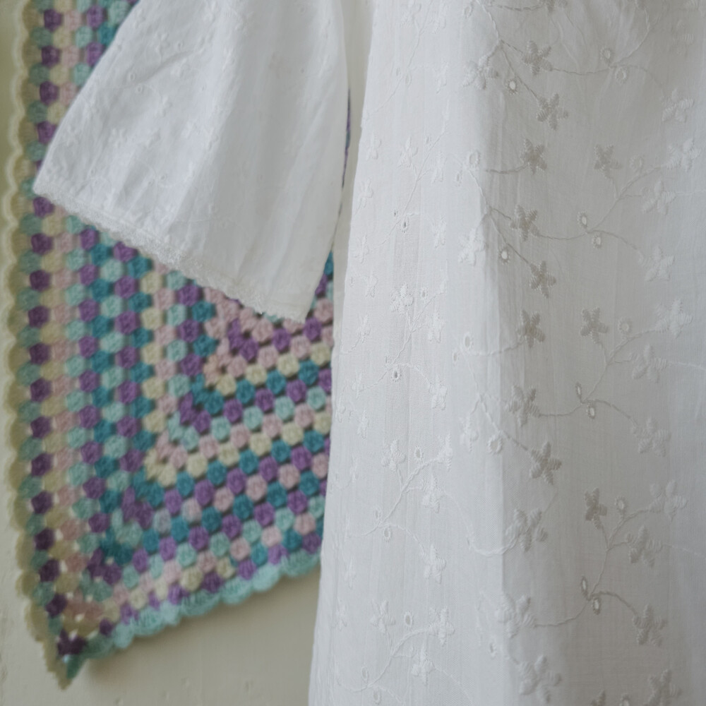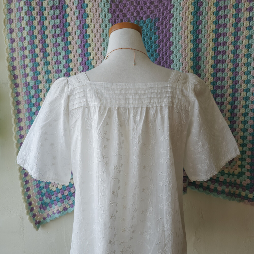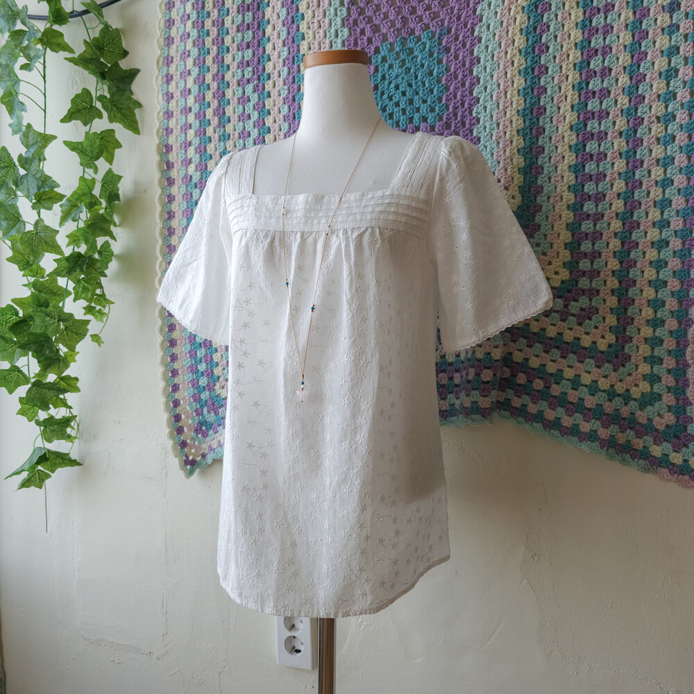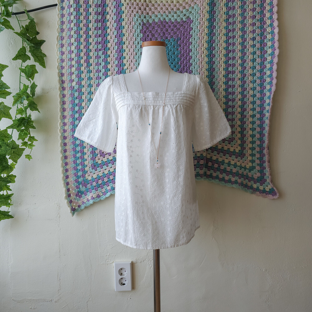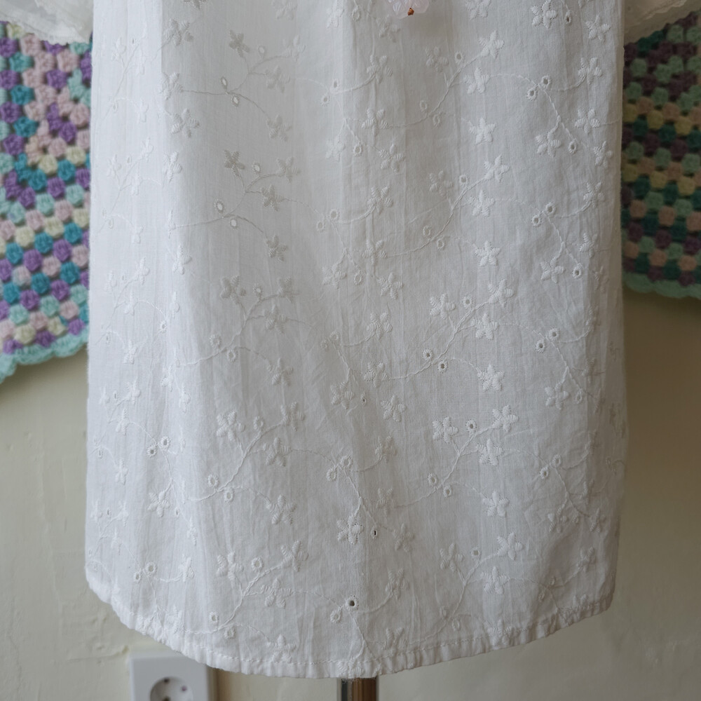 화이트 색감의 자수 블라우스예요