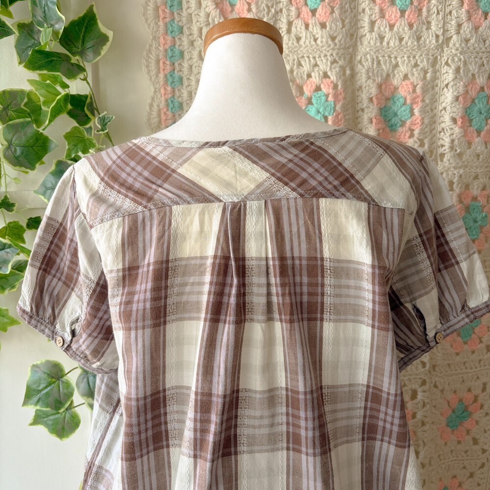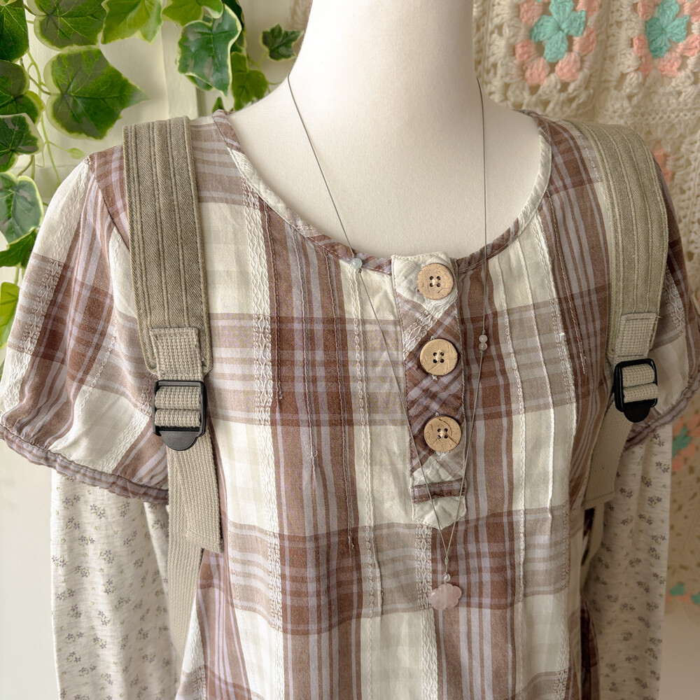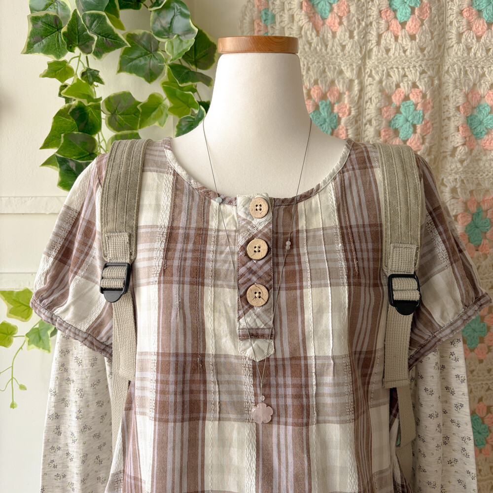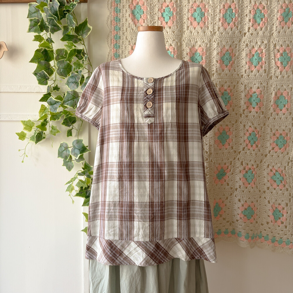 brown&light khaki check wood button bl