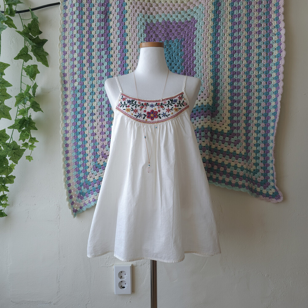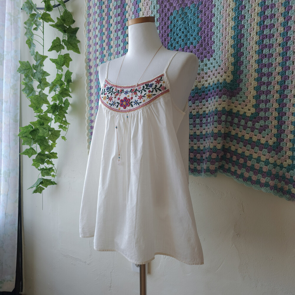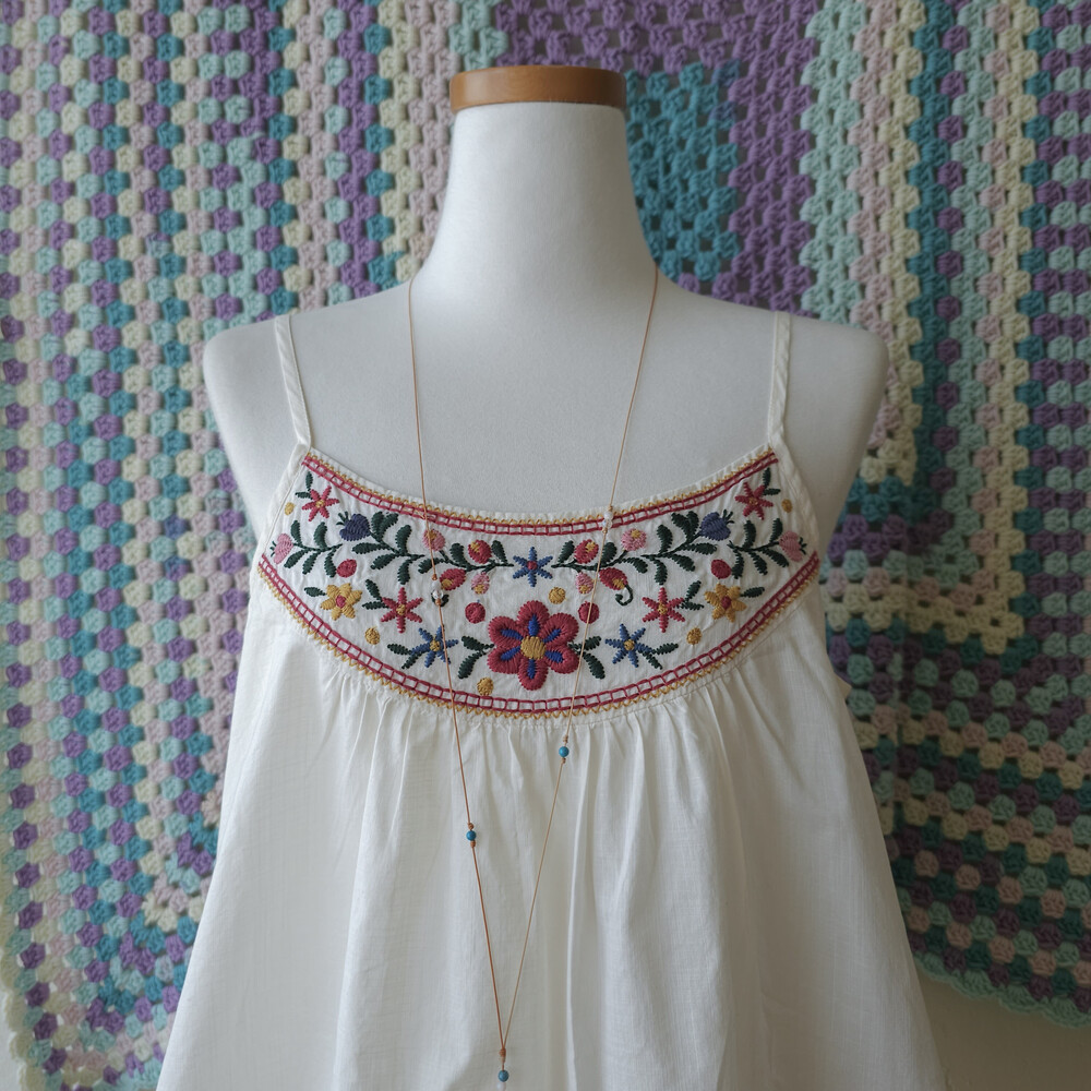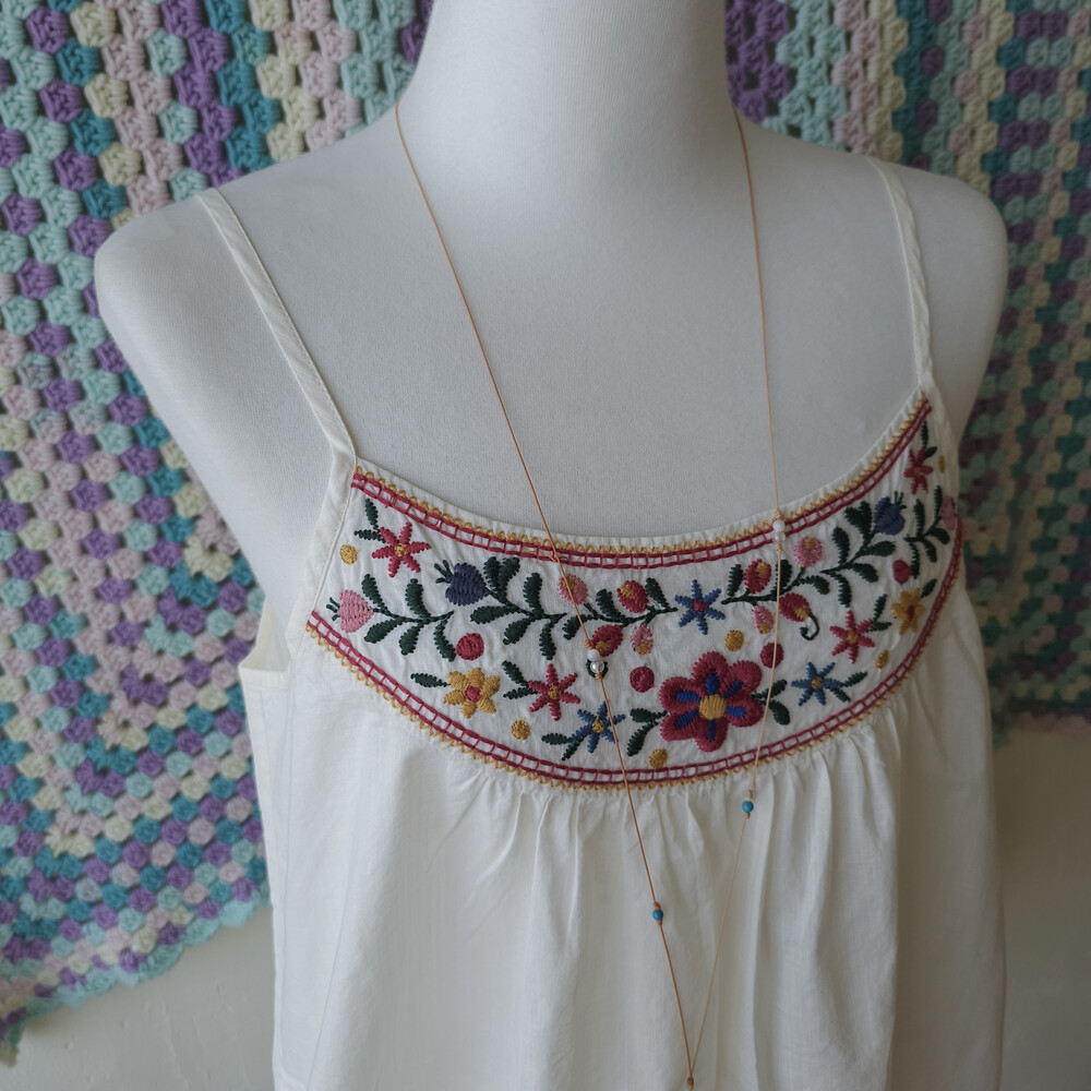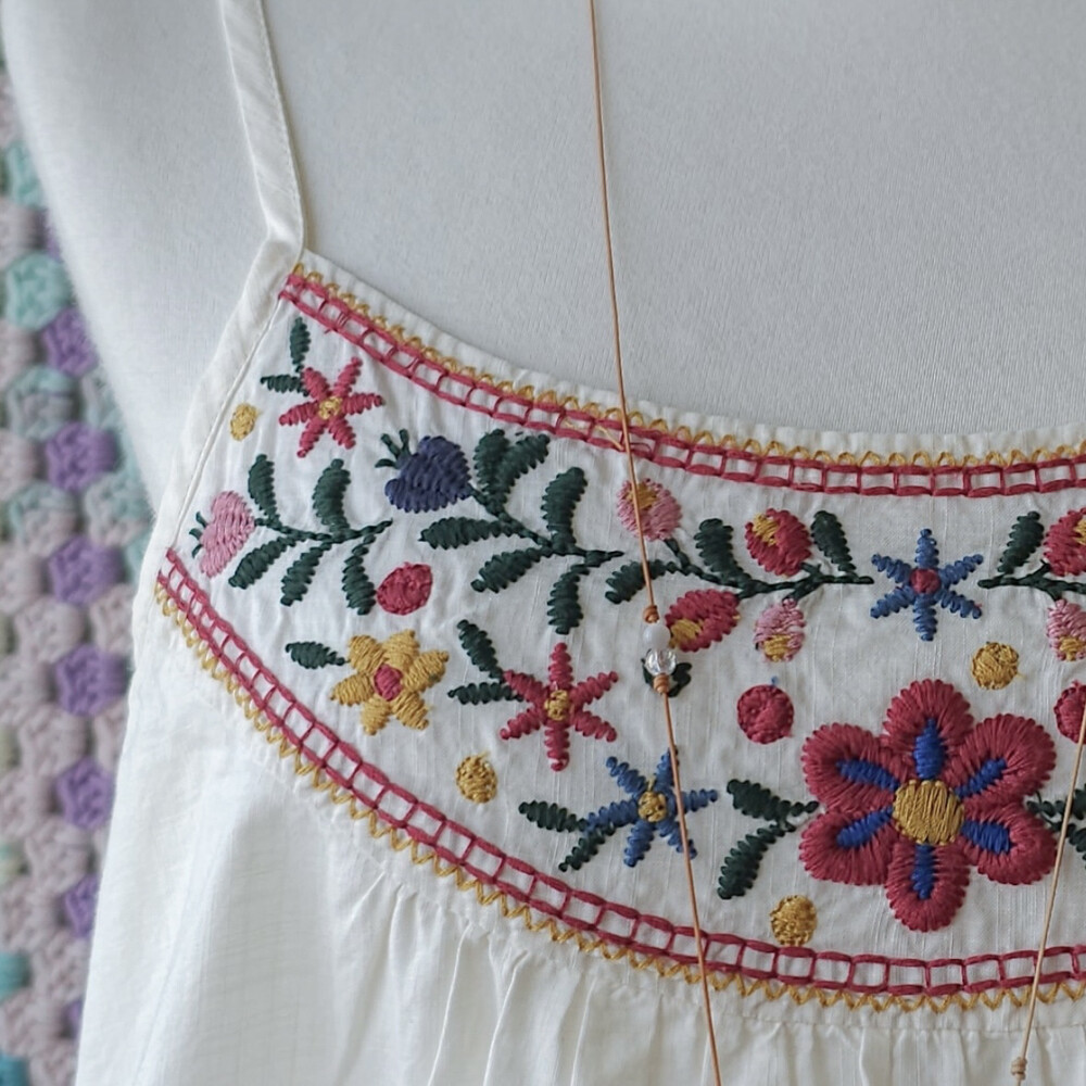 자수 포인트의 끈나시 블라우스예요