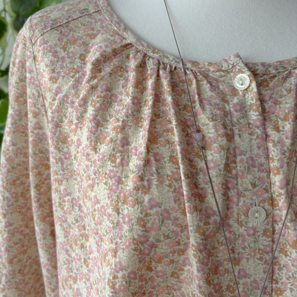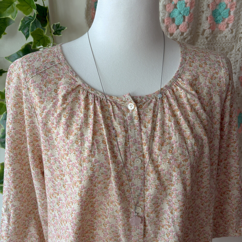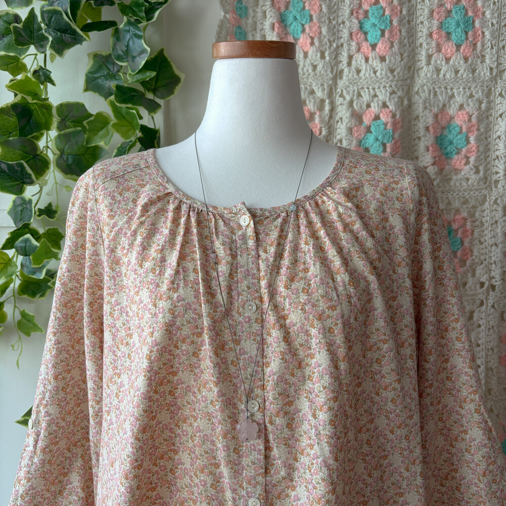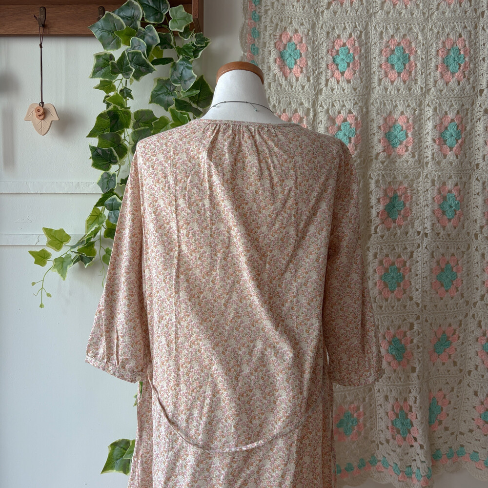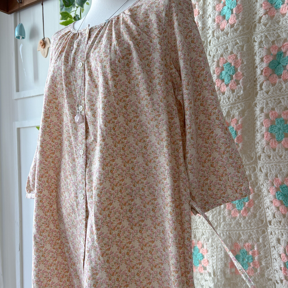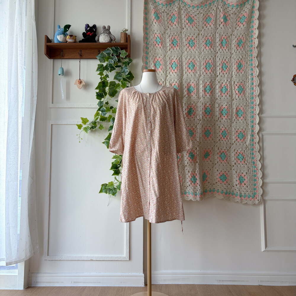 연핑크와 브라운 꽃무늬 버튼업 원피스예요