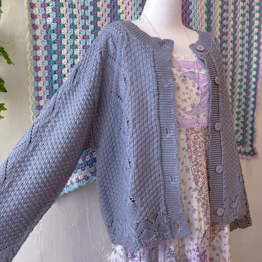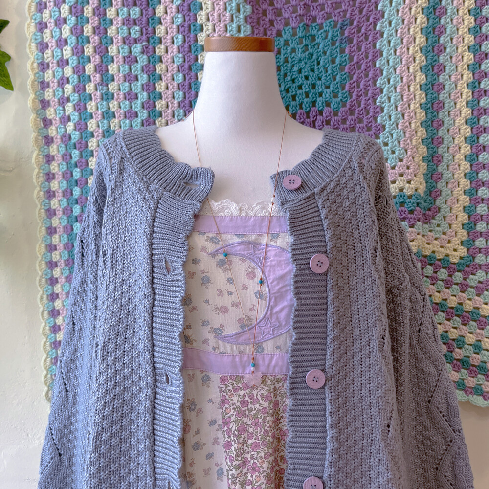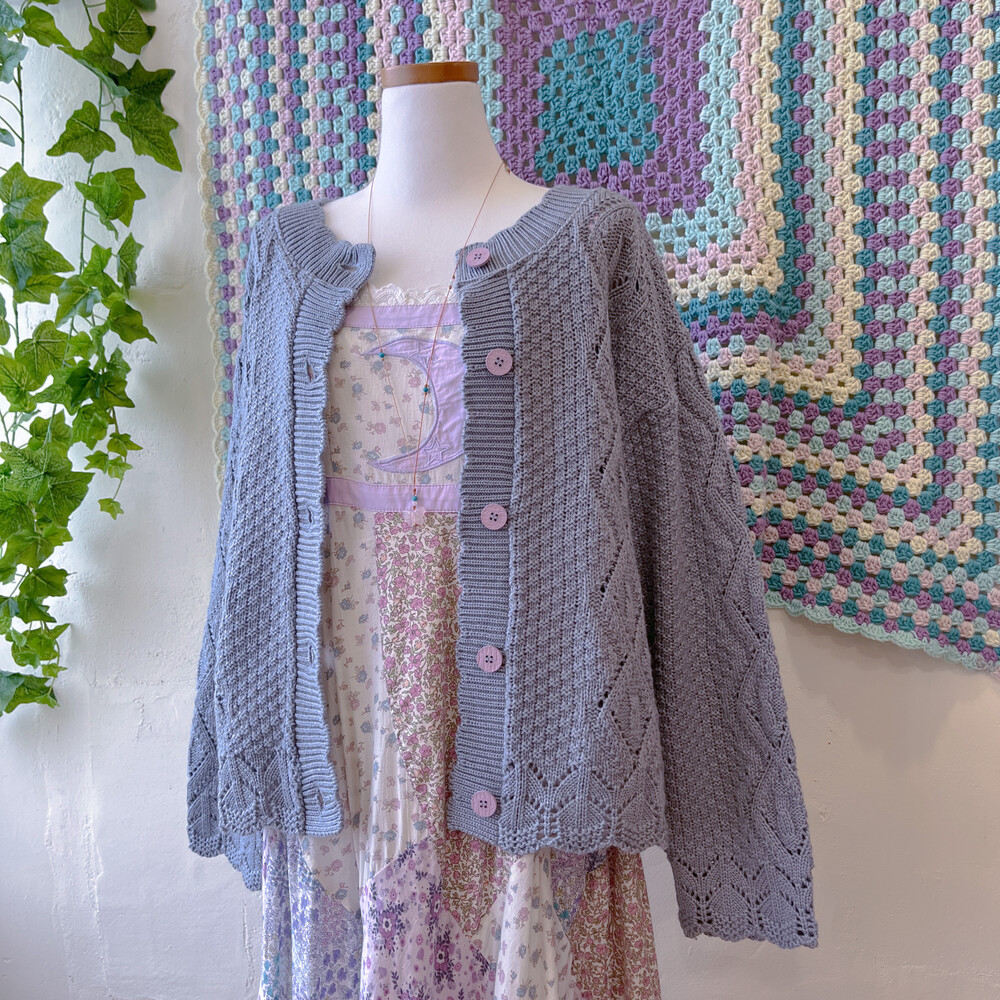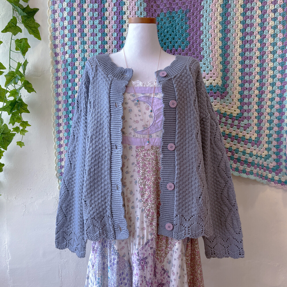 진한 소라색감의 니트 가디건이에요