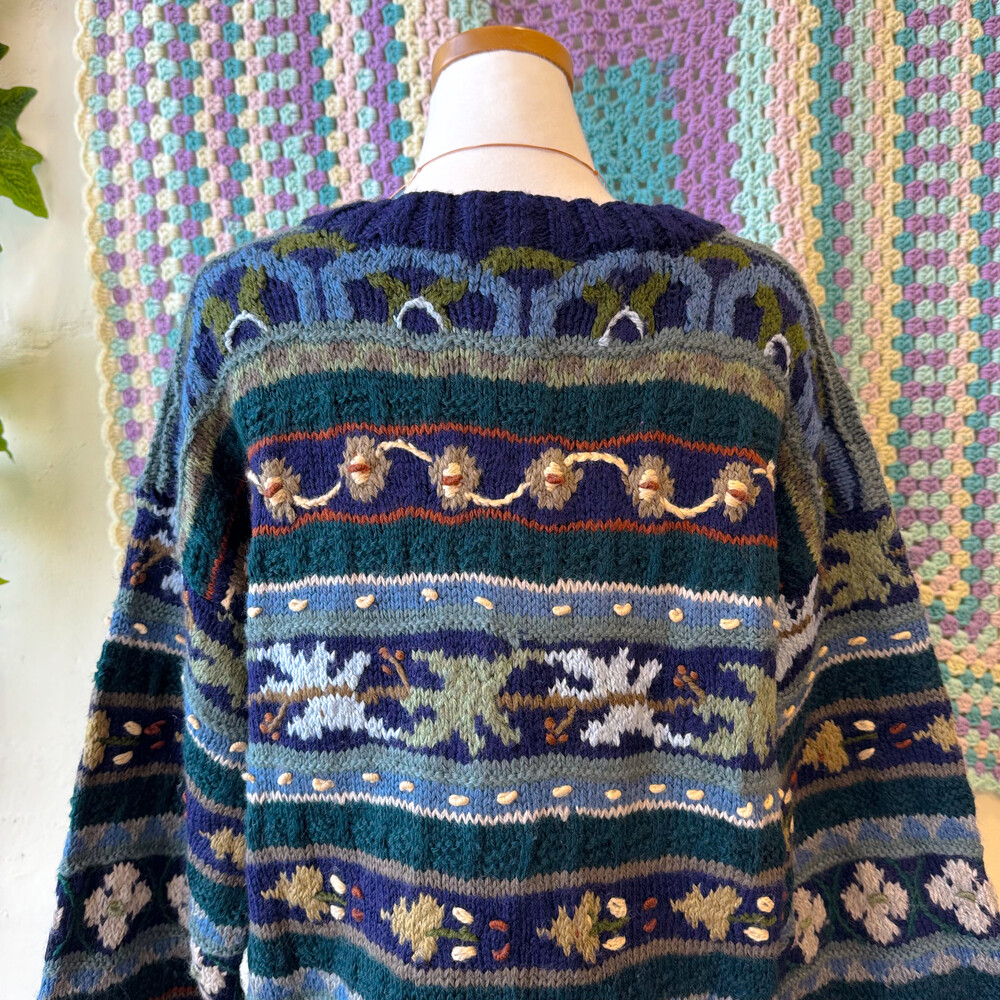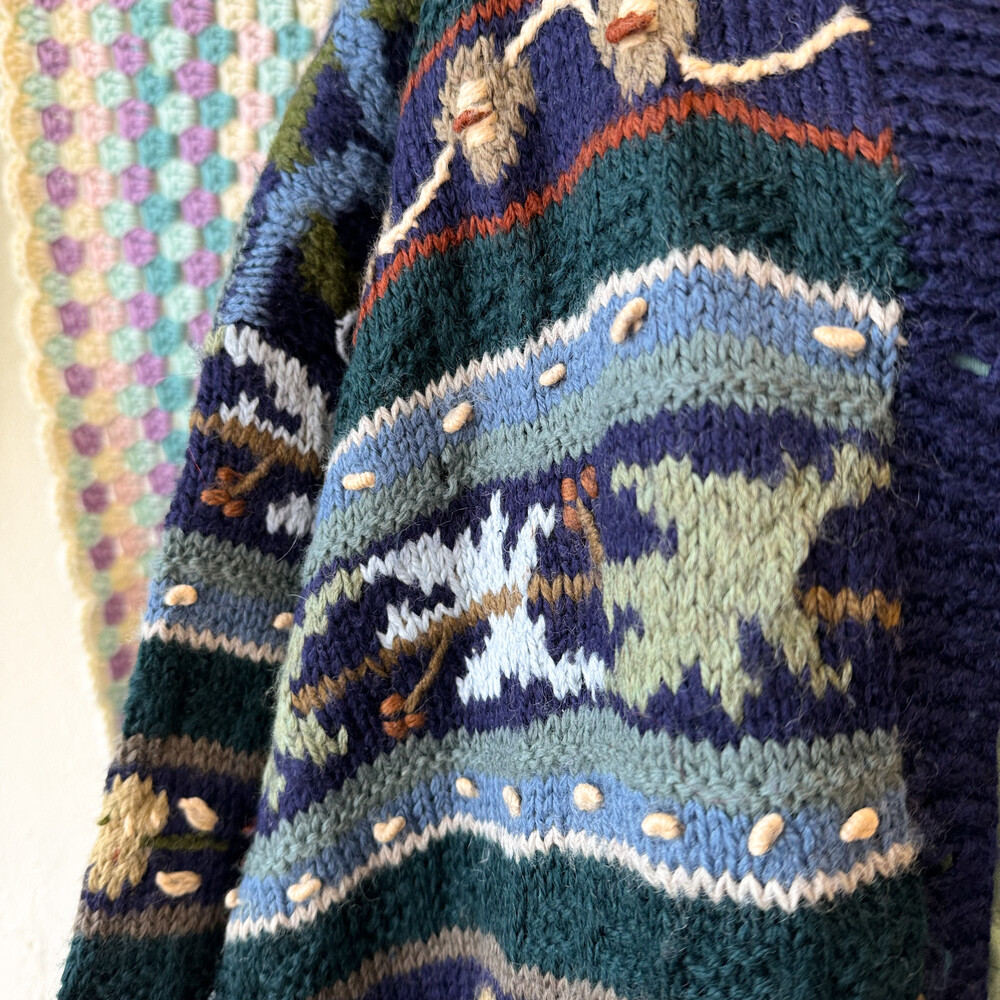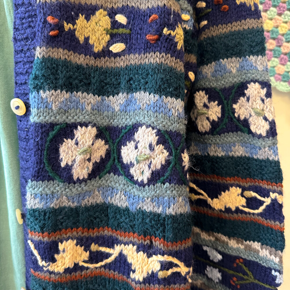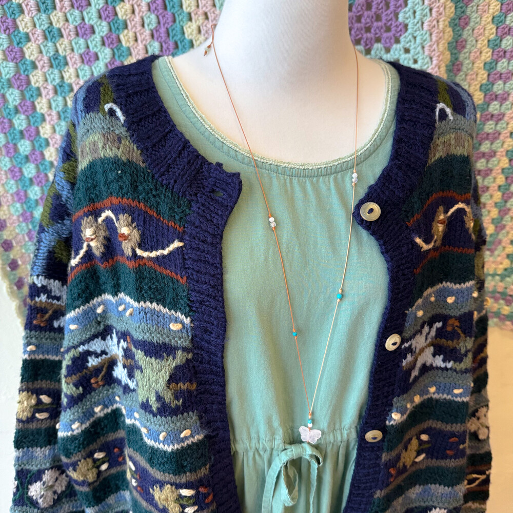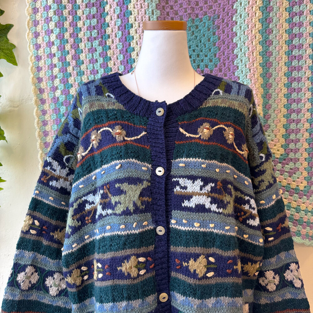 네이비, 그린 색감 등 조합의 자수 롱가디건이에요