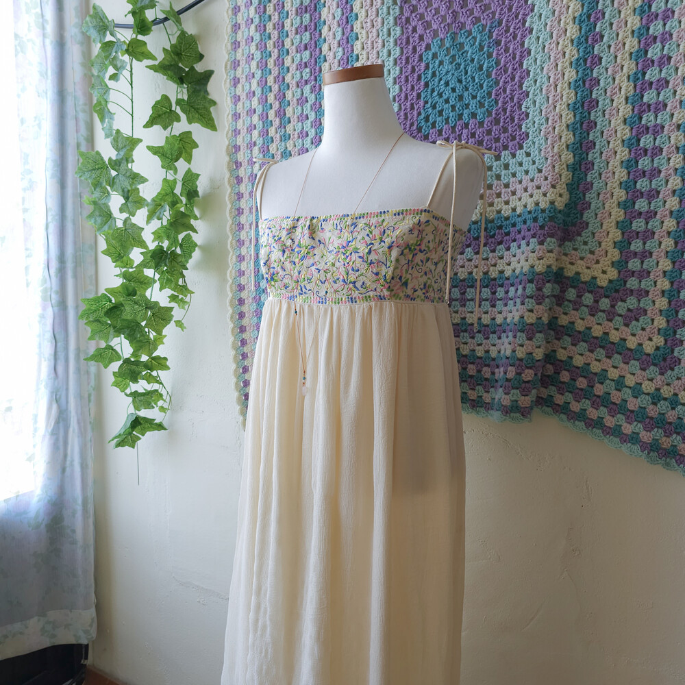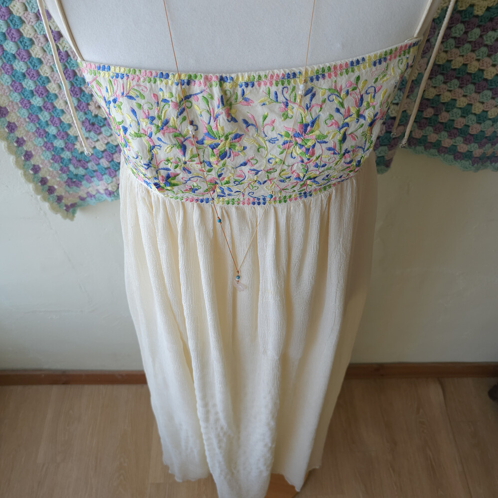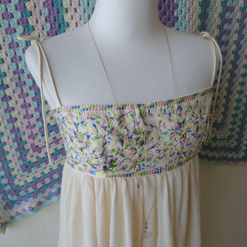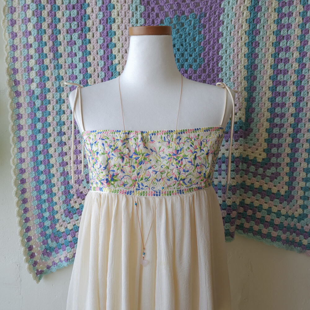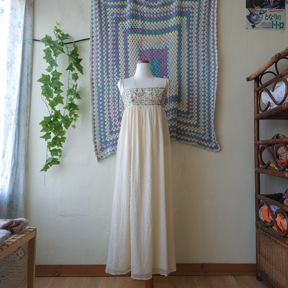 가슴 자수 포인트의 끈원피스예요