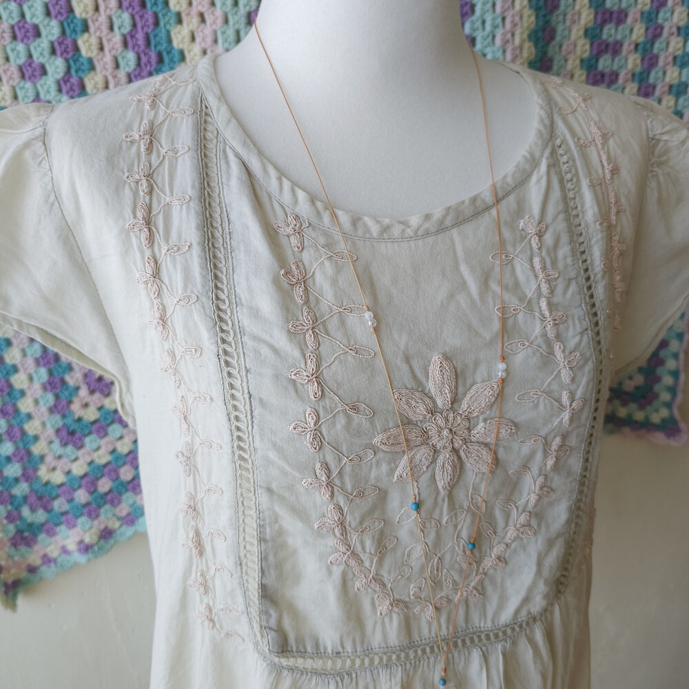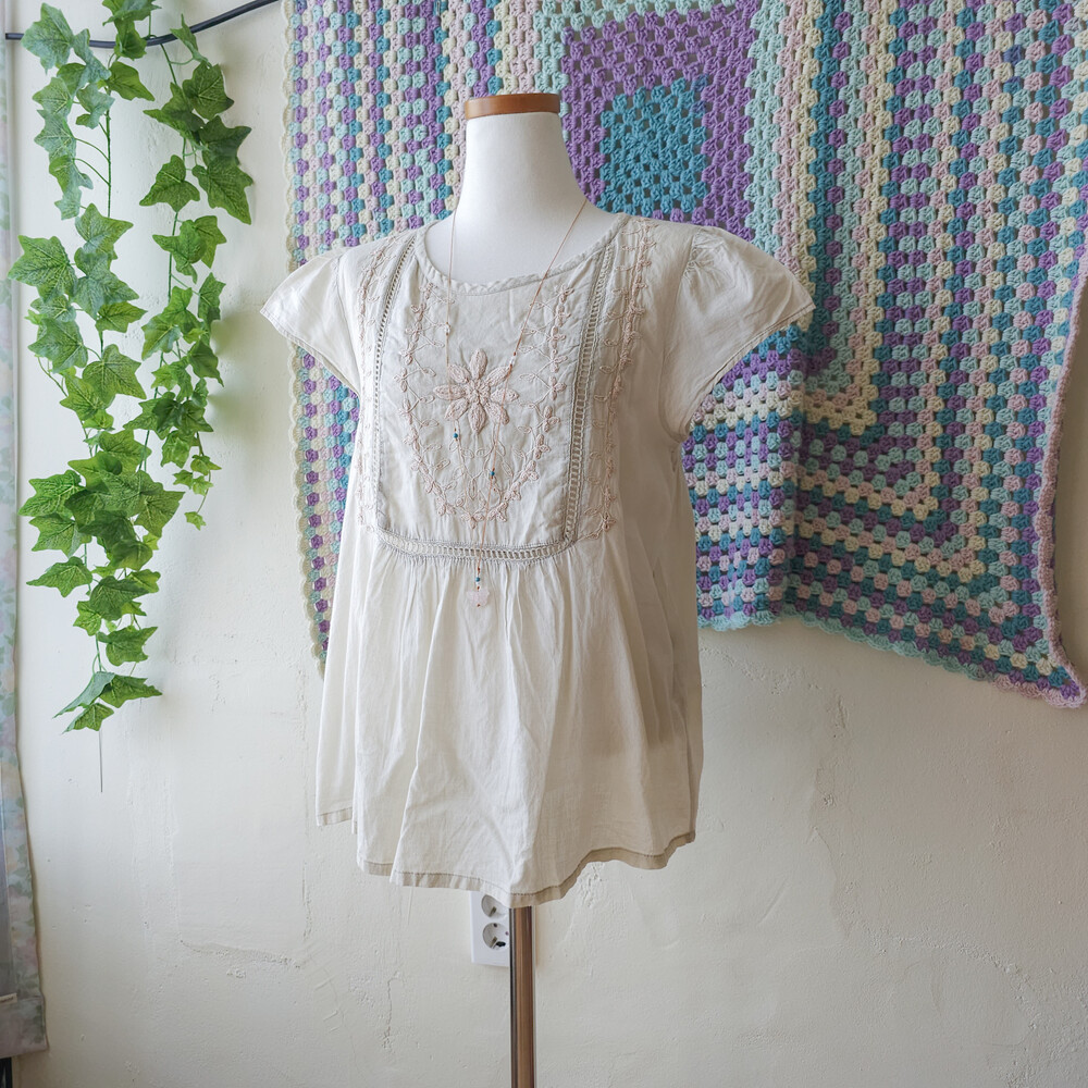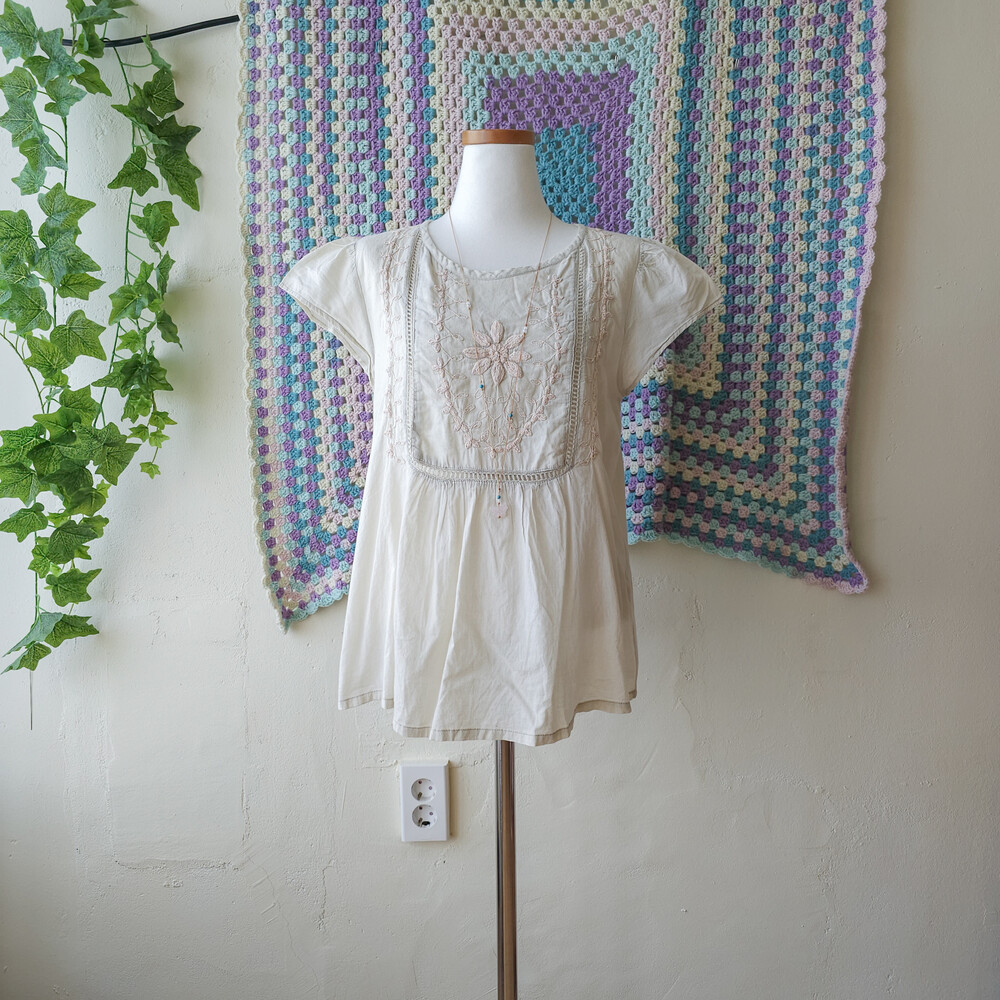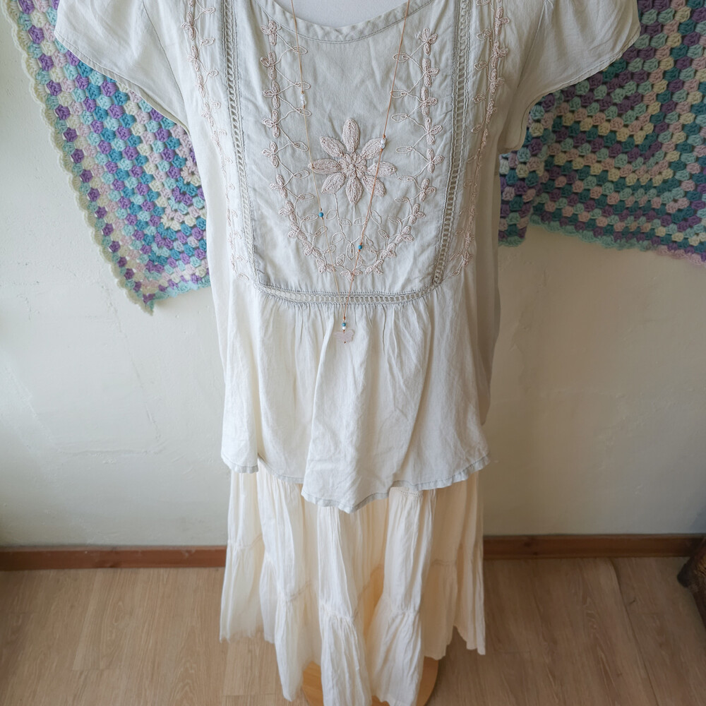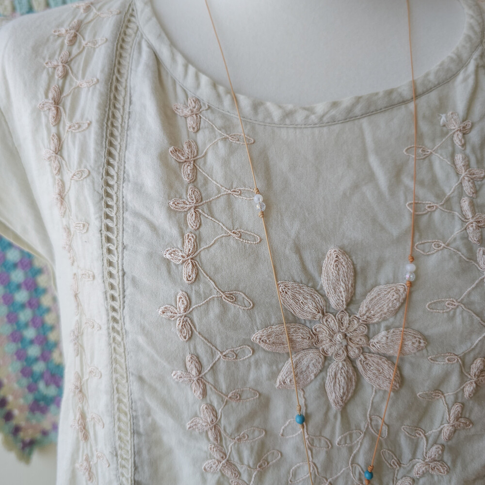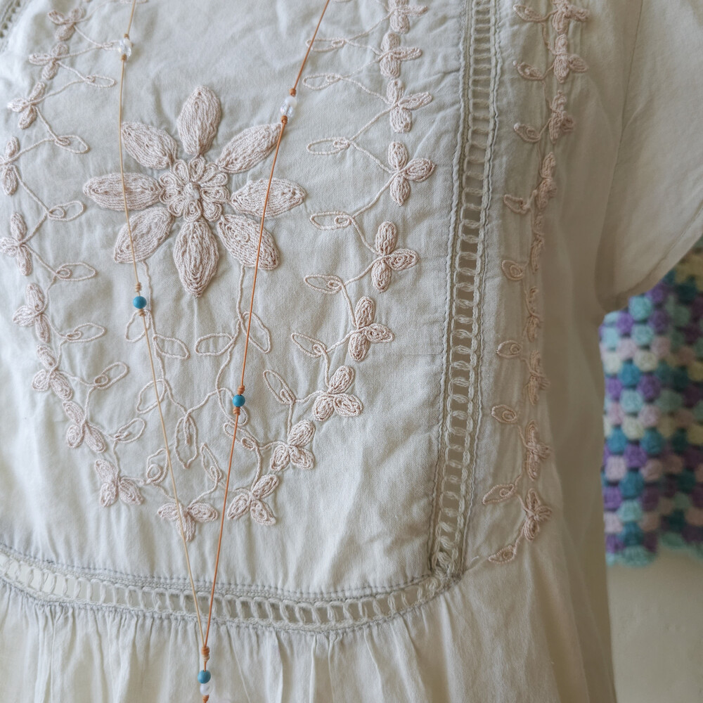 베이지-오트밀색 바탕에 자수가 가득 들어가 있어요