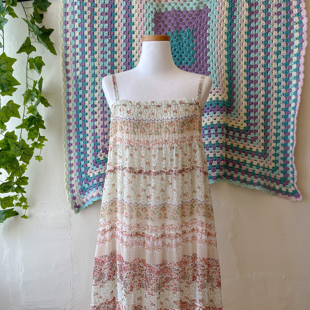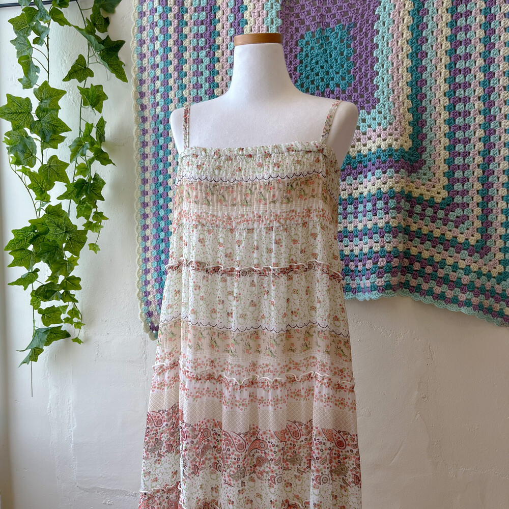 그리너리한 무늬의 쉬폰 끈원피스예요