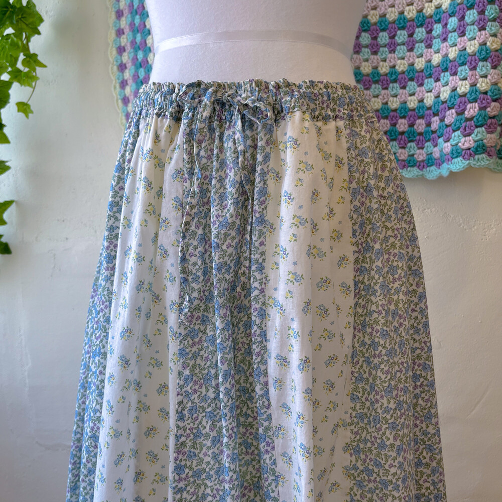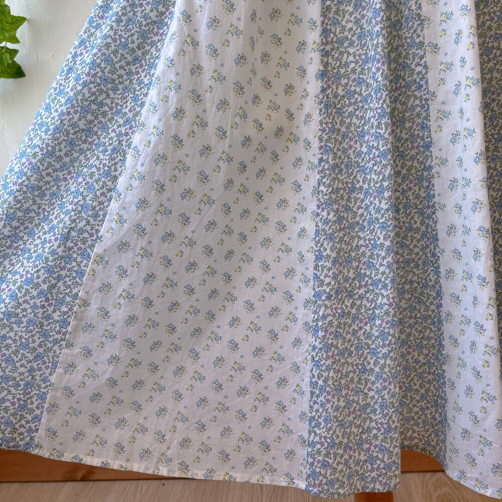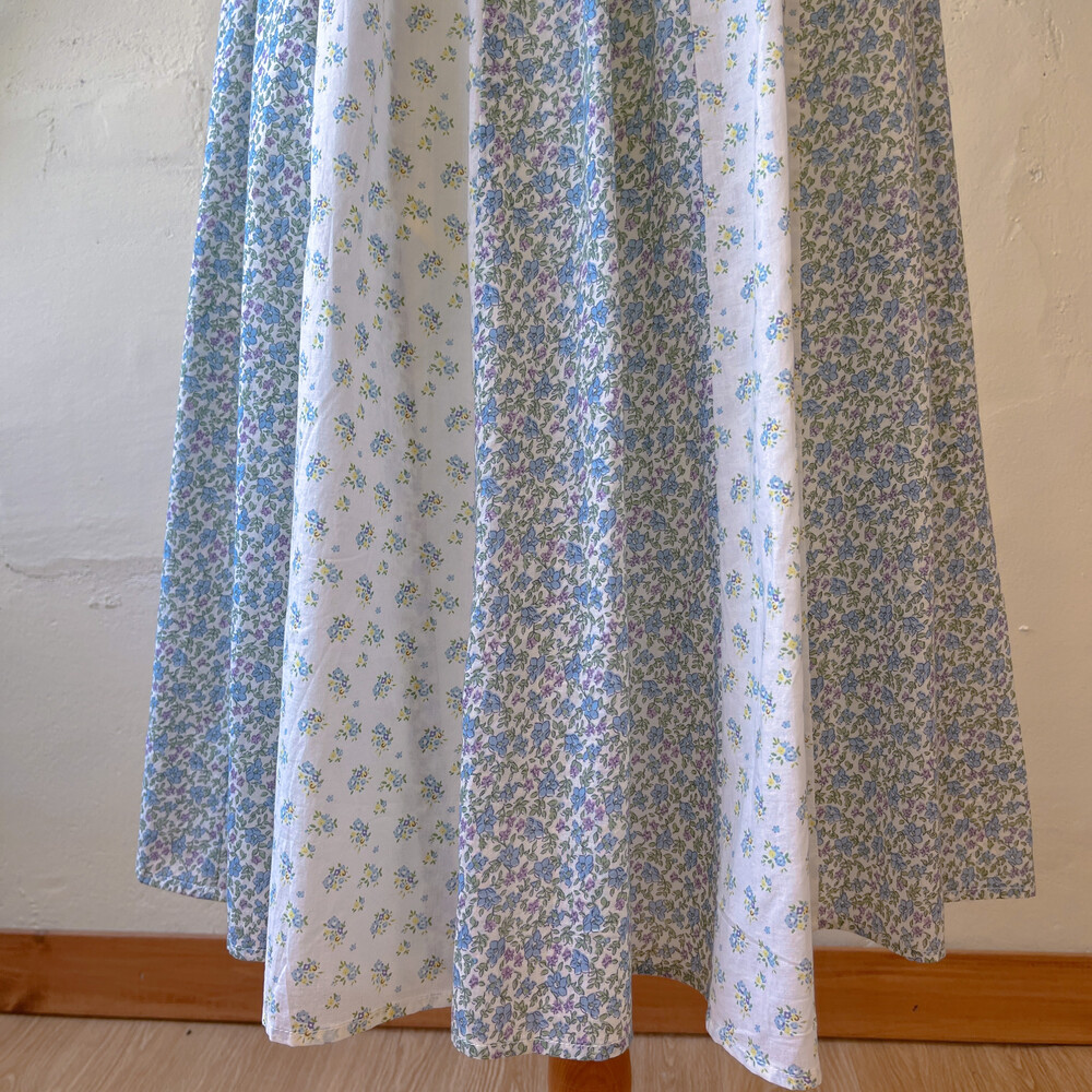 블루 꽃무늬 패턴의 패치워크 코튼 스커트예요