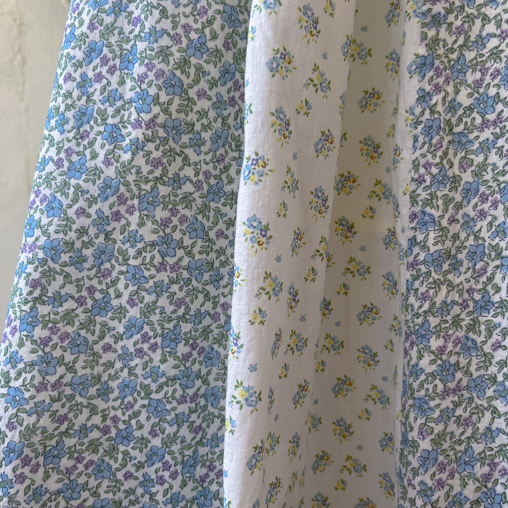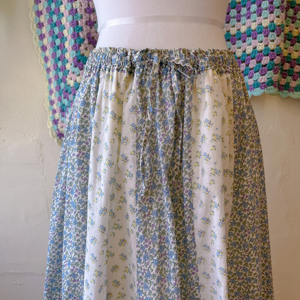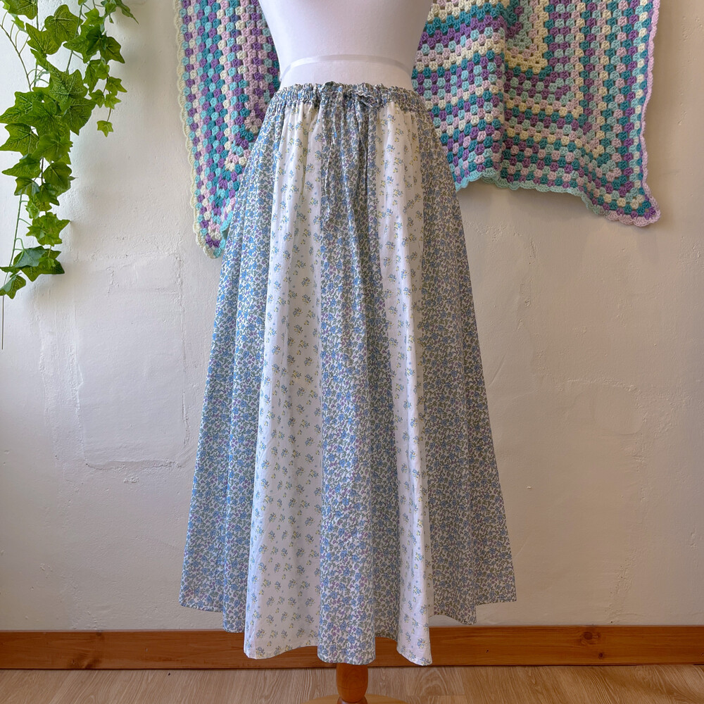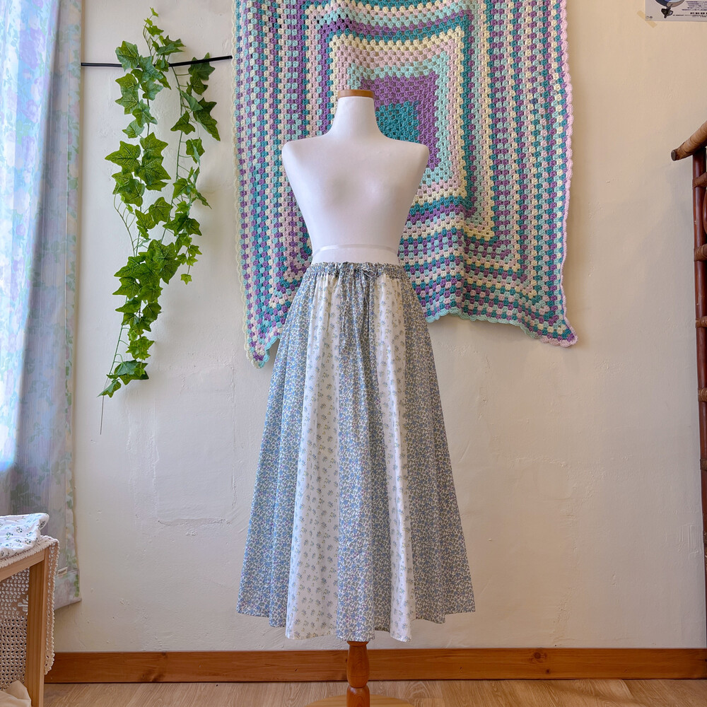 블루 꽃무늬 패턴의 패치워크 코튼 스커트예요