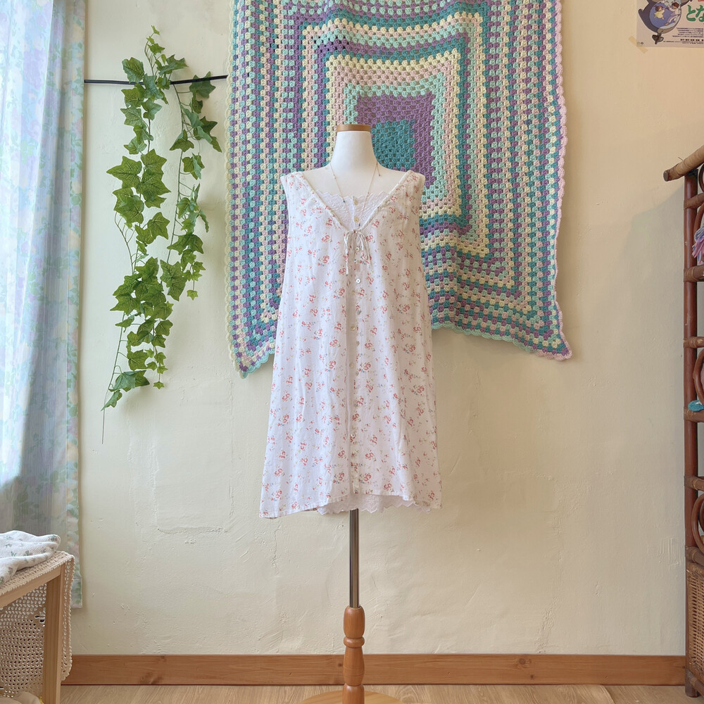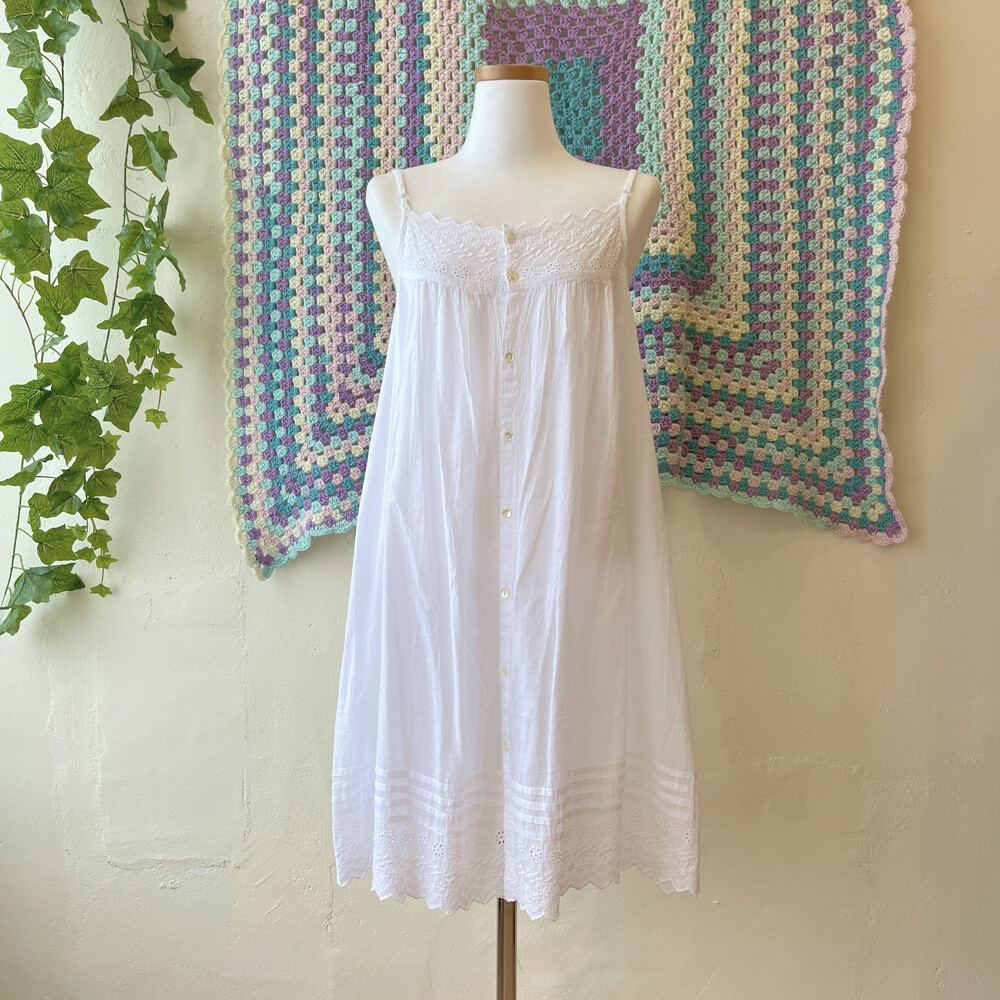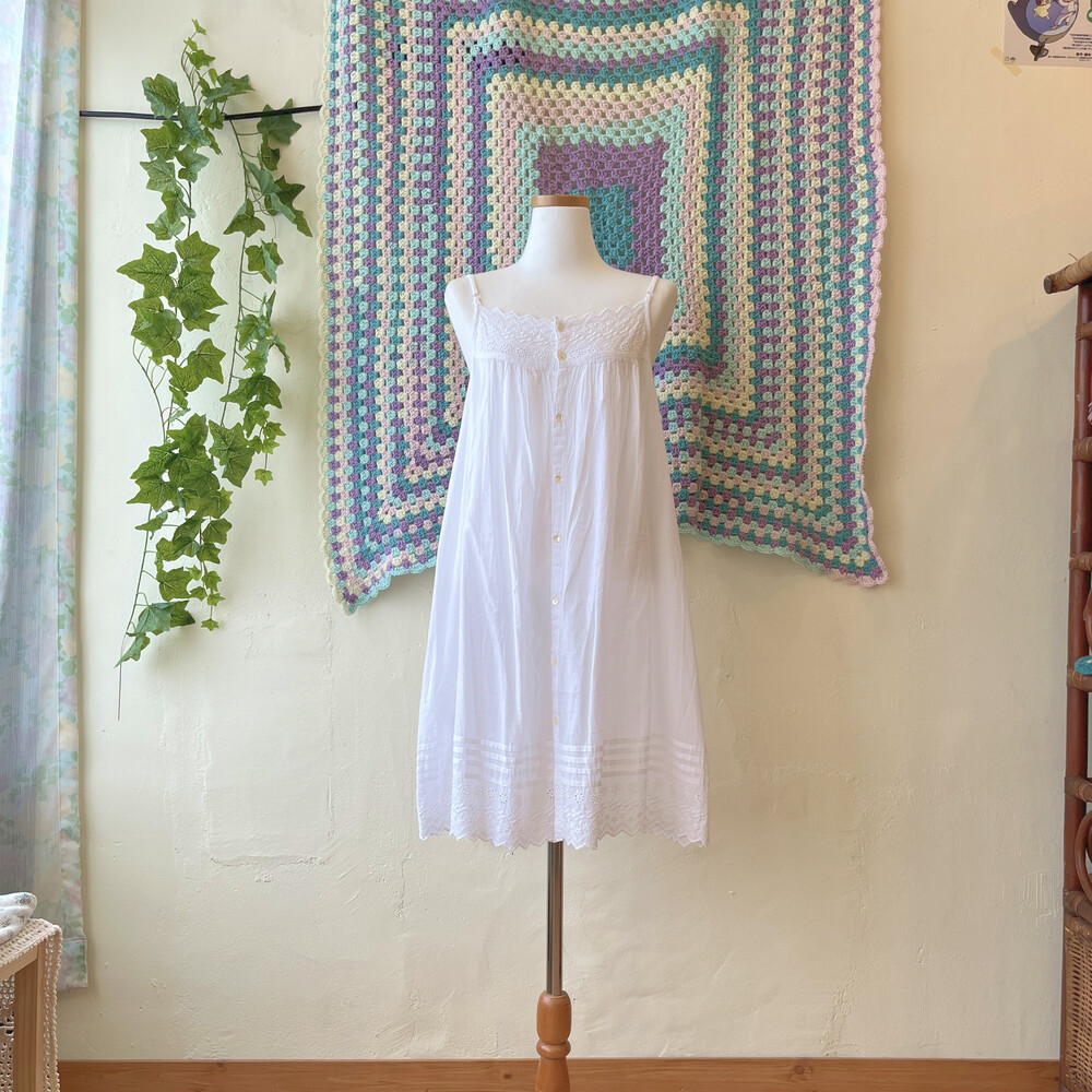 화이트 색감의 레이어드 코튼 끈원피스예요