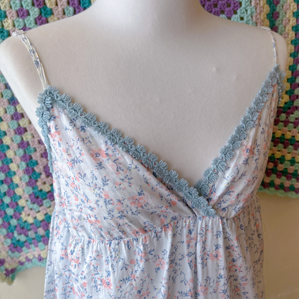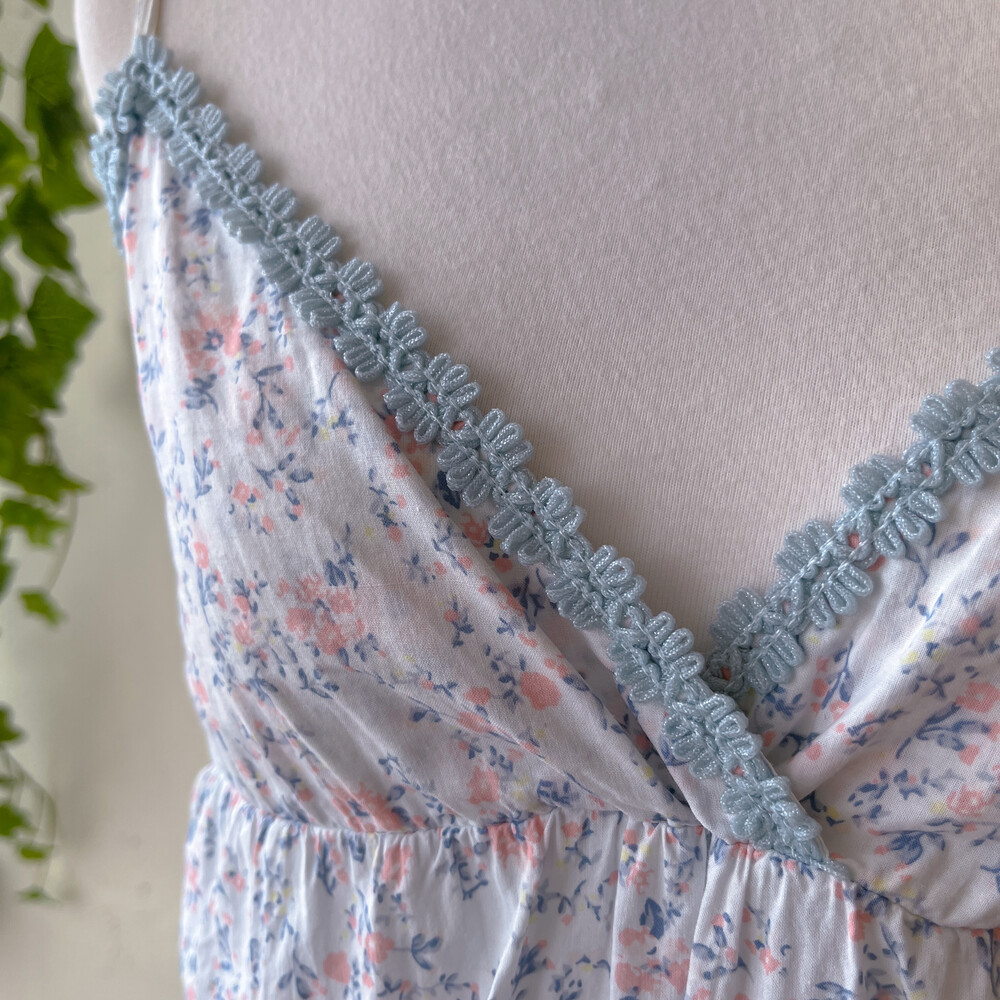 아주 연한 아쿠아블루 색감의 브이넥 끈원피스예요