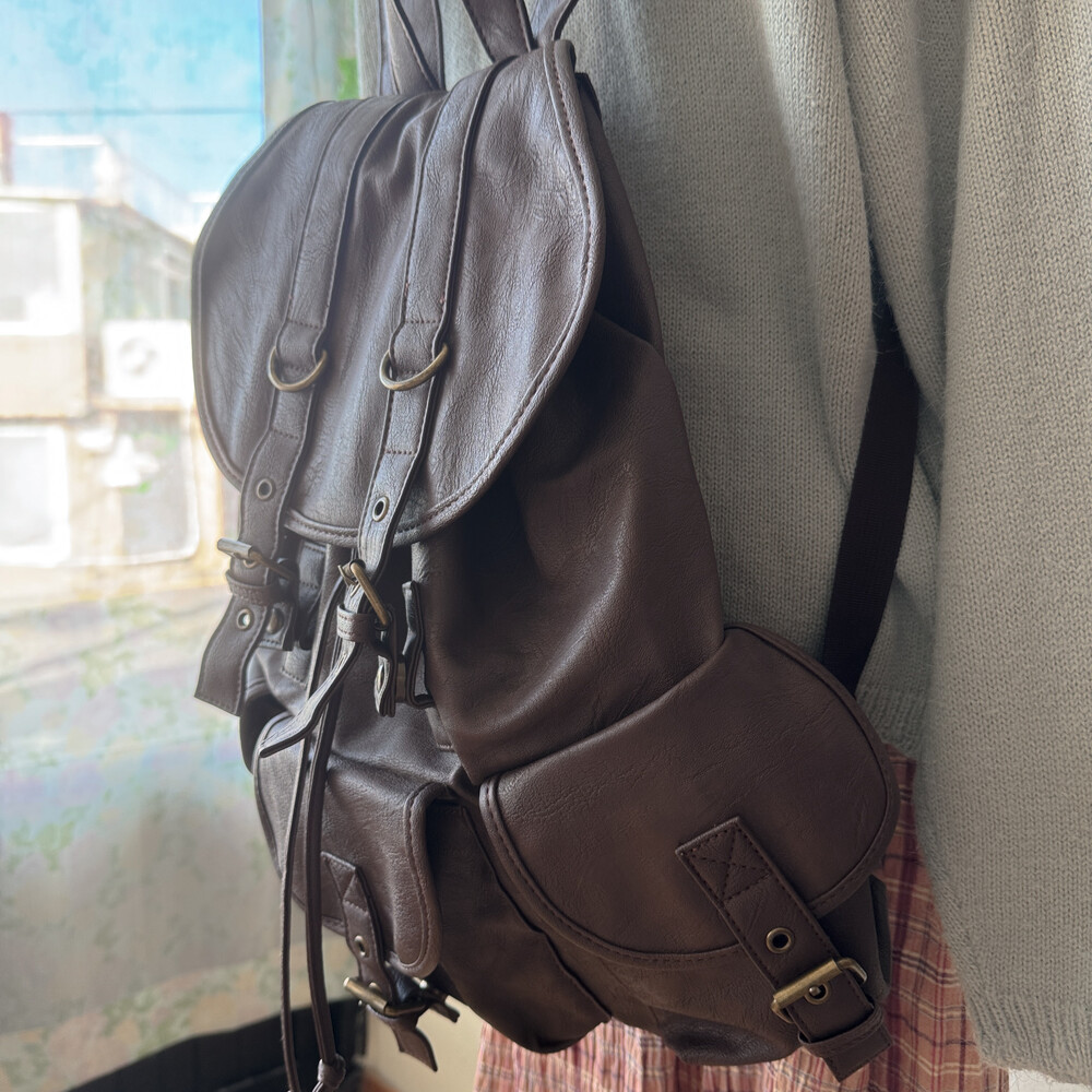 브라운 색감의 3포켓 백팩이에요