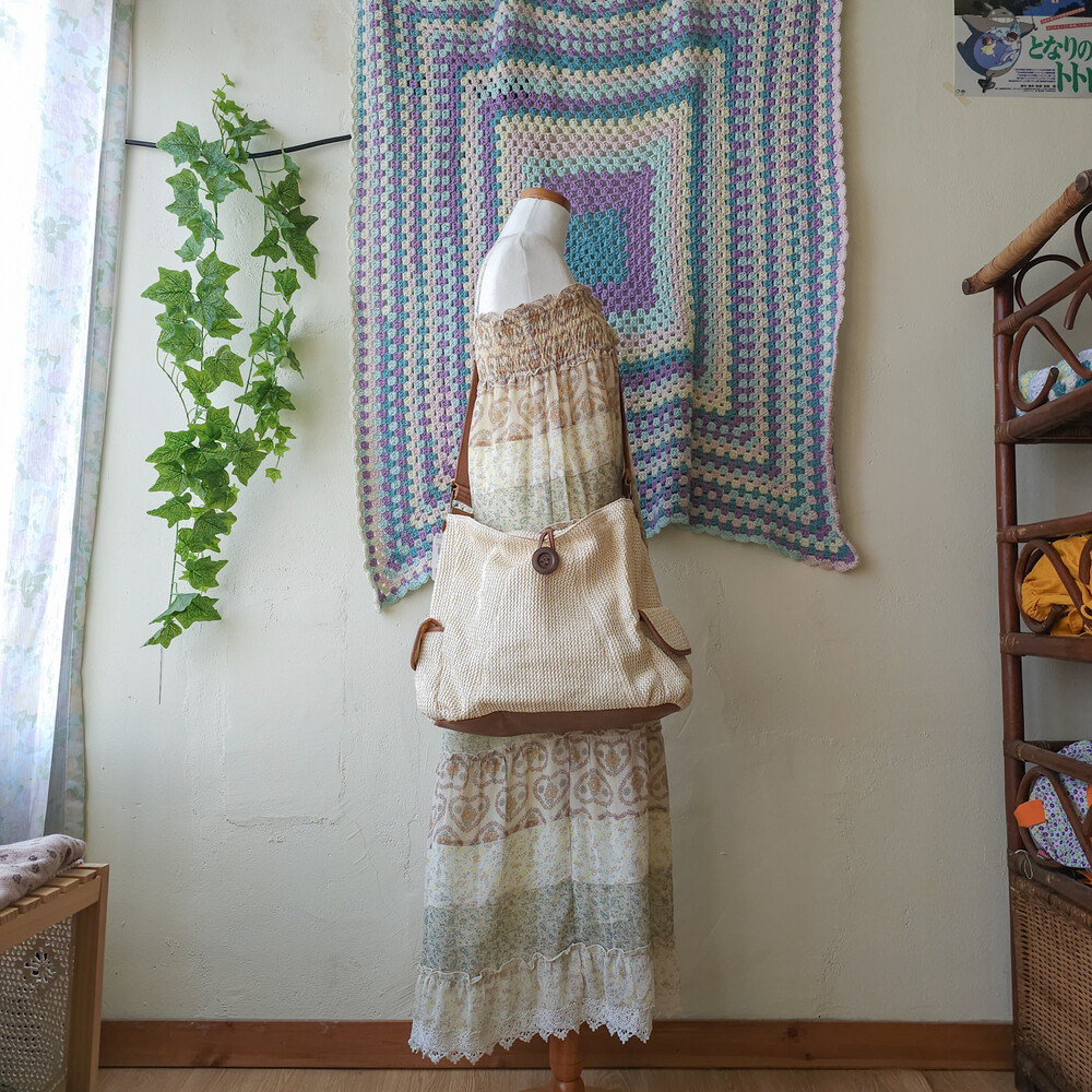 밝은 베이지 색감의 빅크로스백이에요
