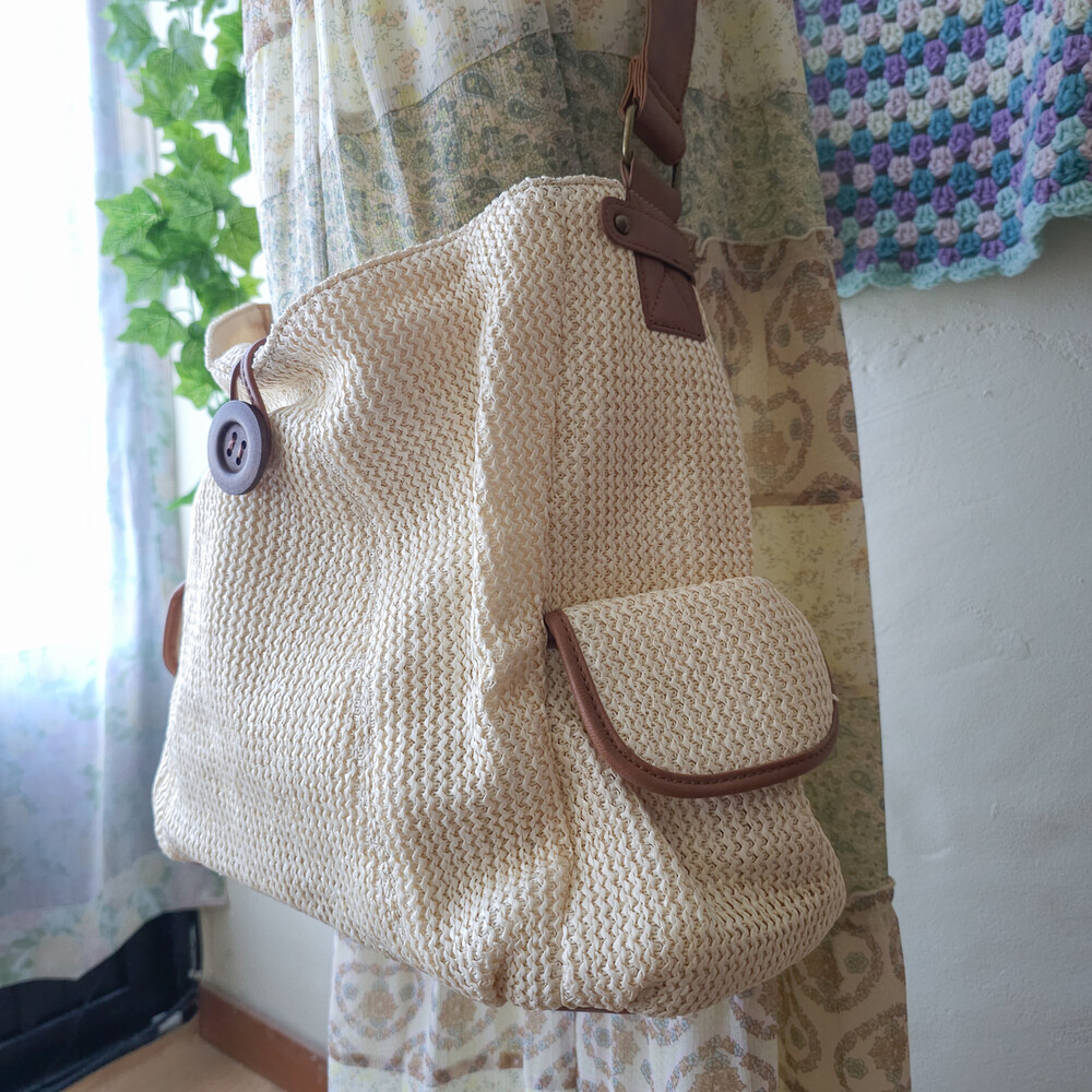 light beige basket cross bag