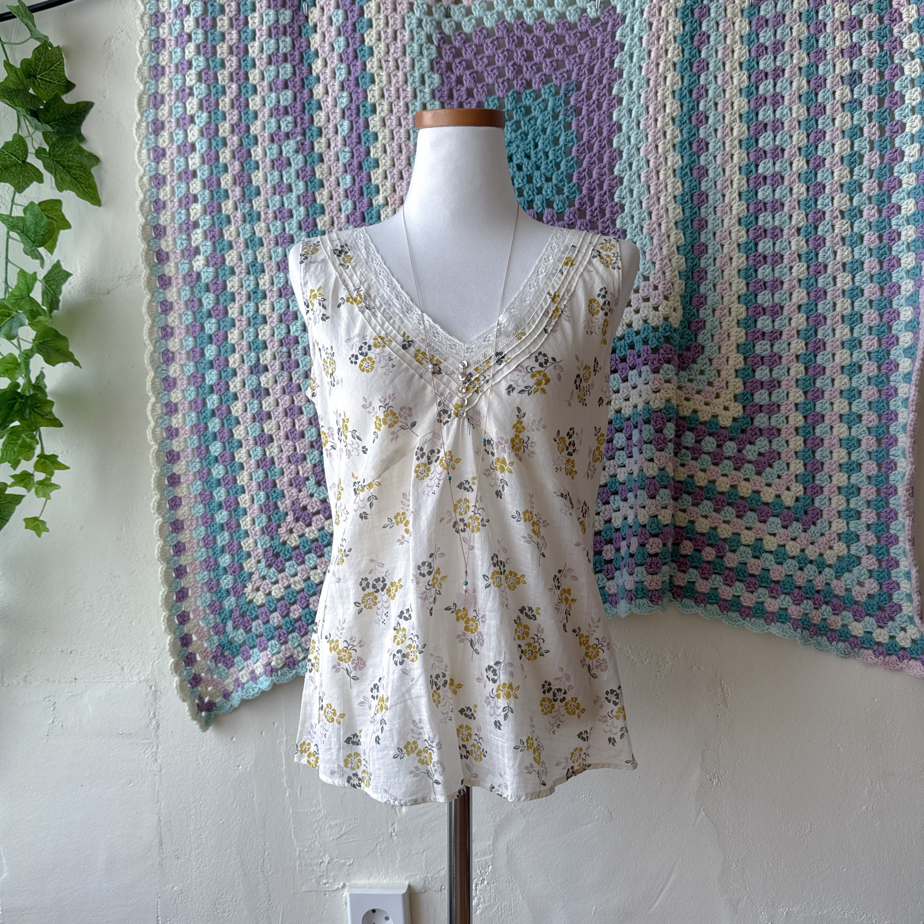 브이넥 디자인의 민소매 코튼 블라우스예요
