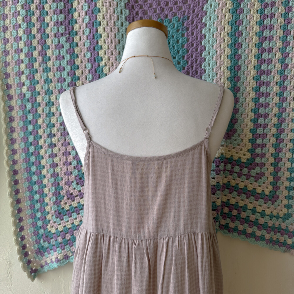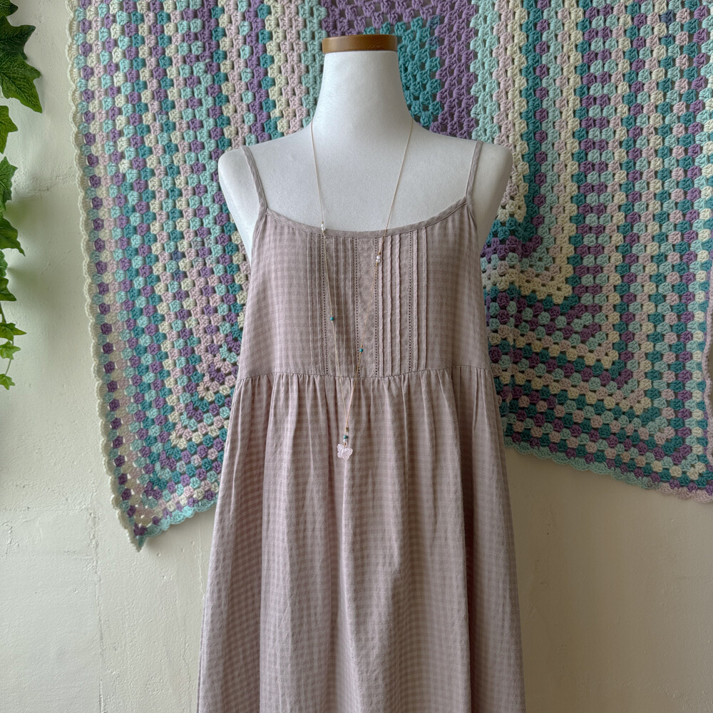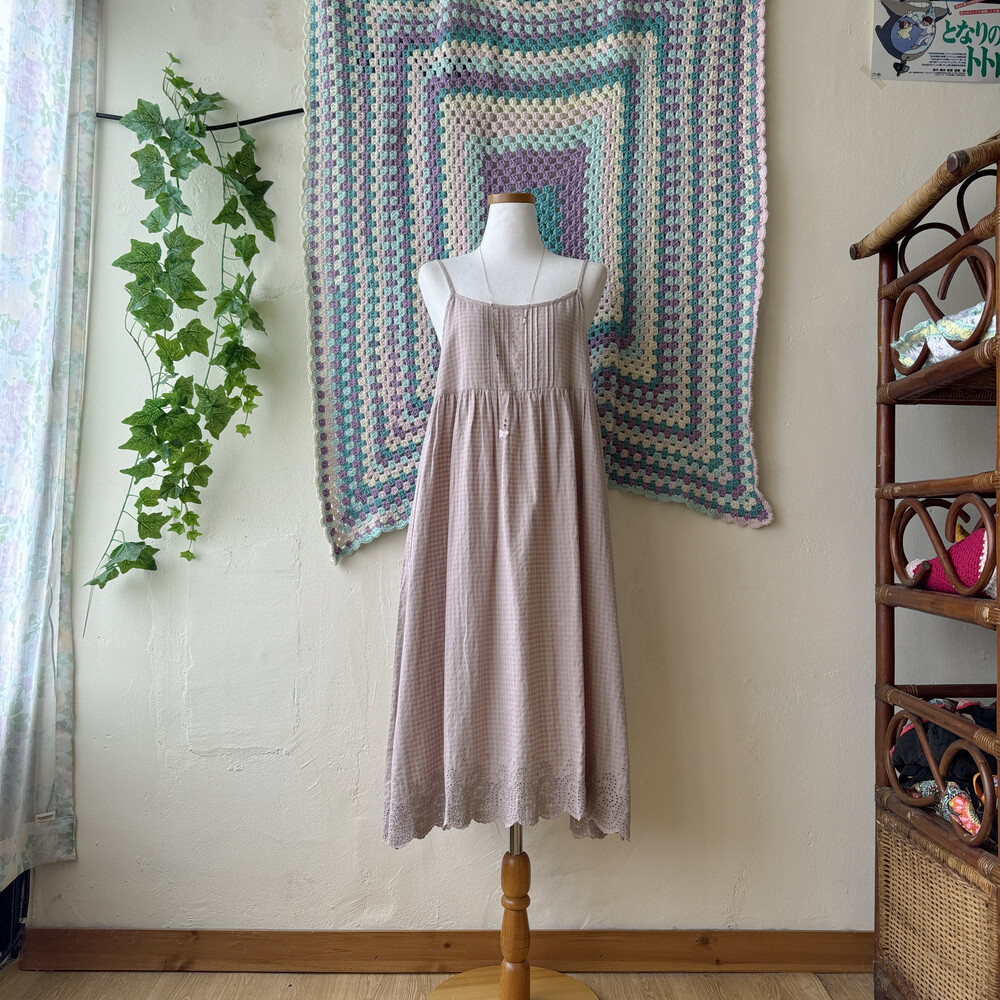 뮤트한 팥죽색의 코튼 끈원피스예요