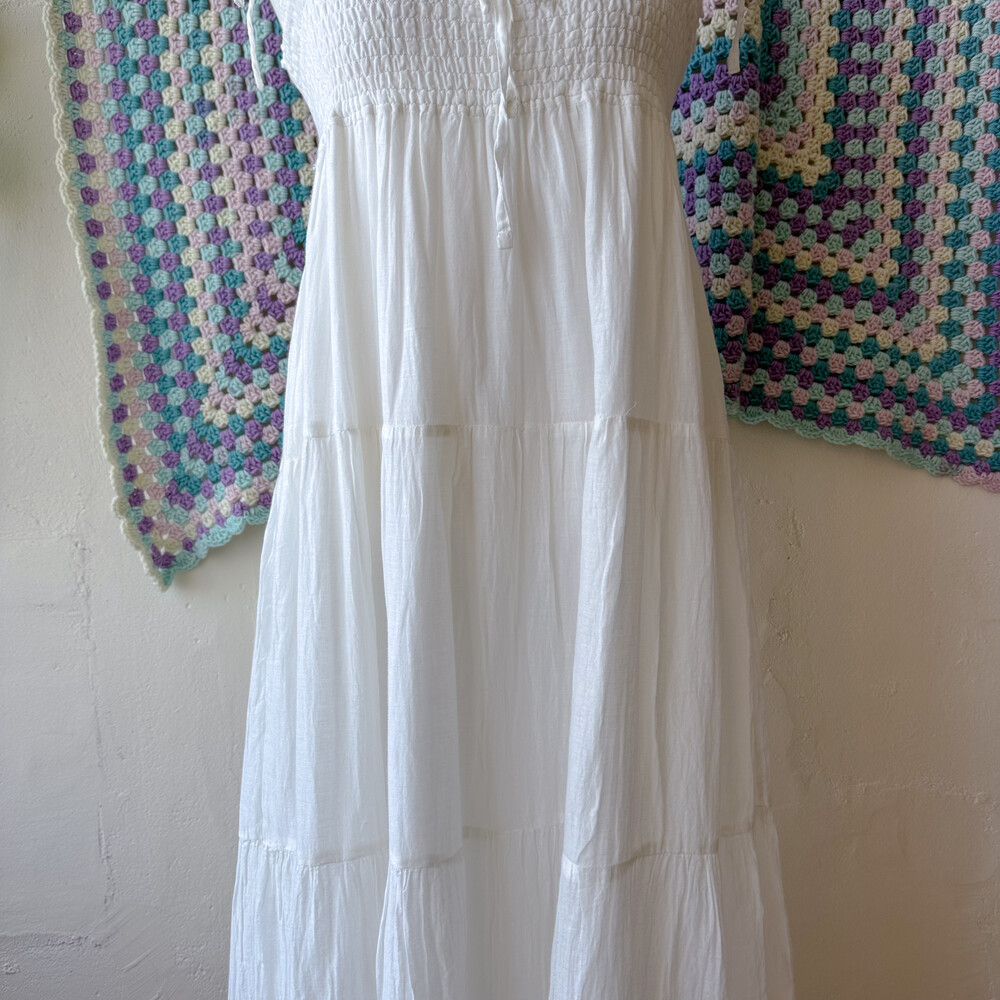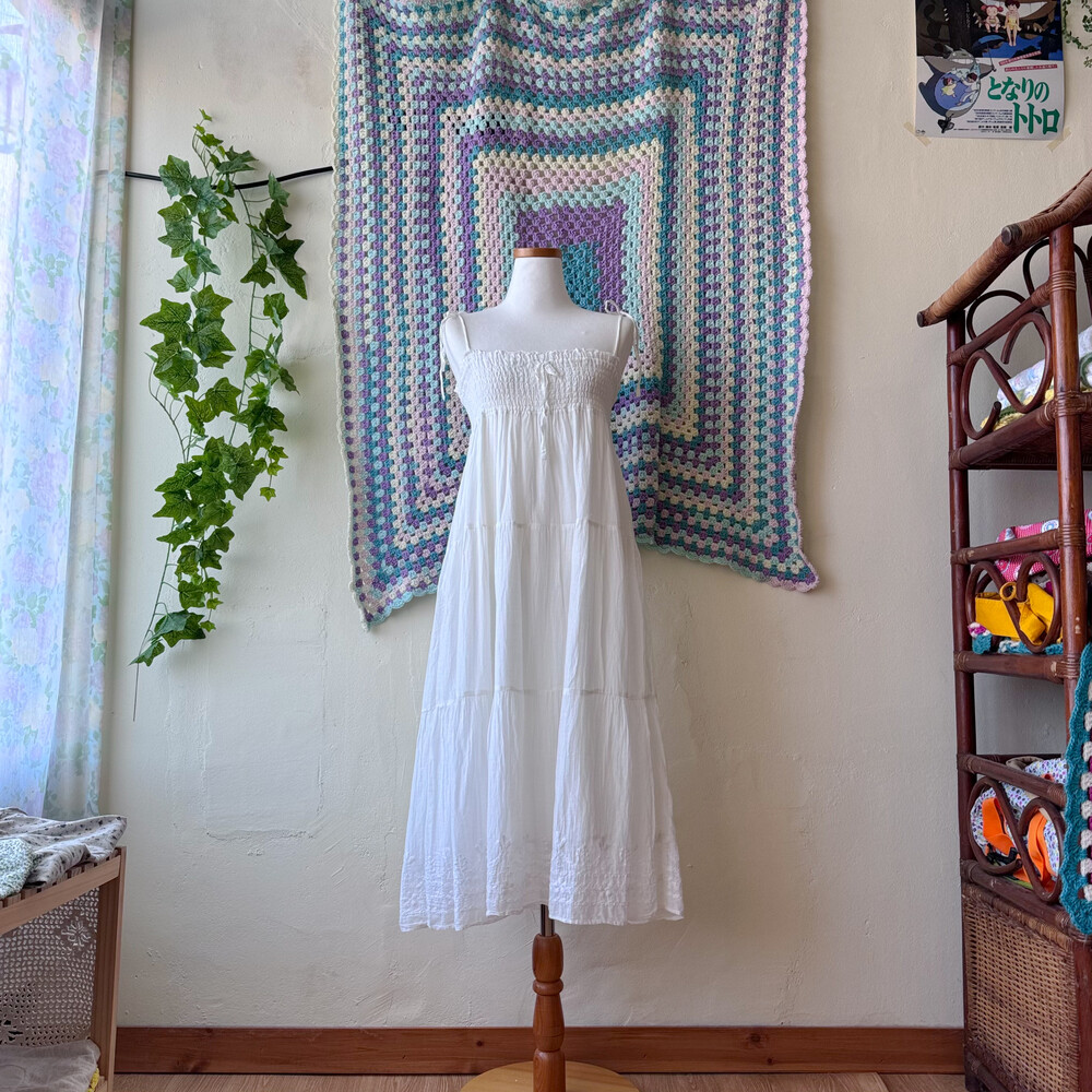 화이트에 가까운 밀크색의 코튼 끈원피스예요