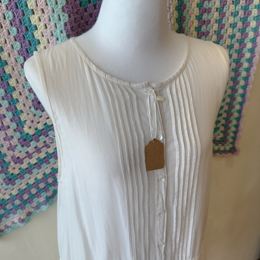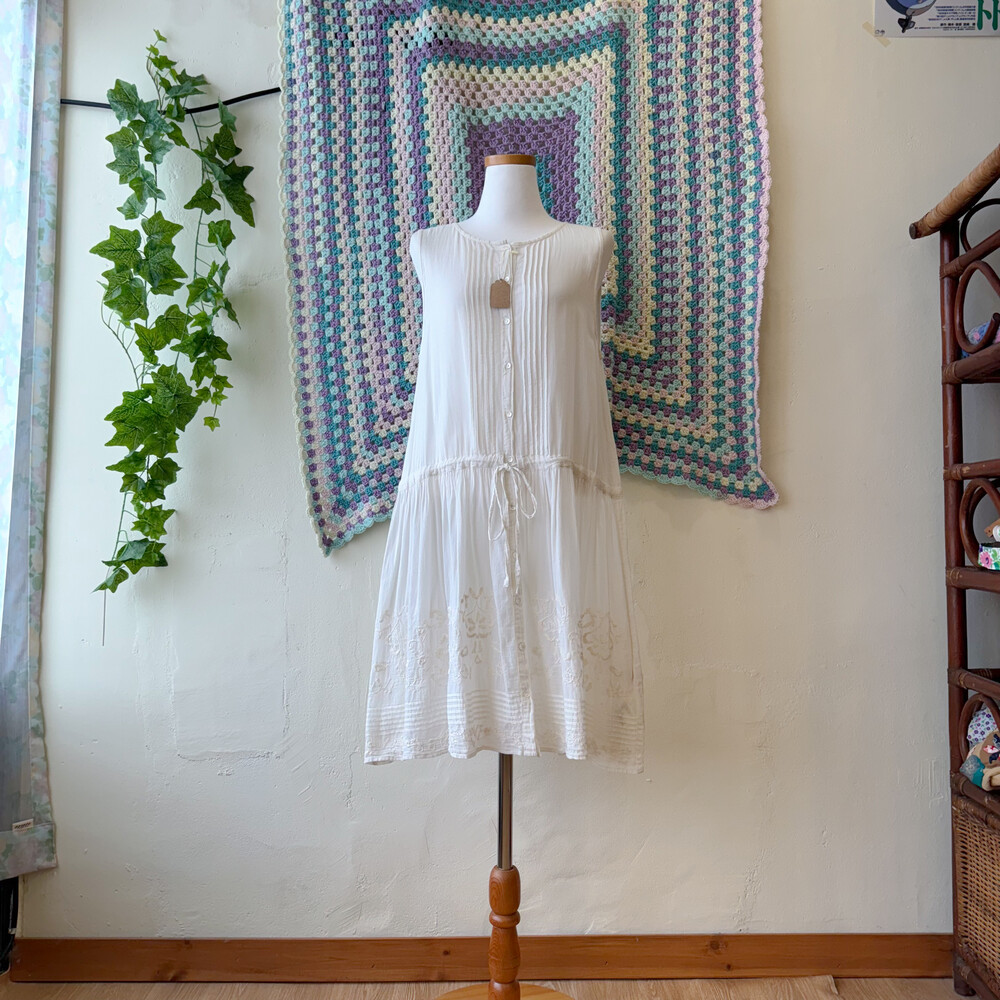 아이보리 색감의 핀턱 민소매 원피스예요