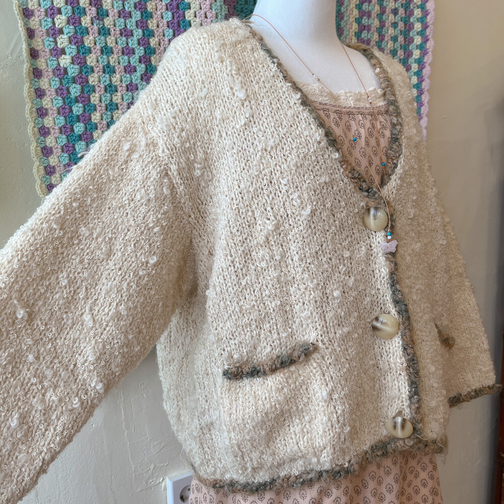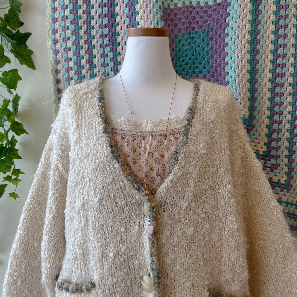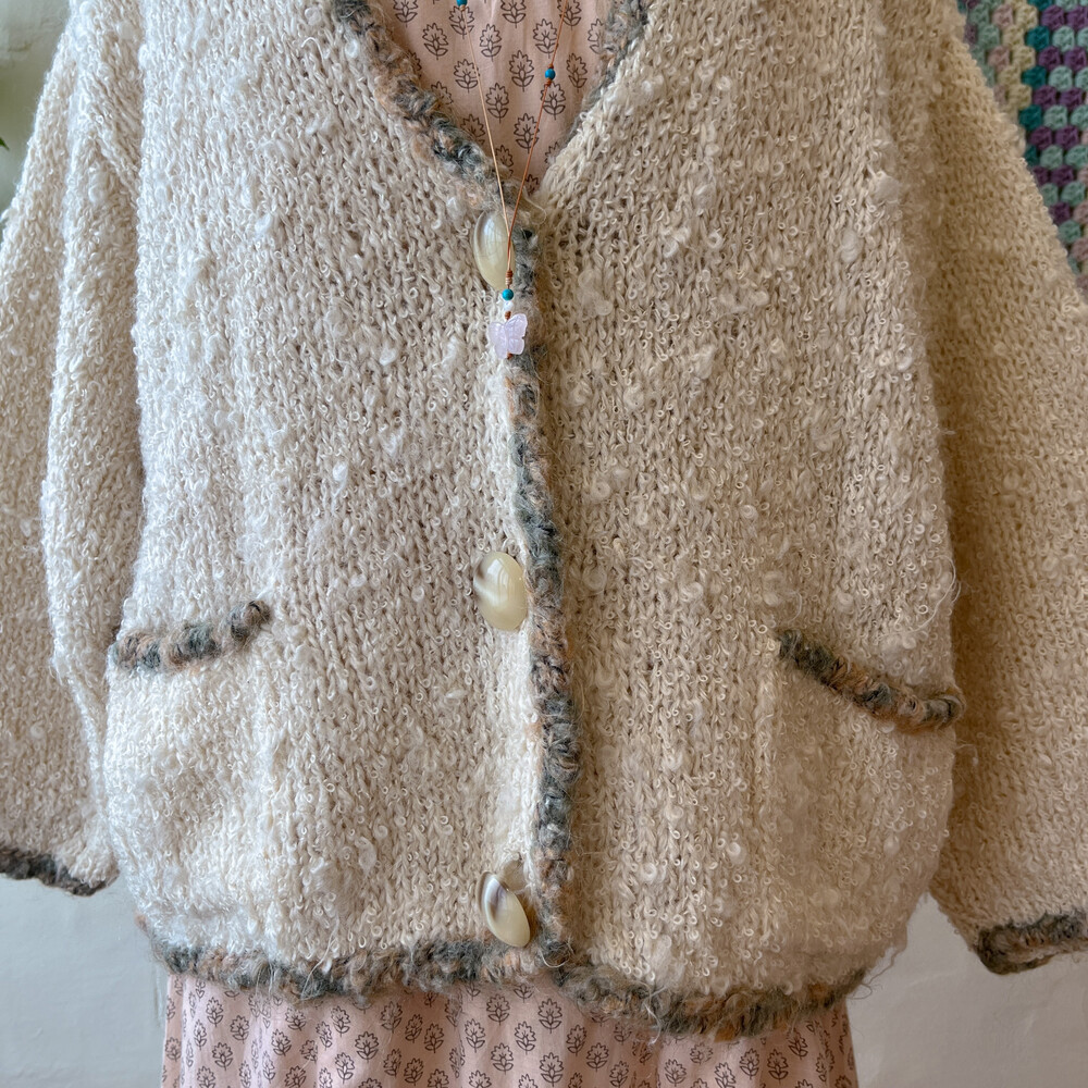 진짜 양털인듯 군데군데 털실이 뭉쳐 있는 디자인의 가디건이에요