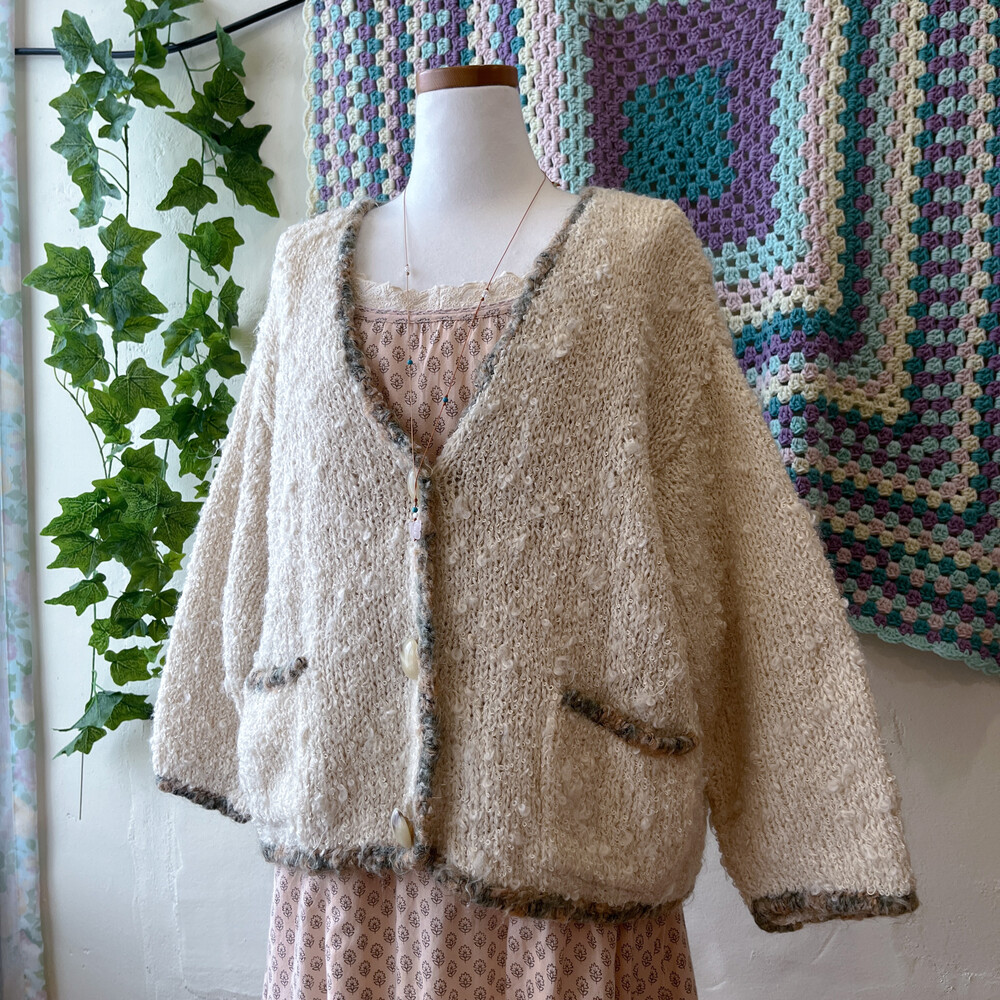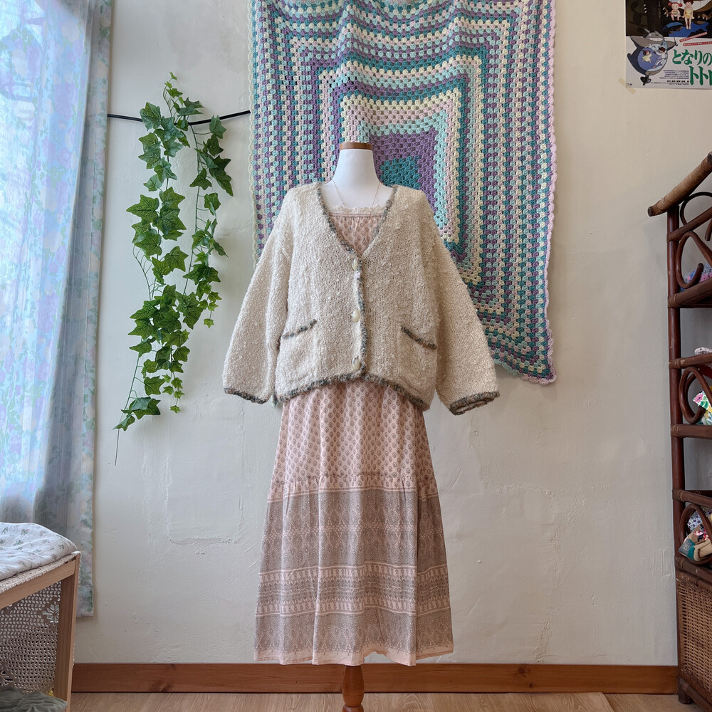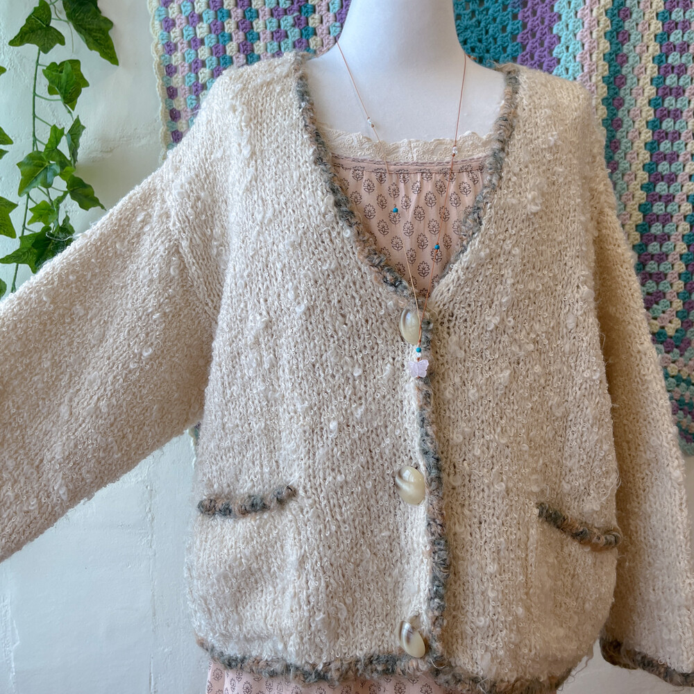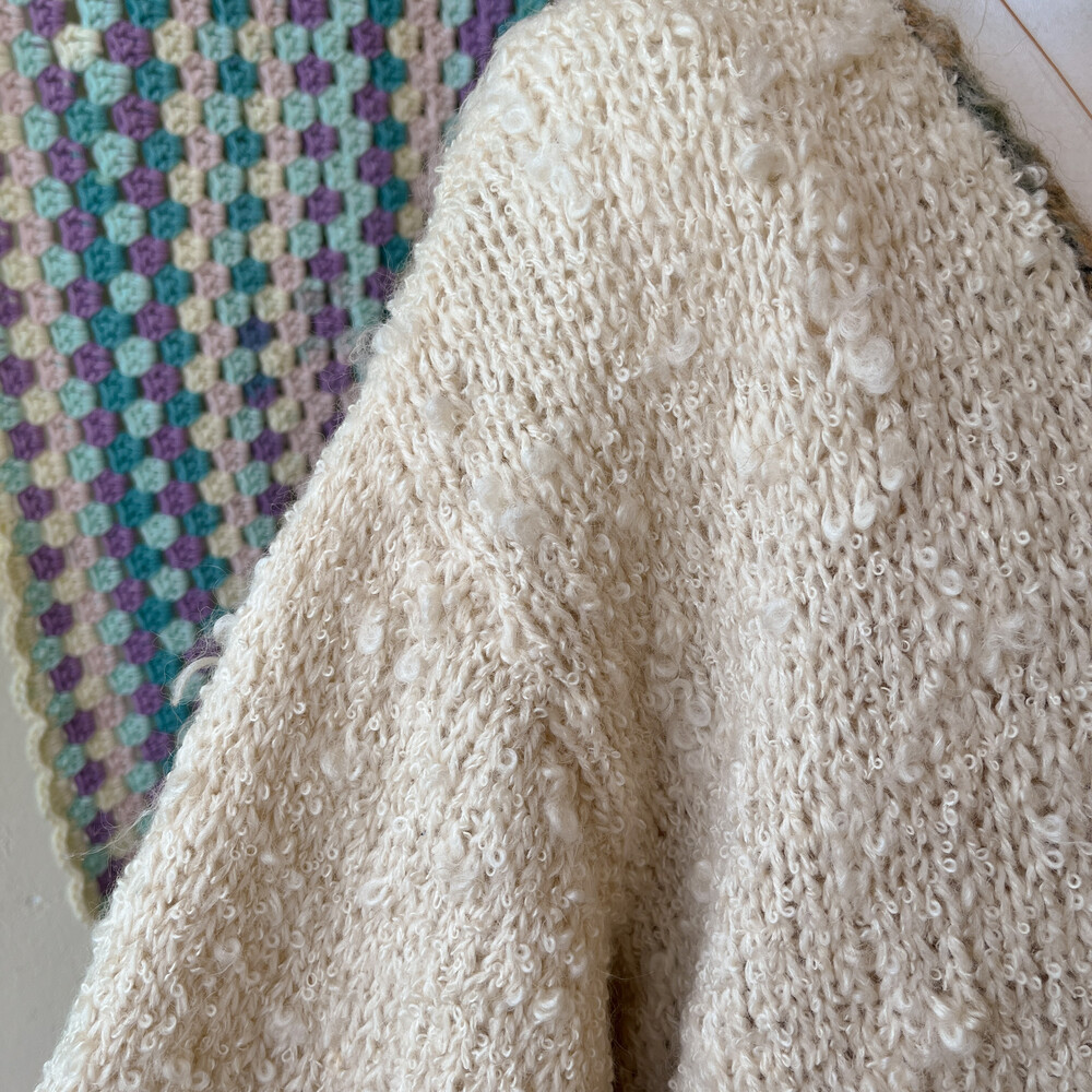 진짜 양털인듯 군데군데 털실이 뭉쳐 있는 디자인의 가디건이에요
