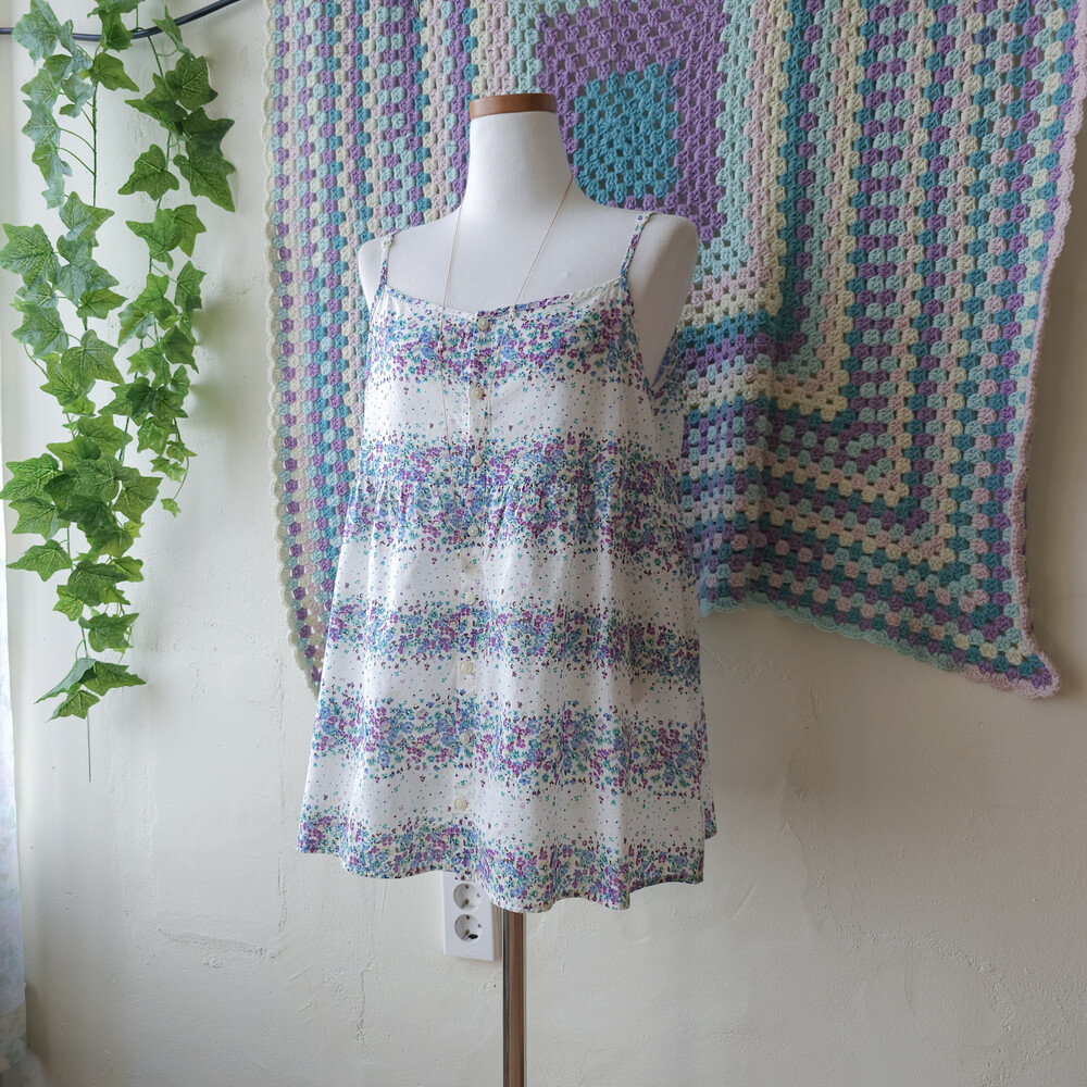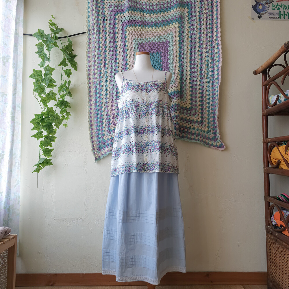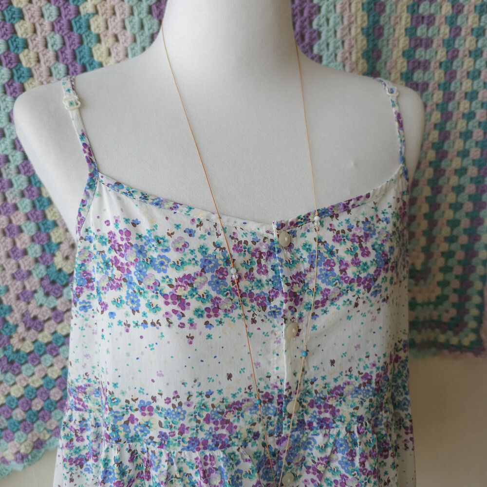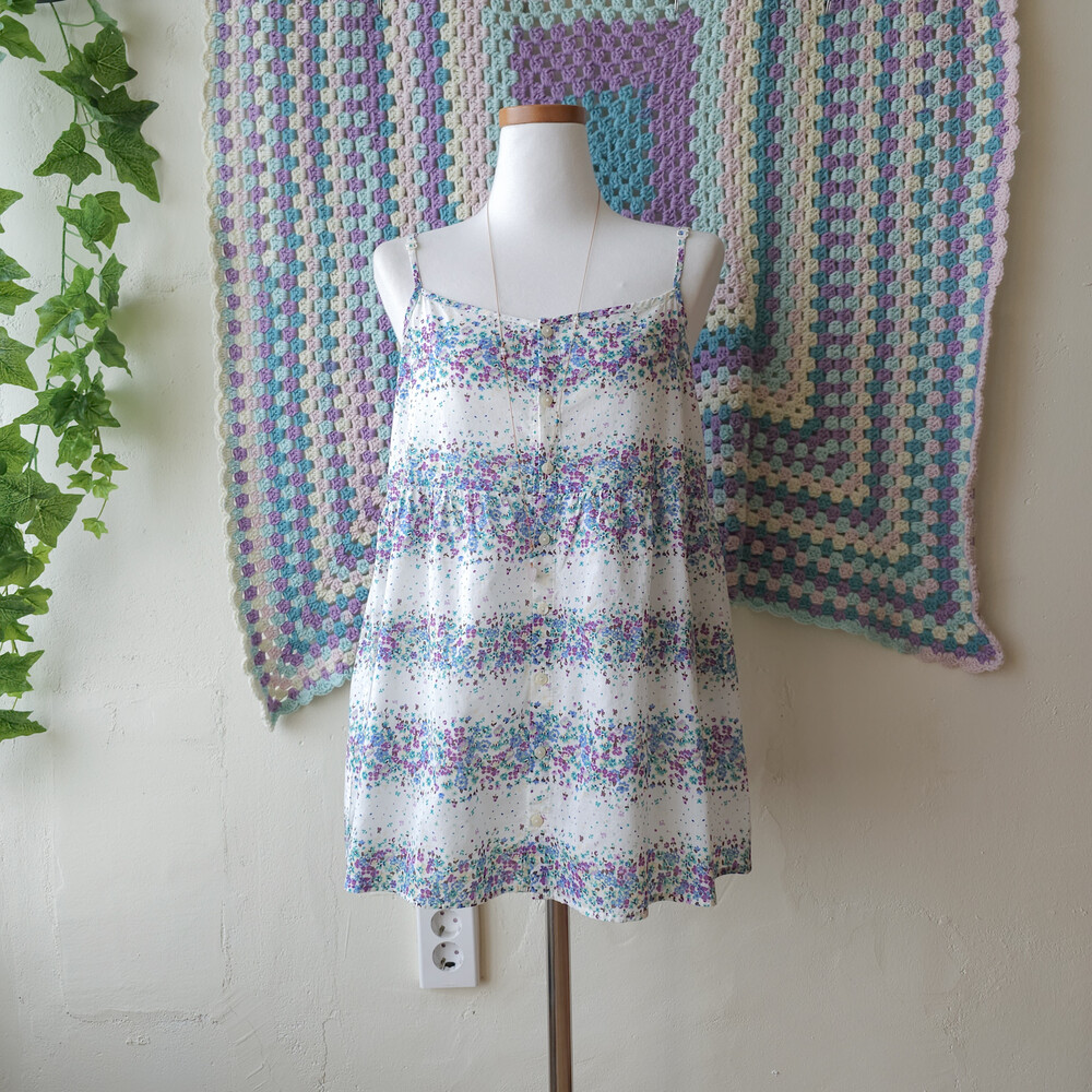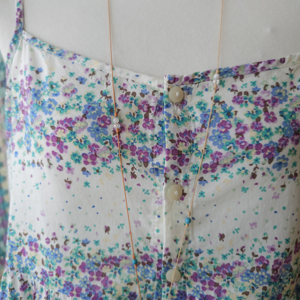 코튼 소재로 추정되구요, 어깨 끈 길이 조절 가능해요:)