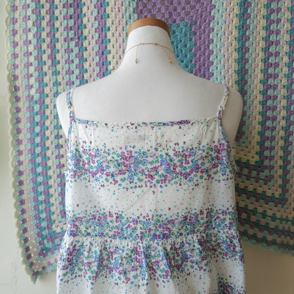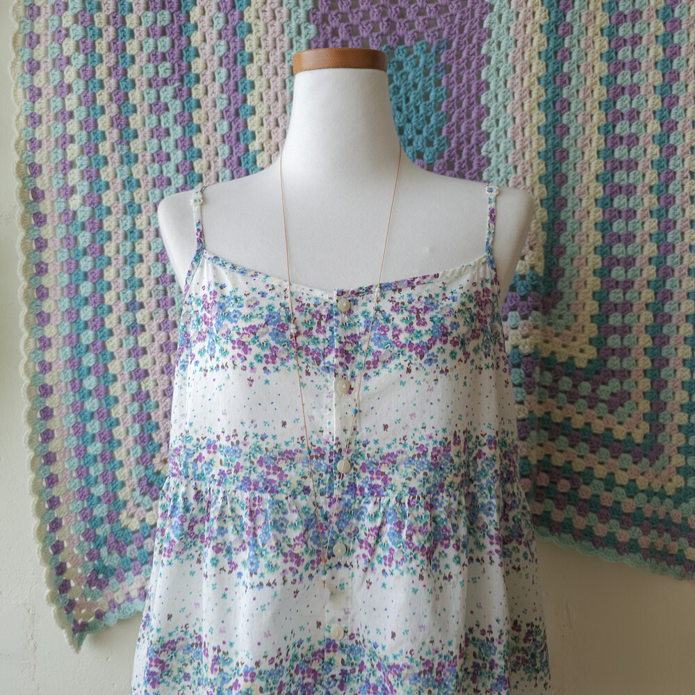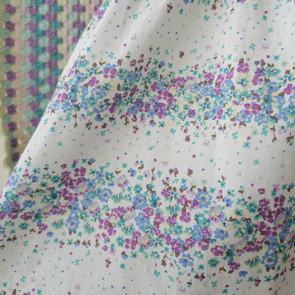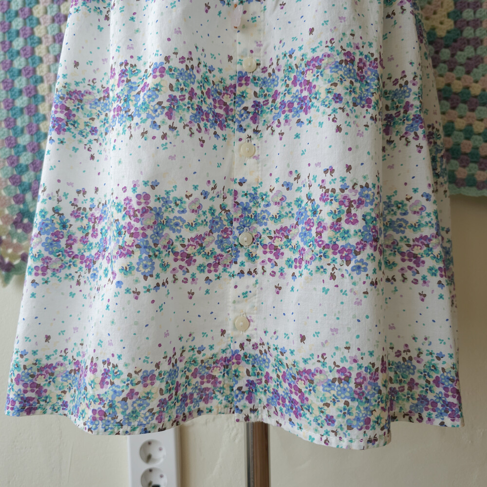 블루, 퍼플 잔꽃 패턴의 블라우스예요