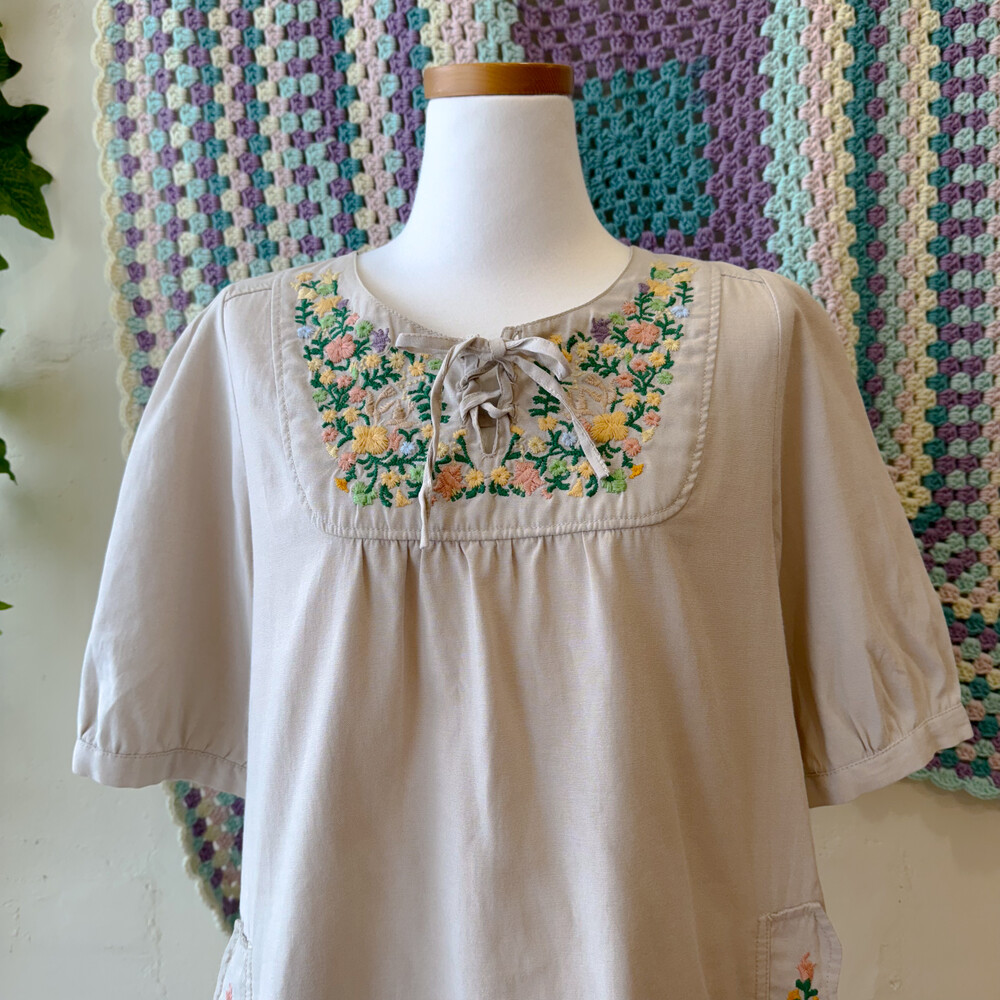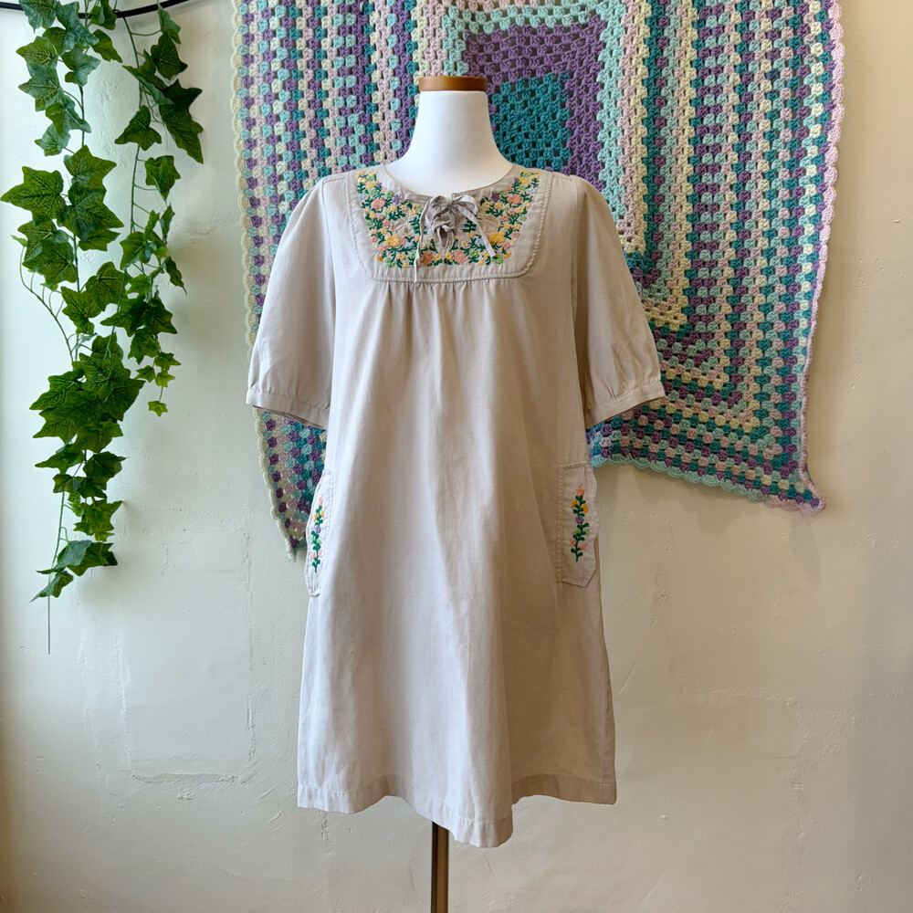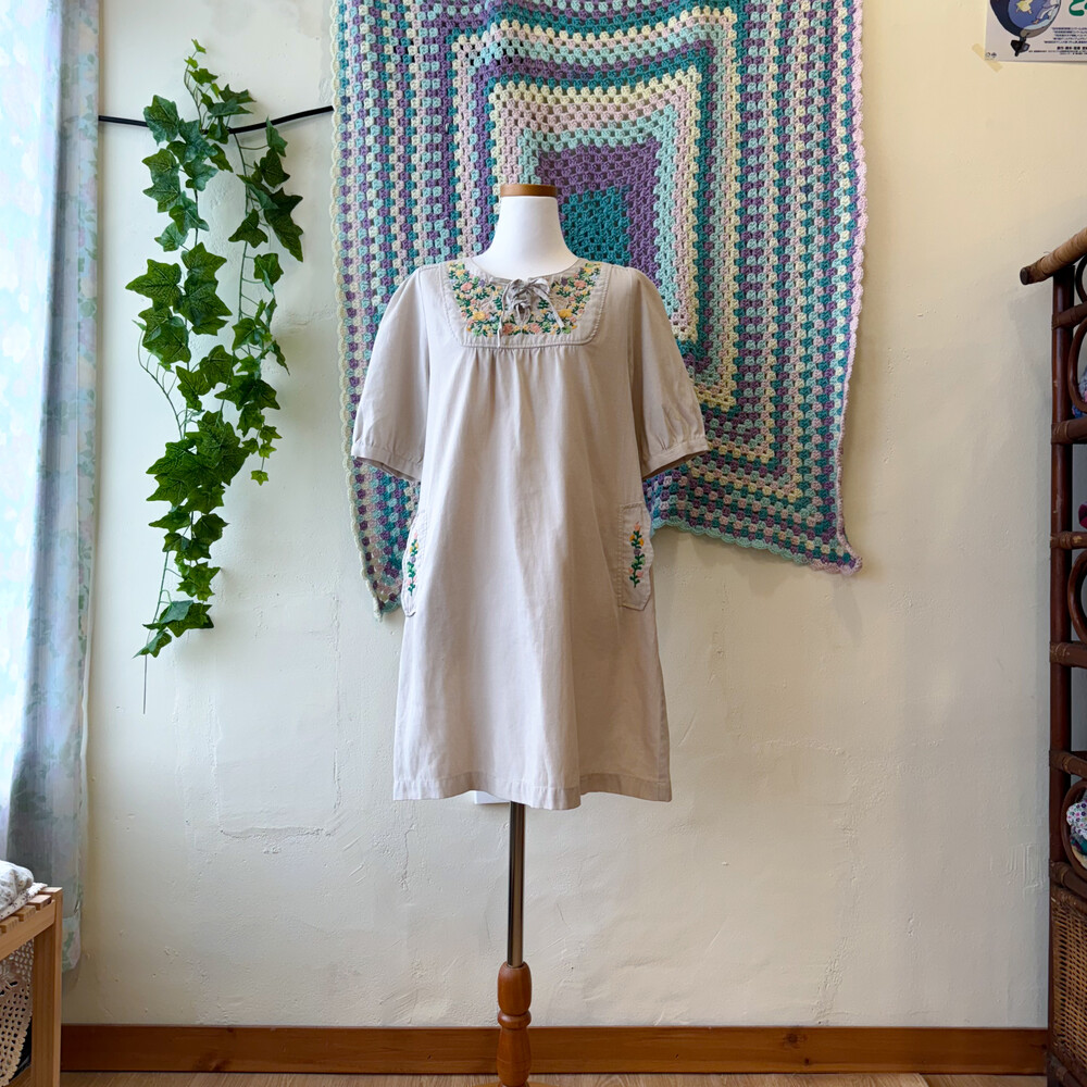 자수 포인트의 코튼 원피스예요