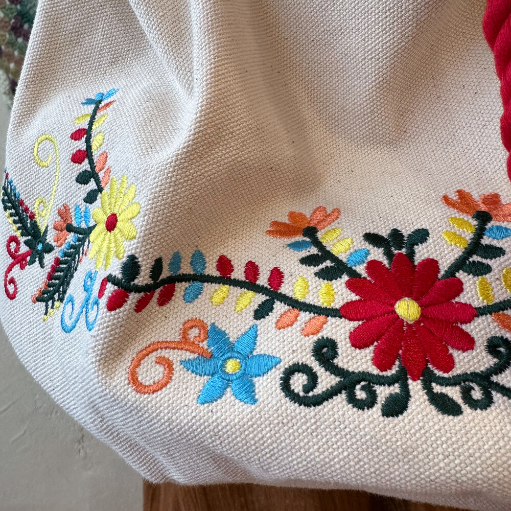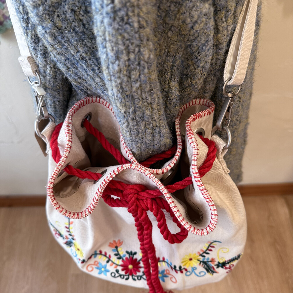 red strap embroidery cross bag