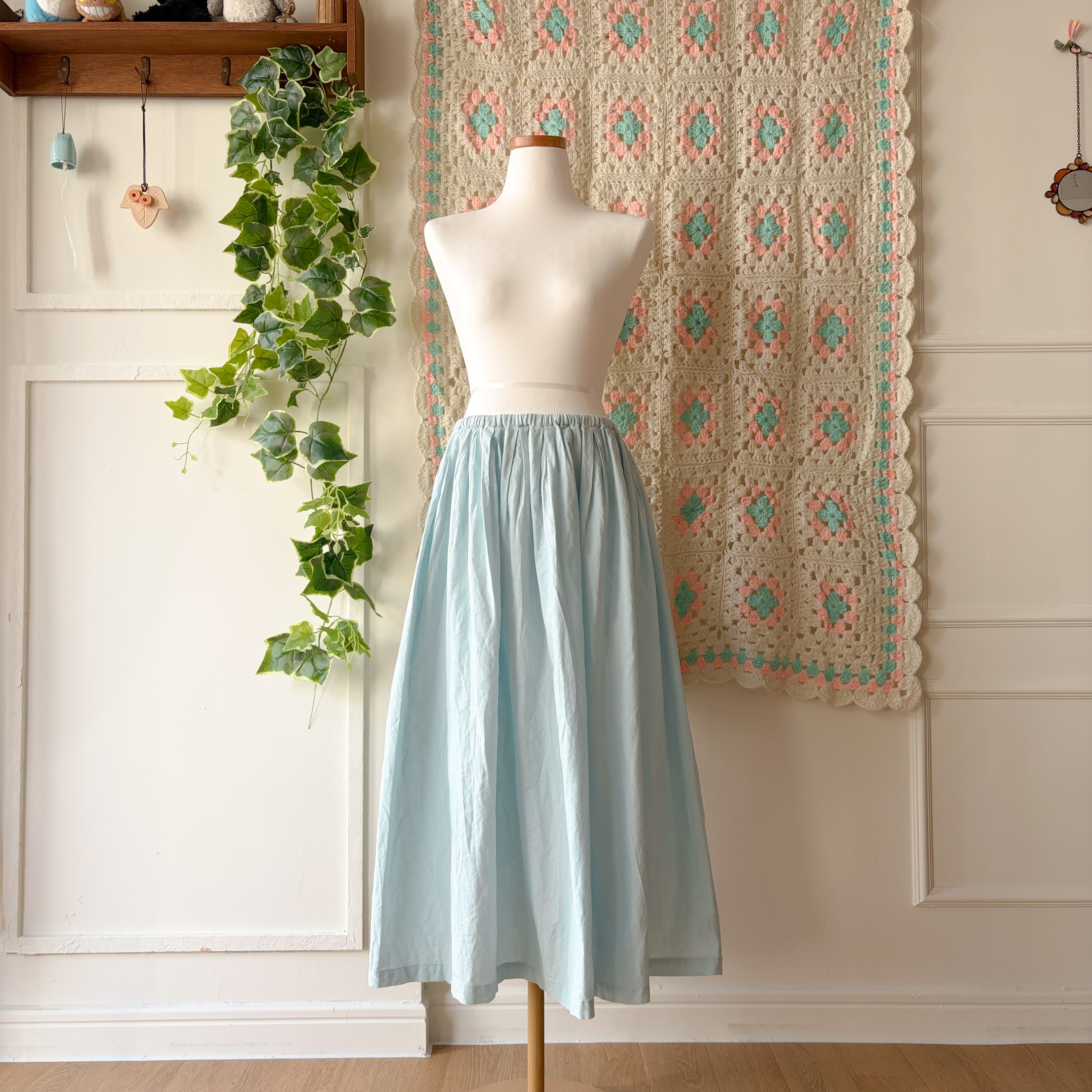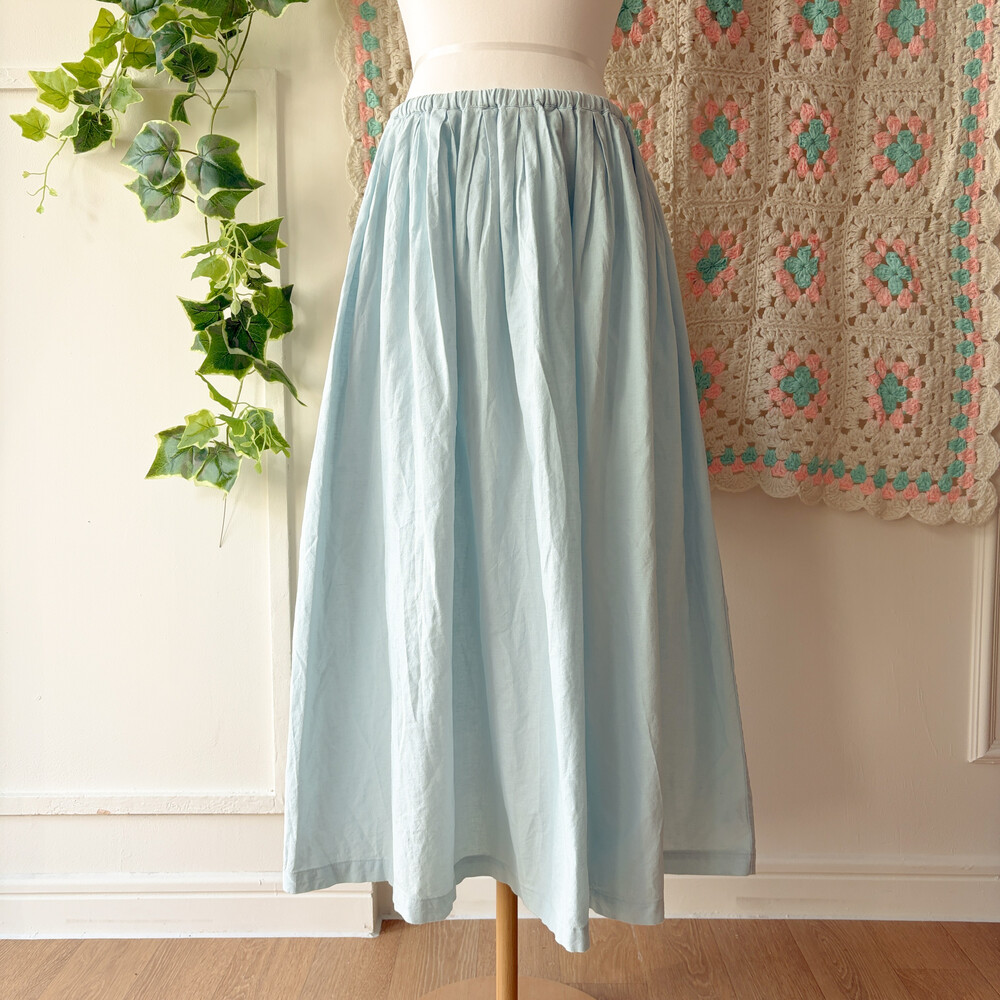 밝은 하늘색의 플레인 스커트예요