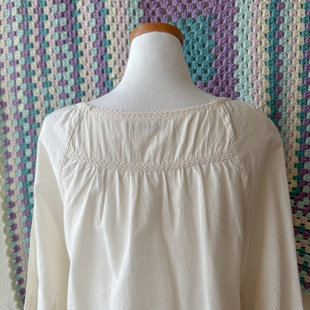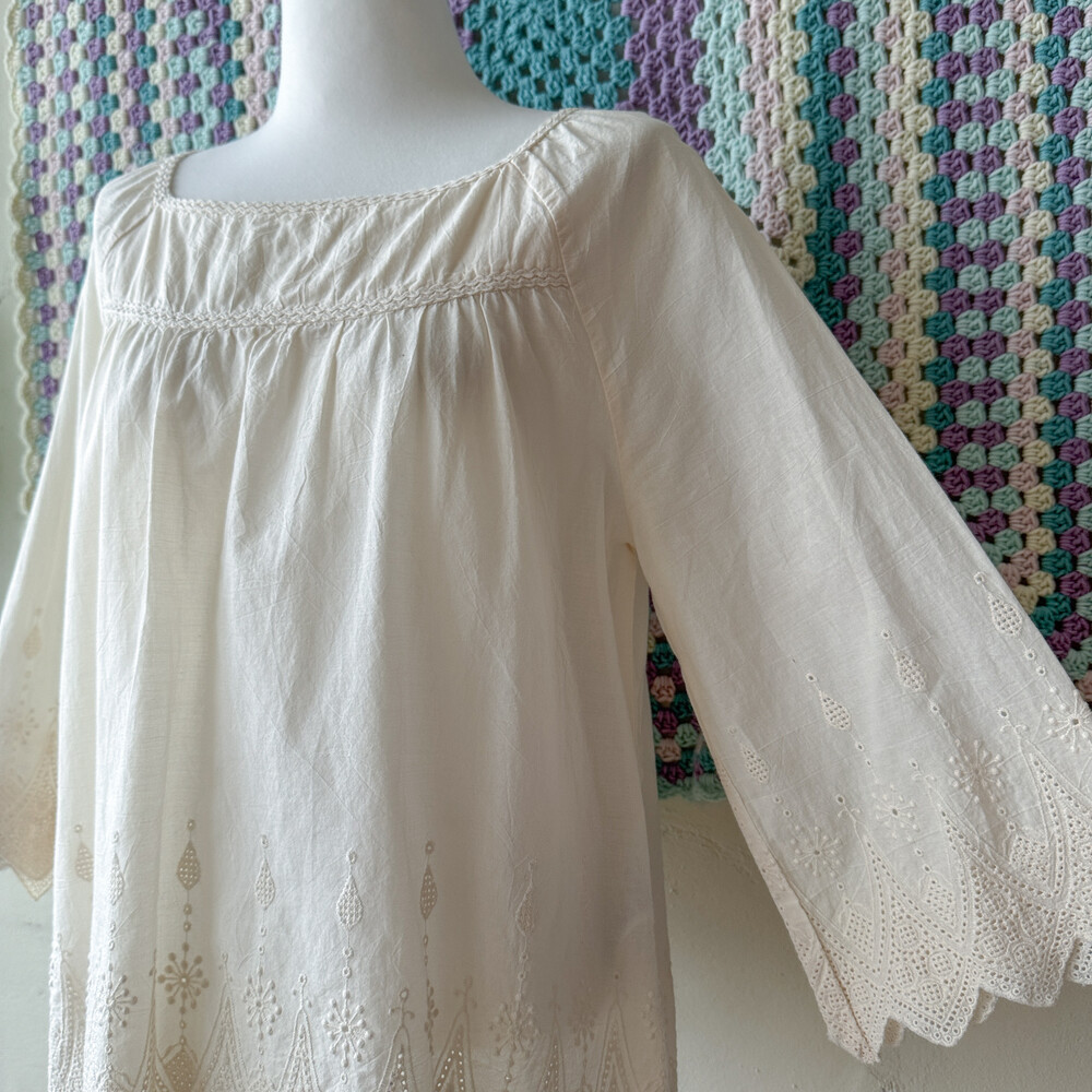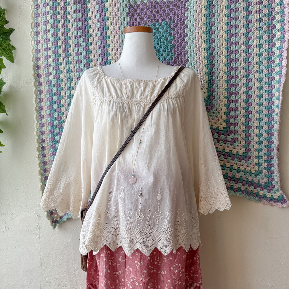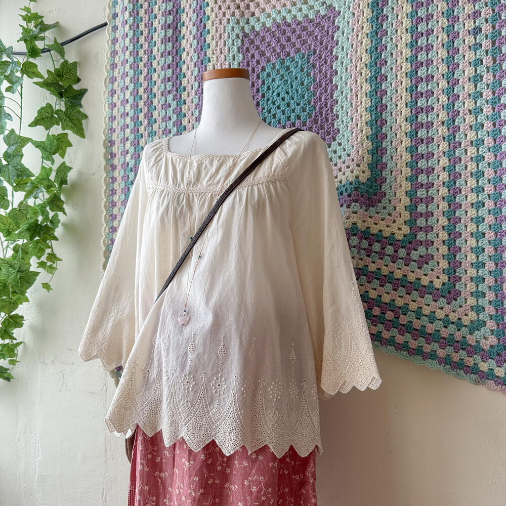 아이보리 색감의 자수 포인트 블라우스예요