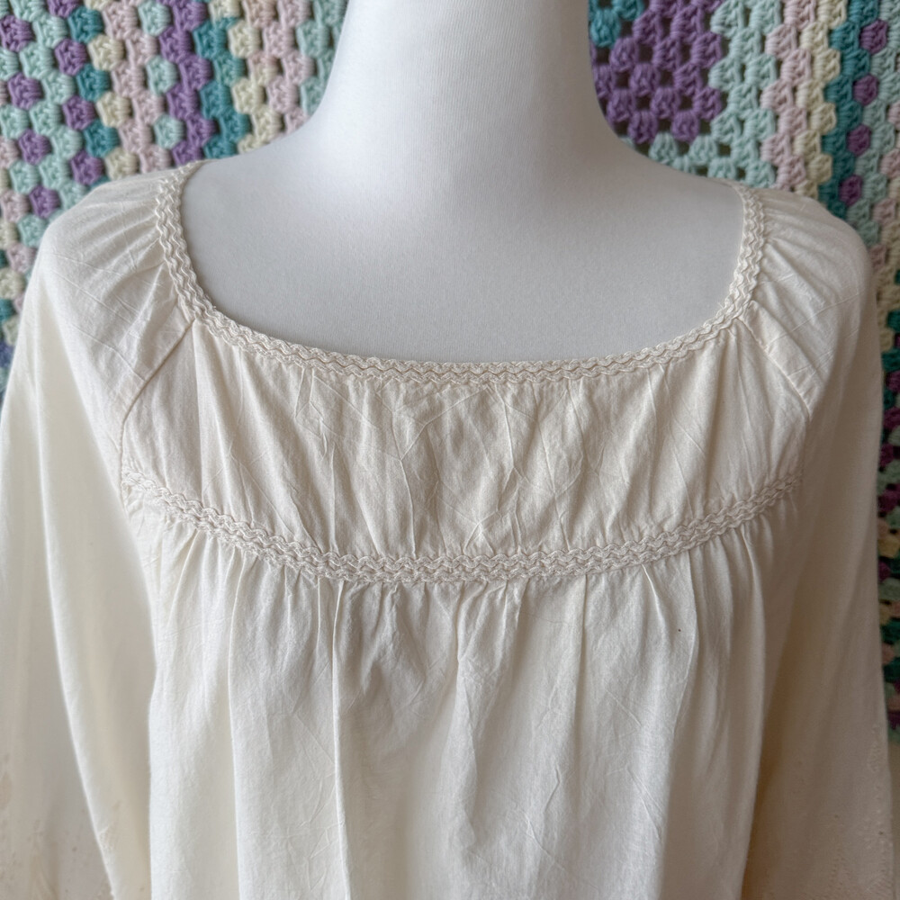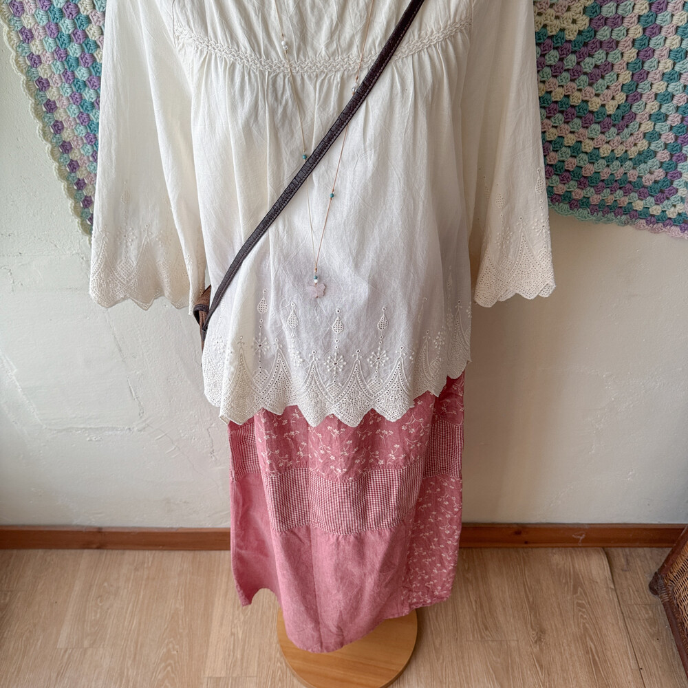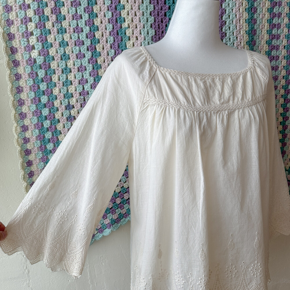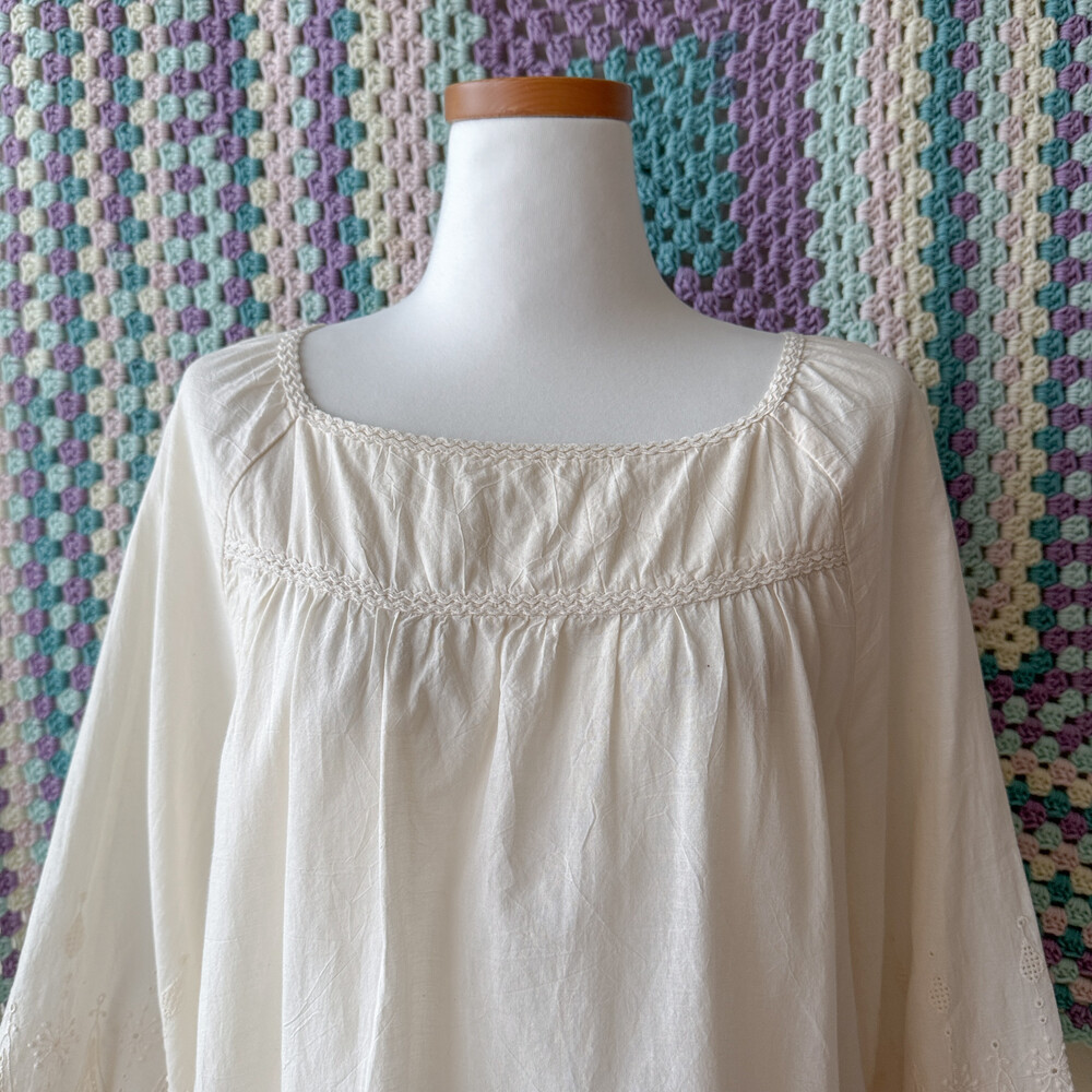 아이보리 색감의 자수 포인트 블라우스예요