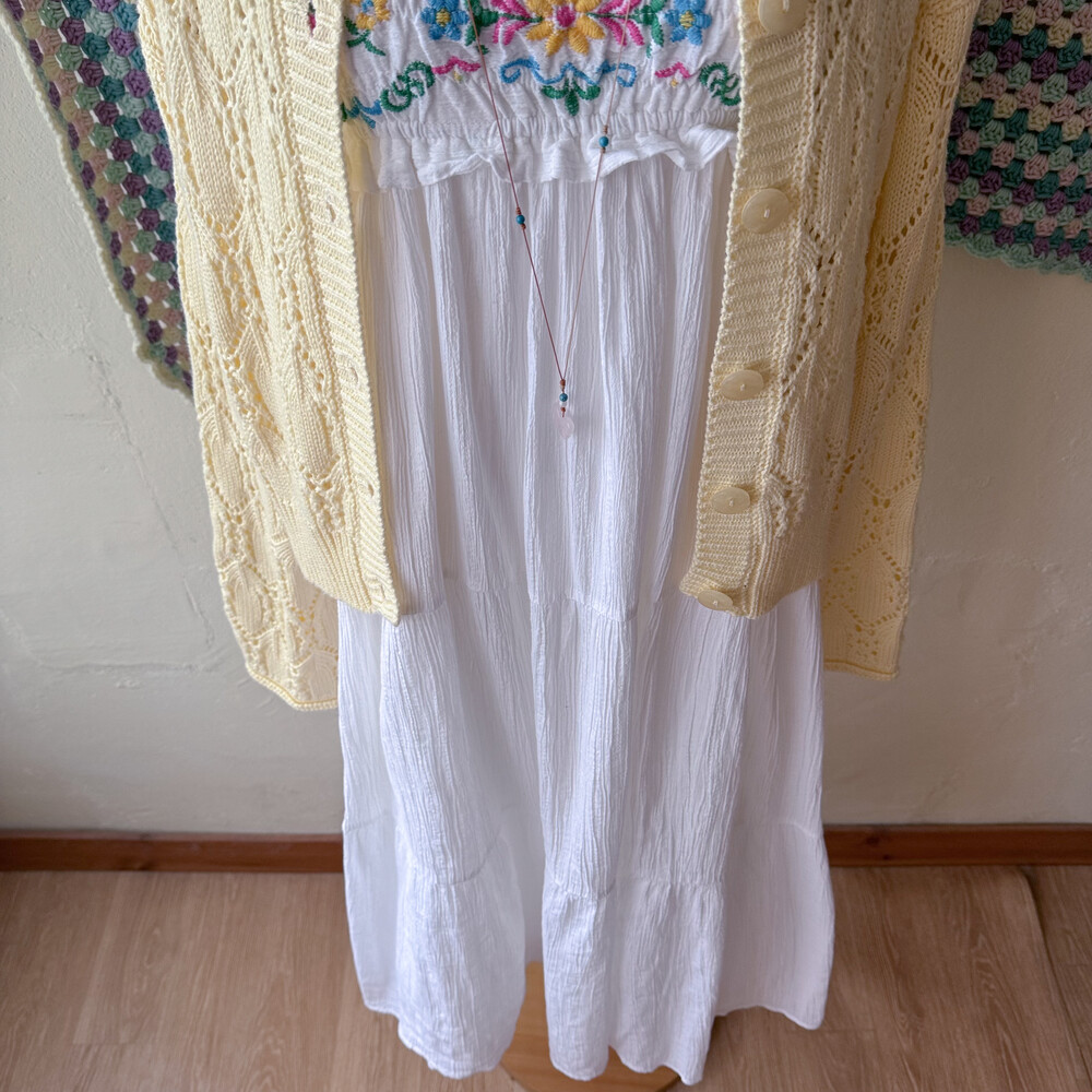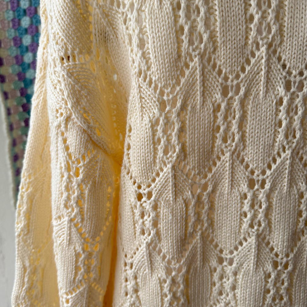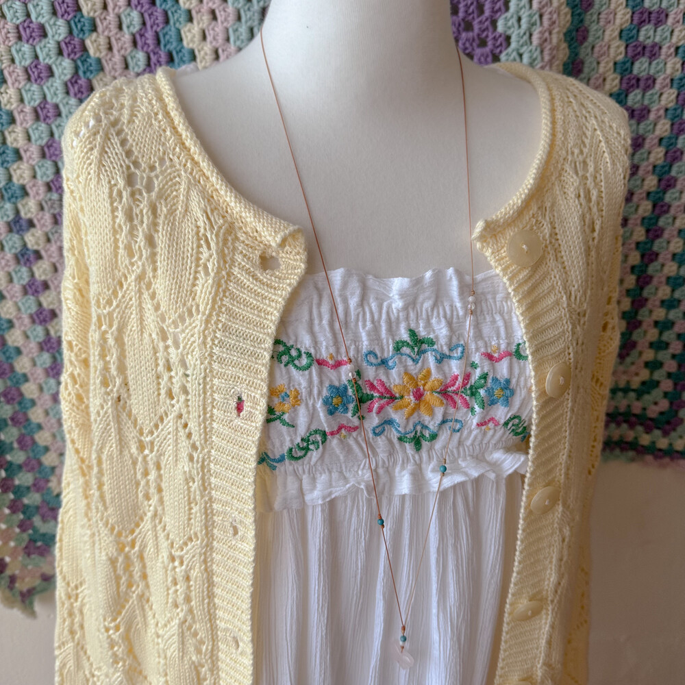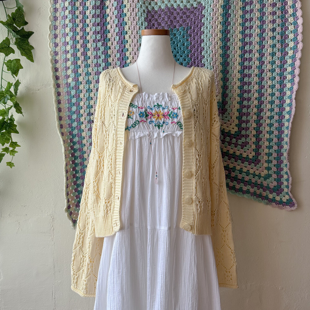 버터 노랑 색감의 펀칭 가디건이에요