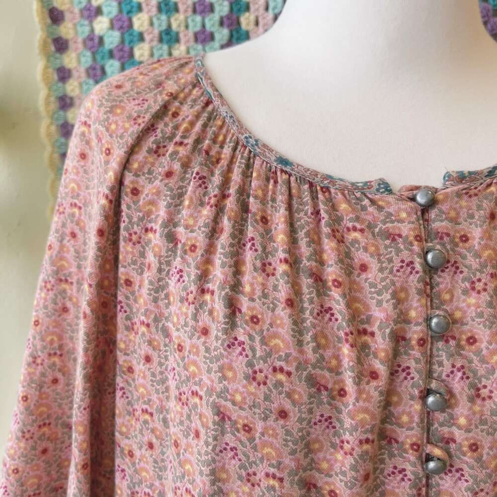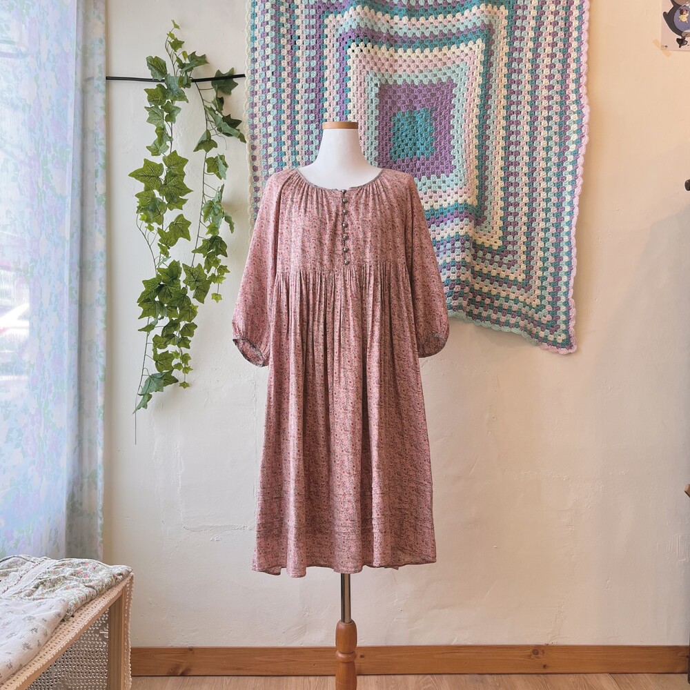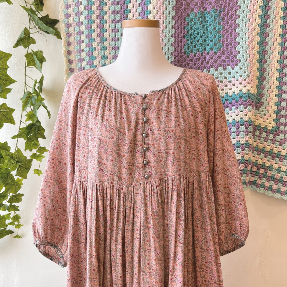 indie-pink flower cotton button ops