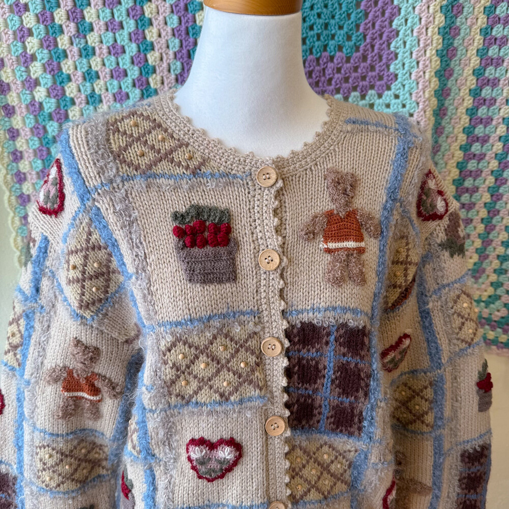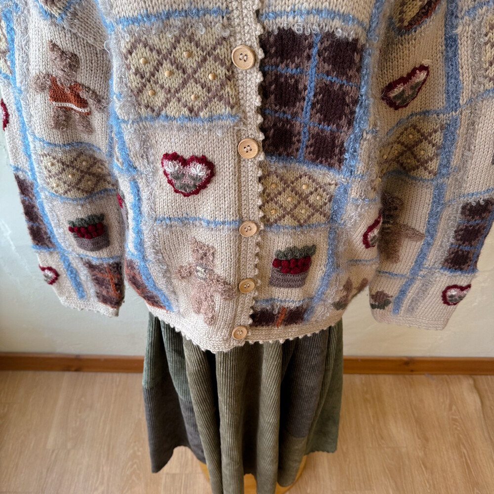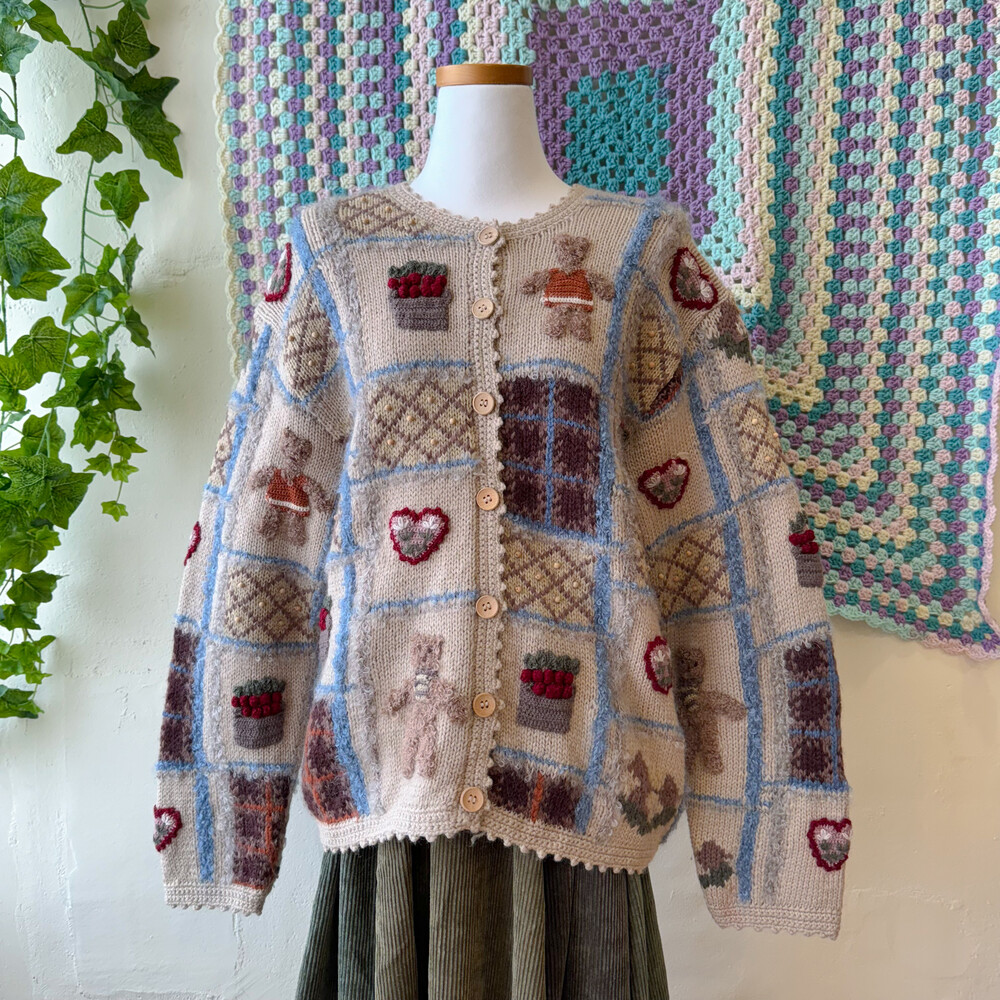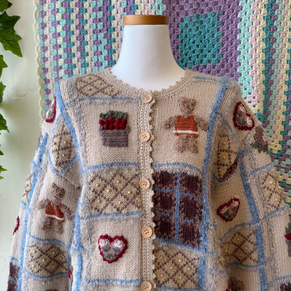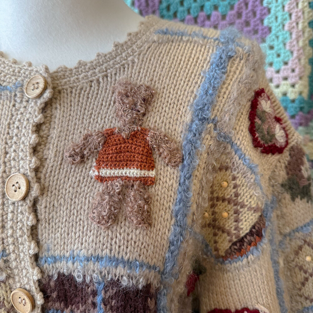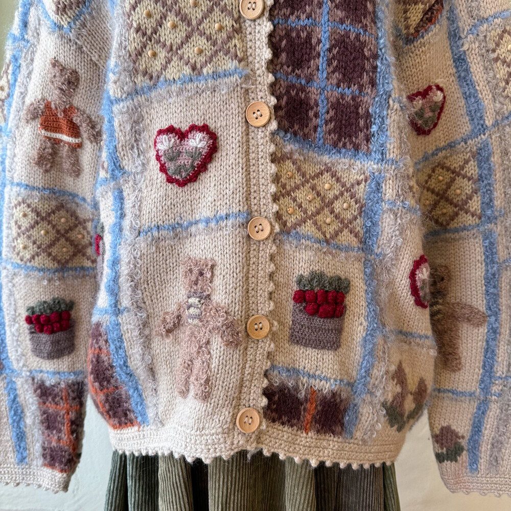 베이지 색감 베이스의 곰돌이 모티브 프리미엄 가디건이에요