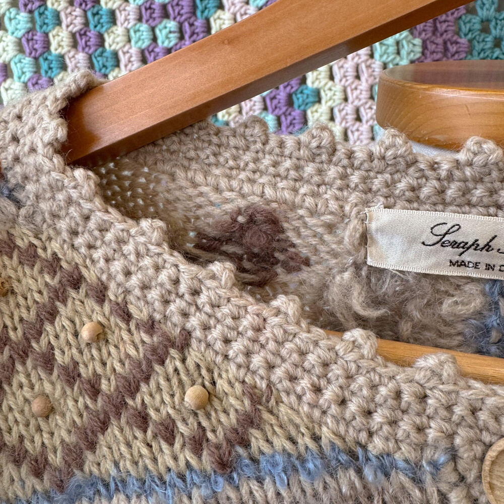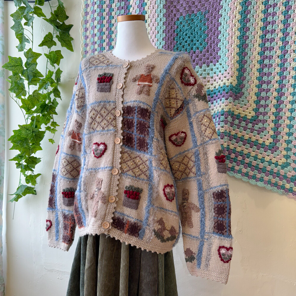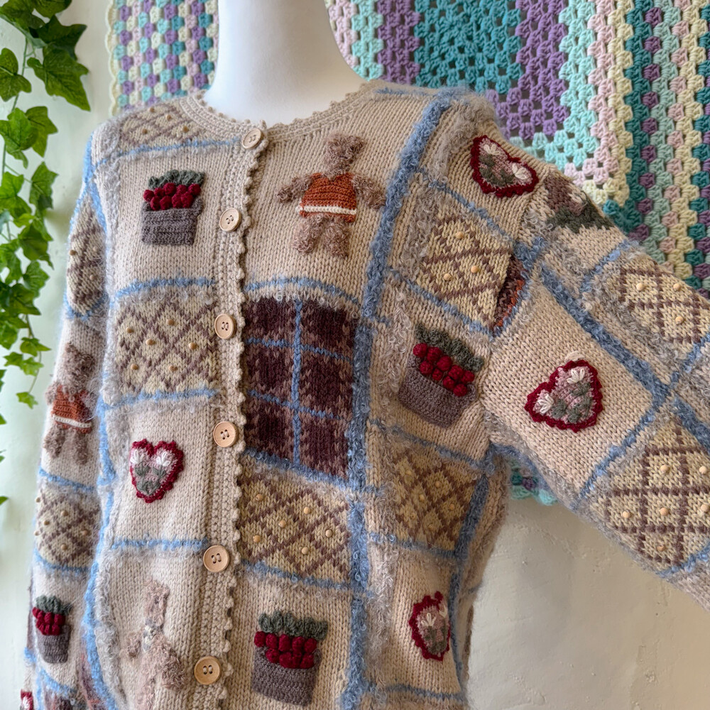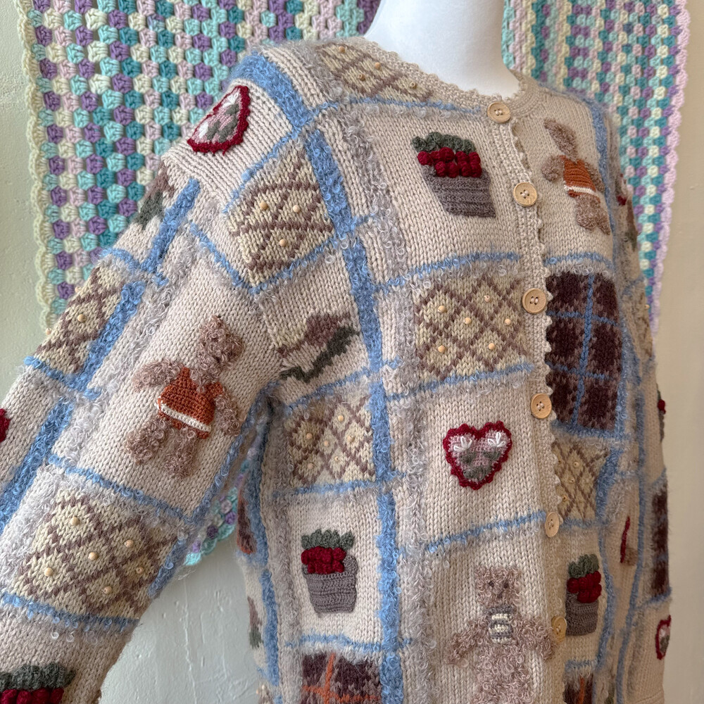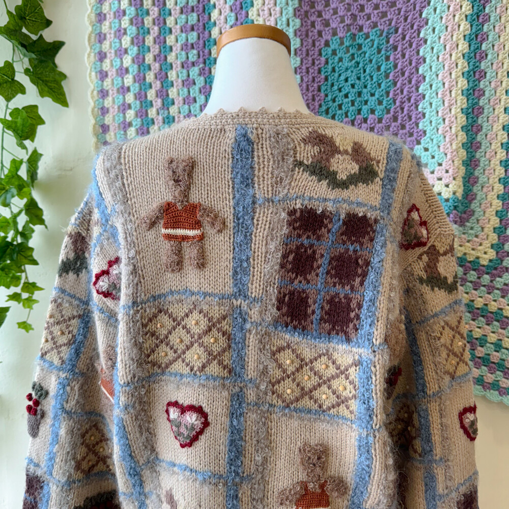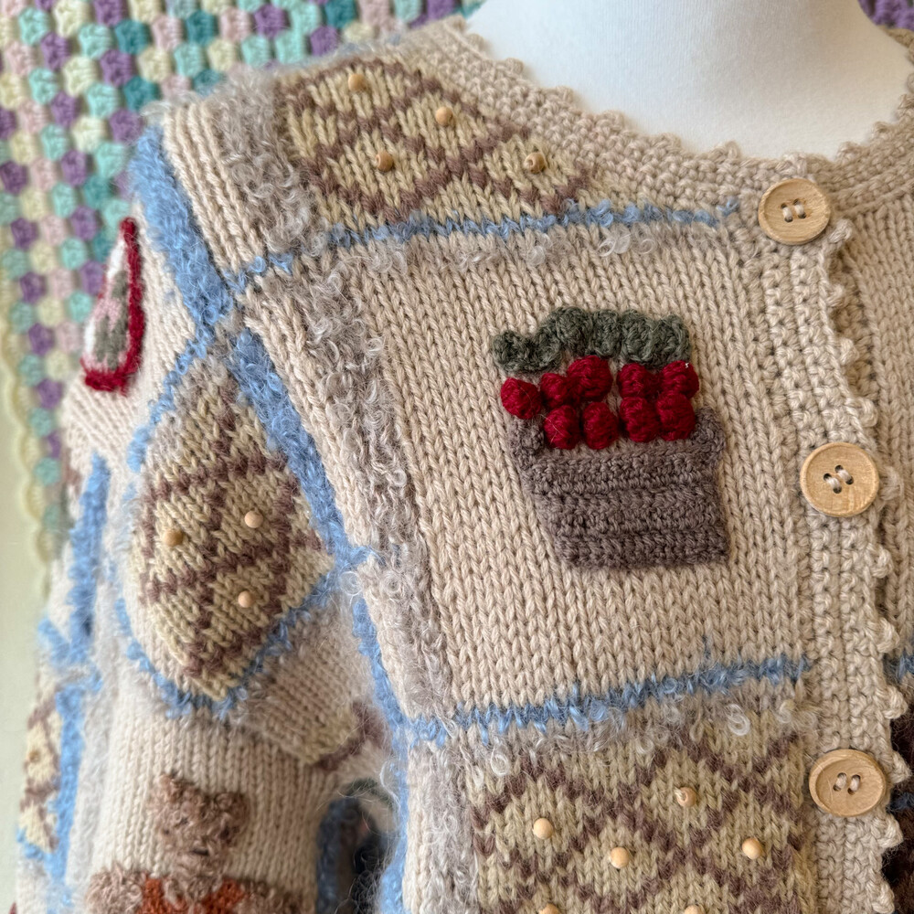 베이지 색감 베이스의 곰돌이 모티브 프리미엄 가디건이에요