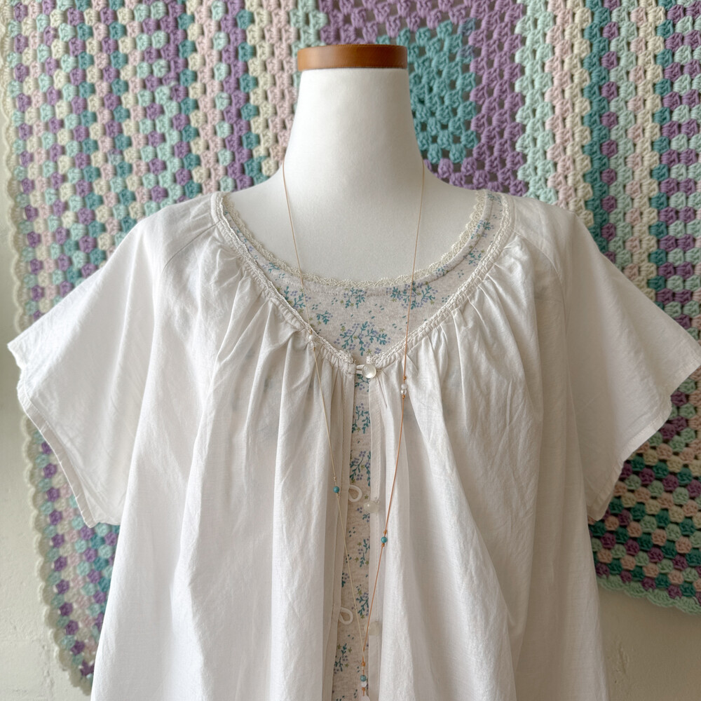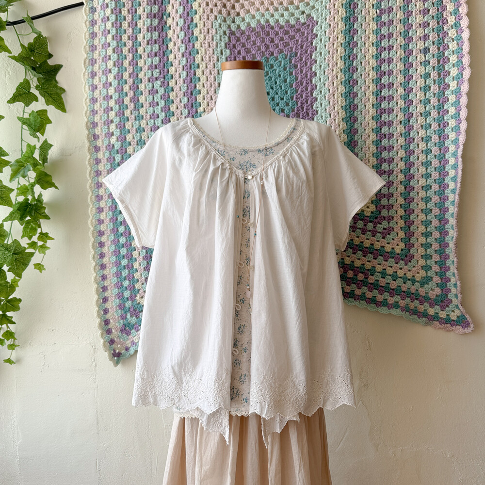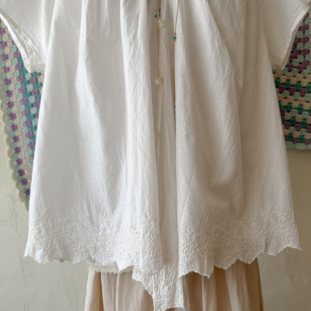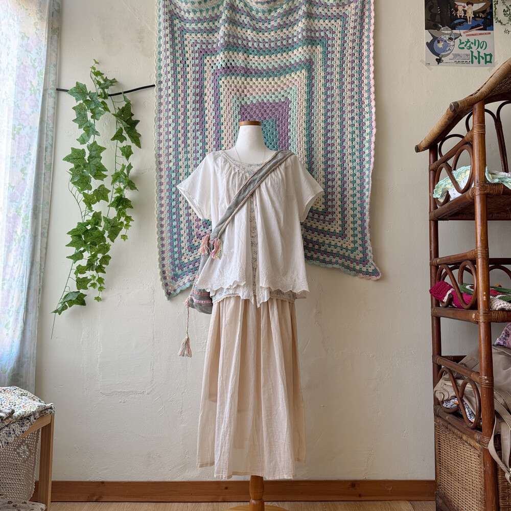 아이보리 색감의 블라우스 겸 코튼 가디건이에요