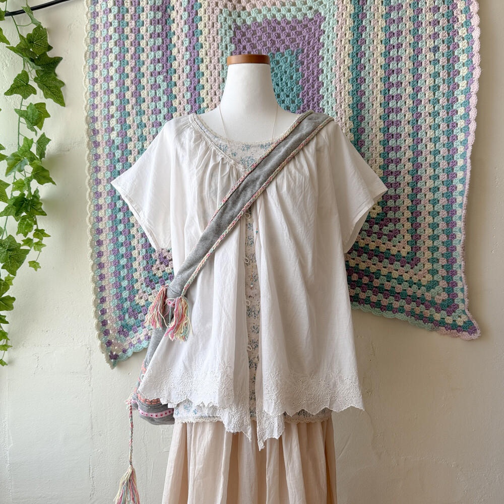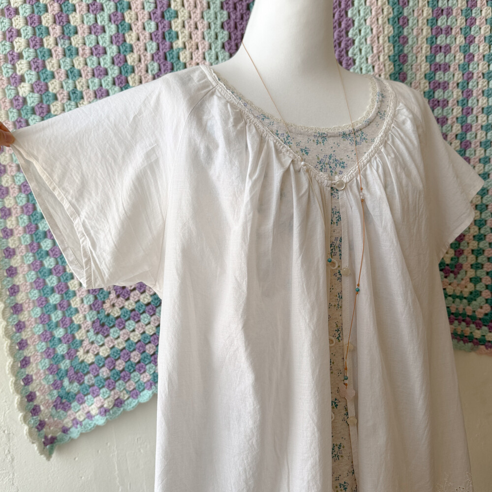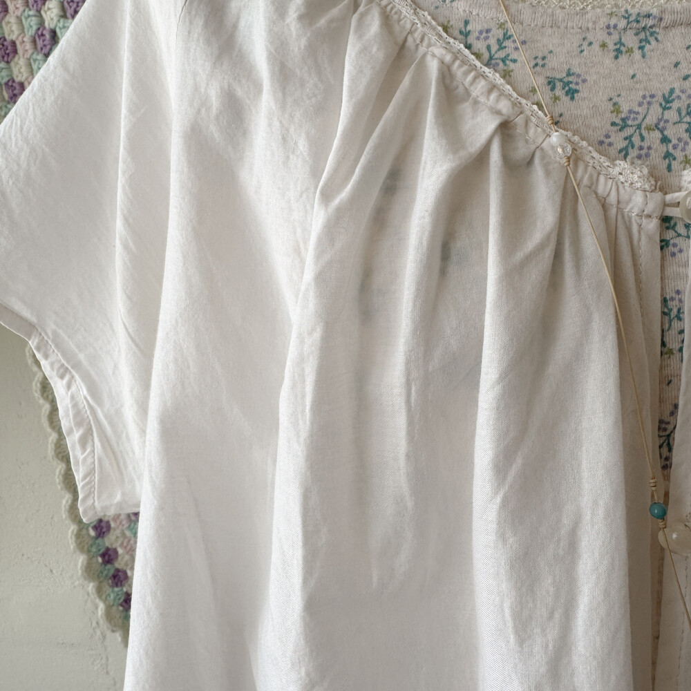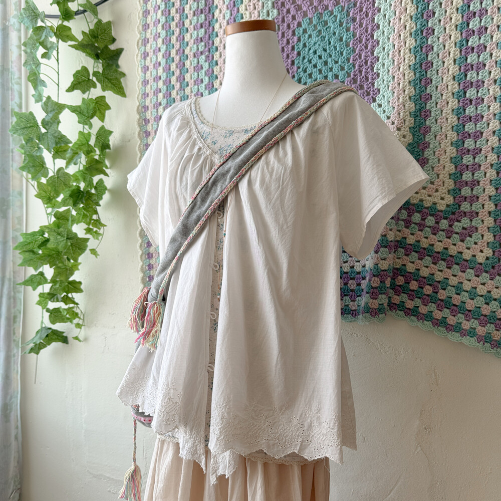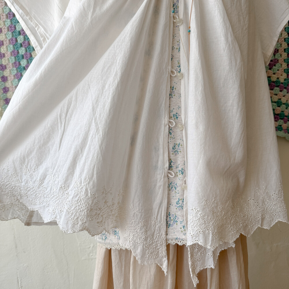 아이보리 색감의 블라우스 겸 코튼 가디건이에요