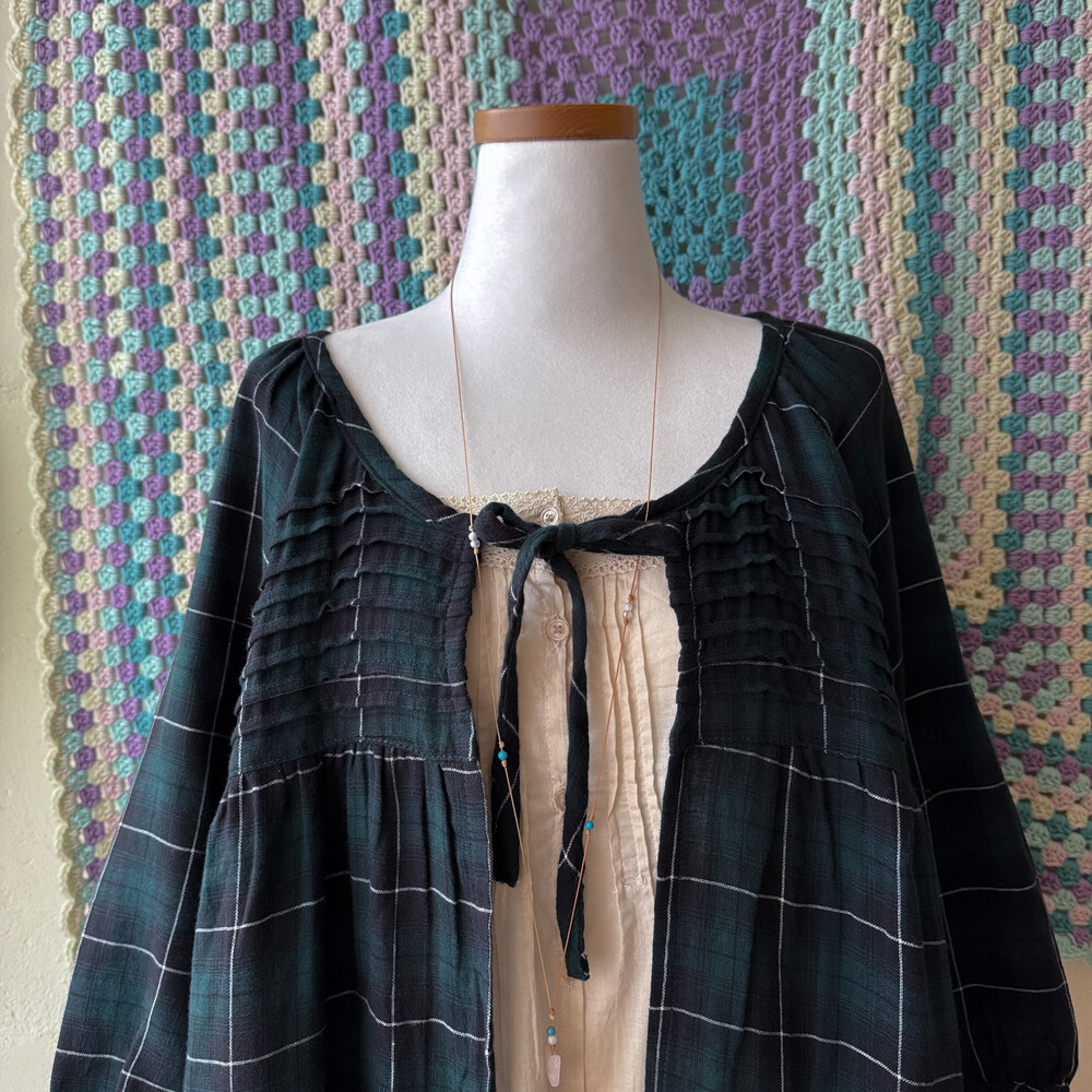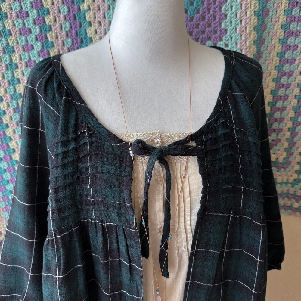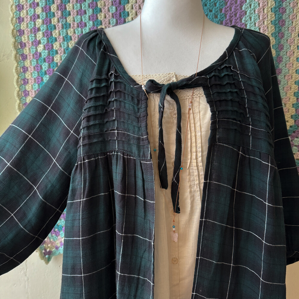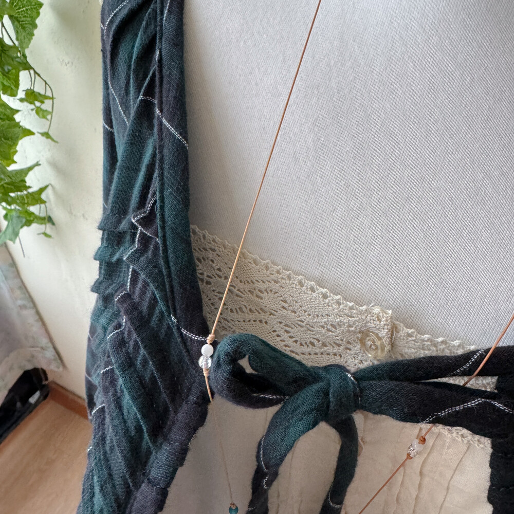 그린, 네이비 색감 조합의 바선생 원피스예요
