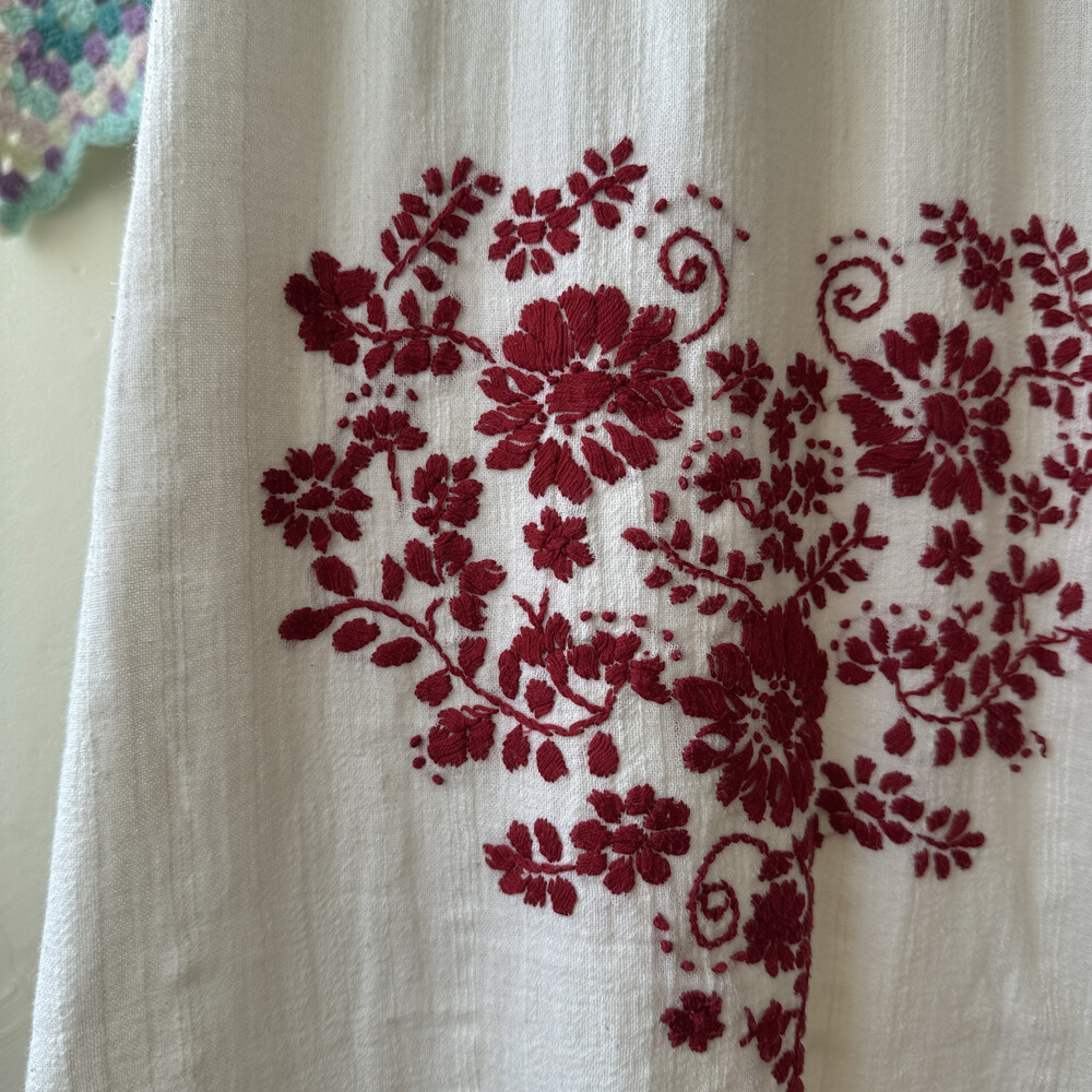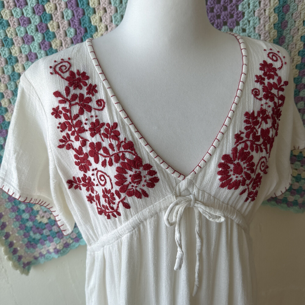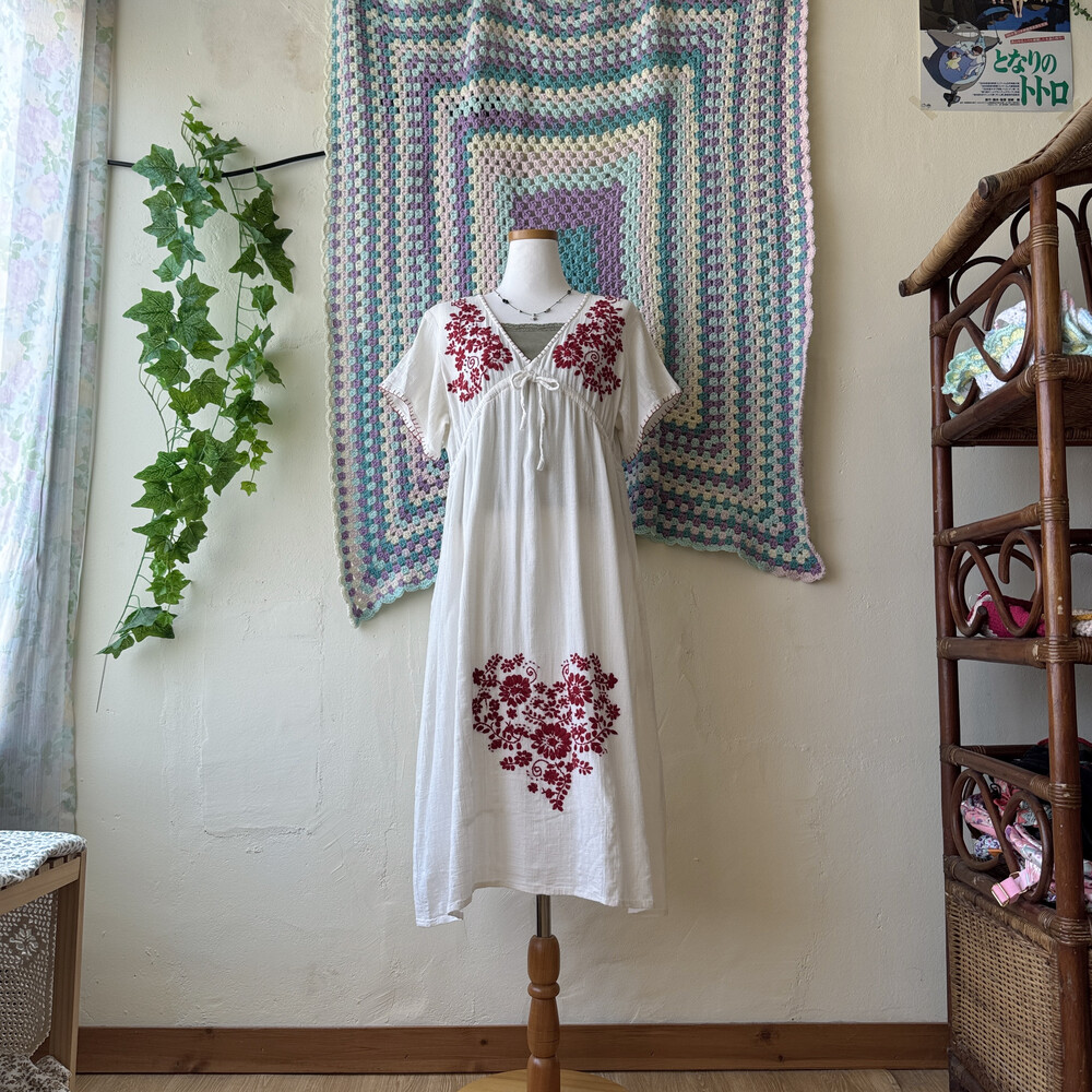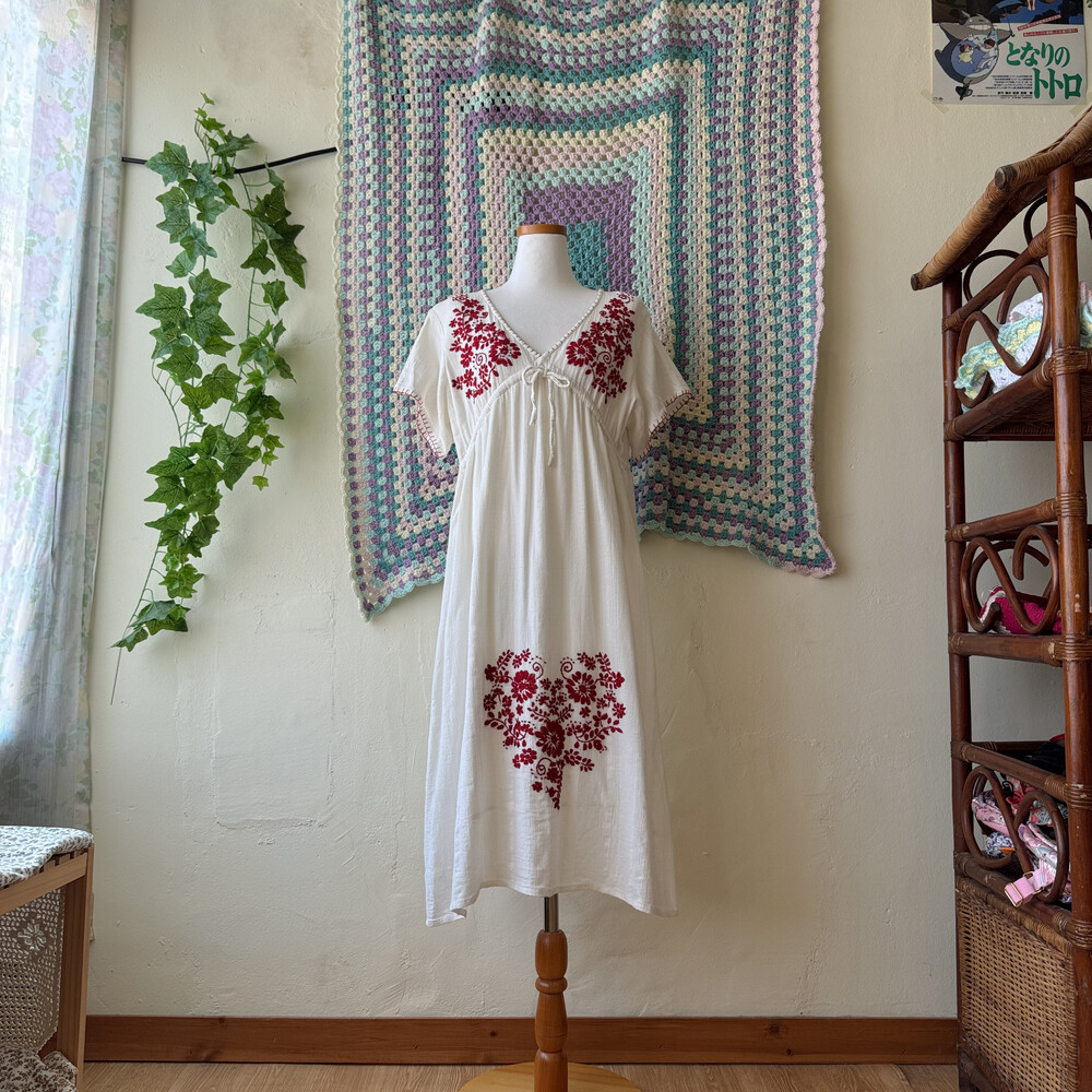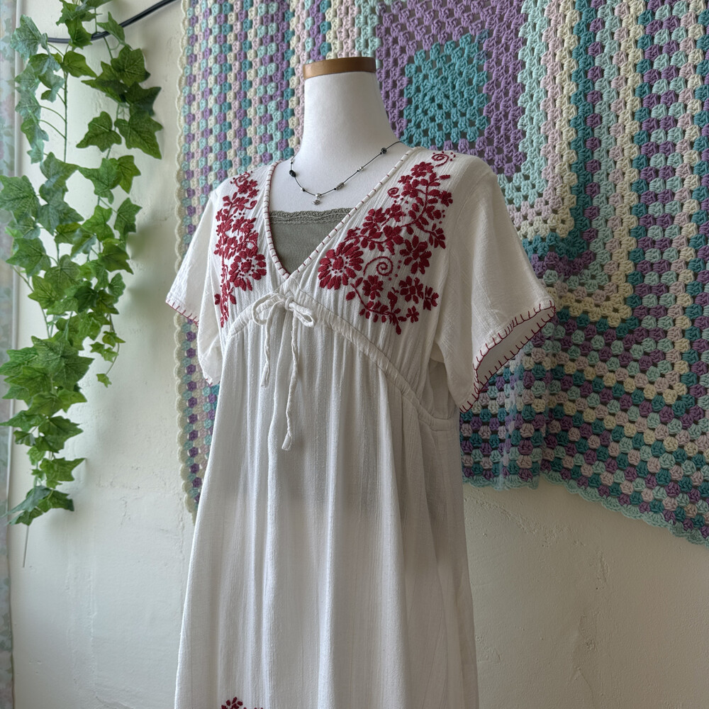 티티카카의 레드 자수 코튼 브이넥 원피스예요
