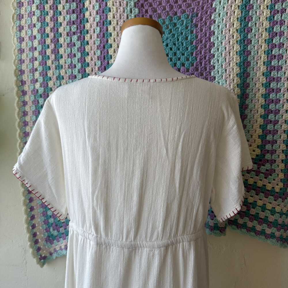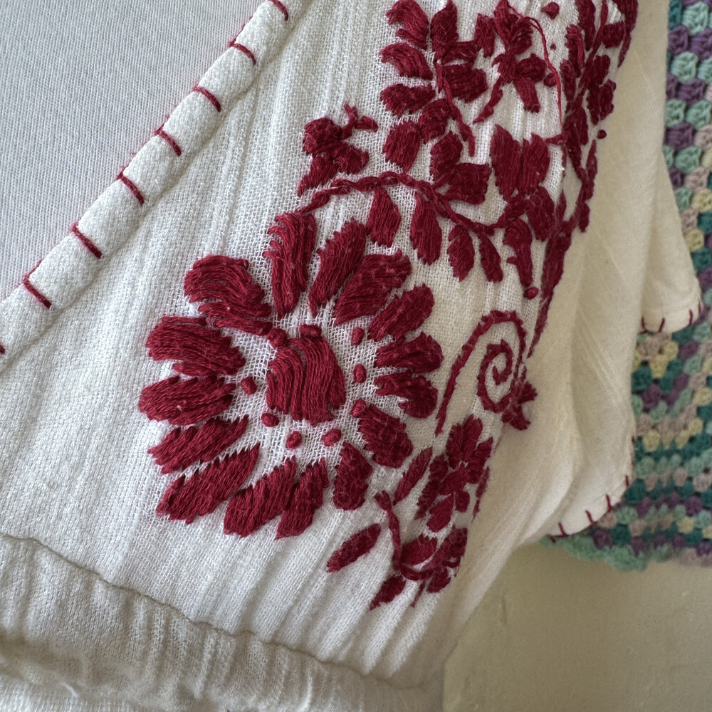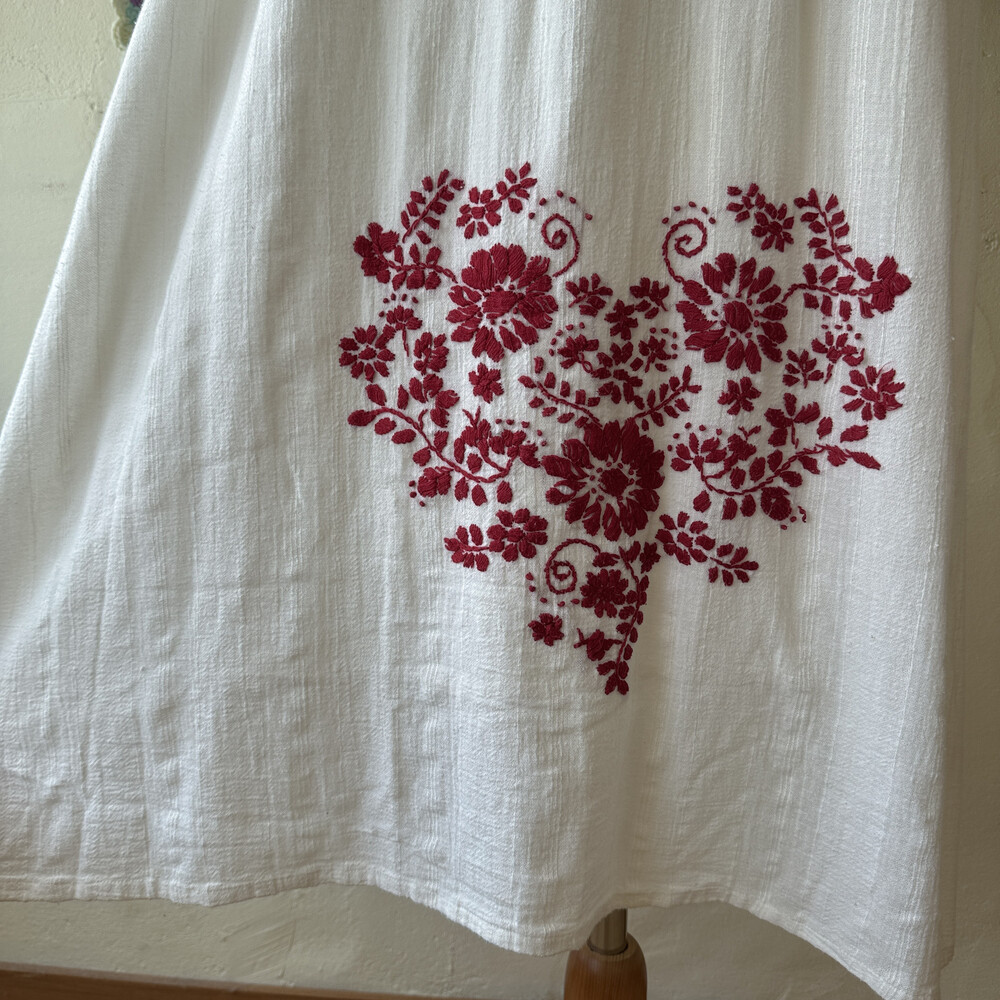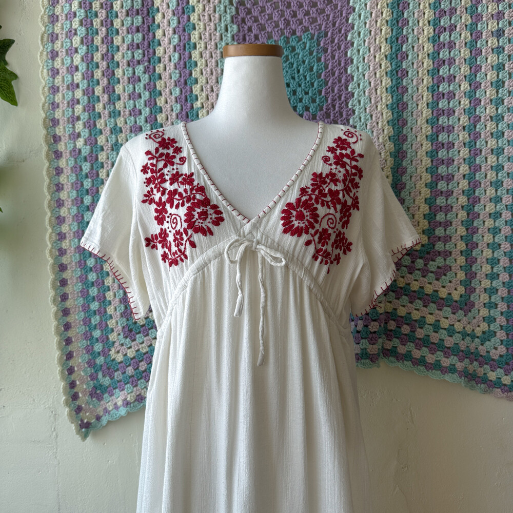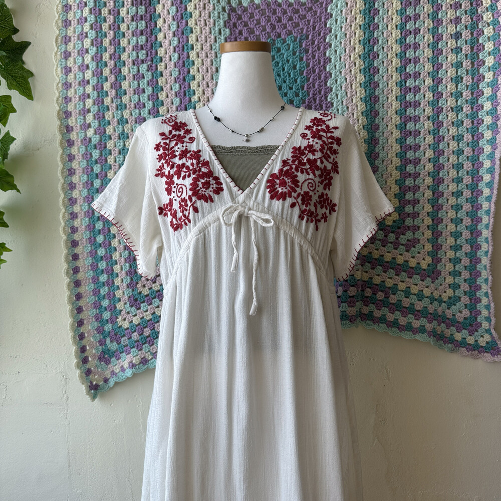 티티카카의 레드 자수 코튼 브이넥 원피스예요