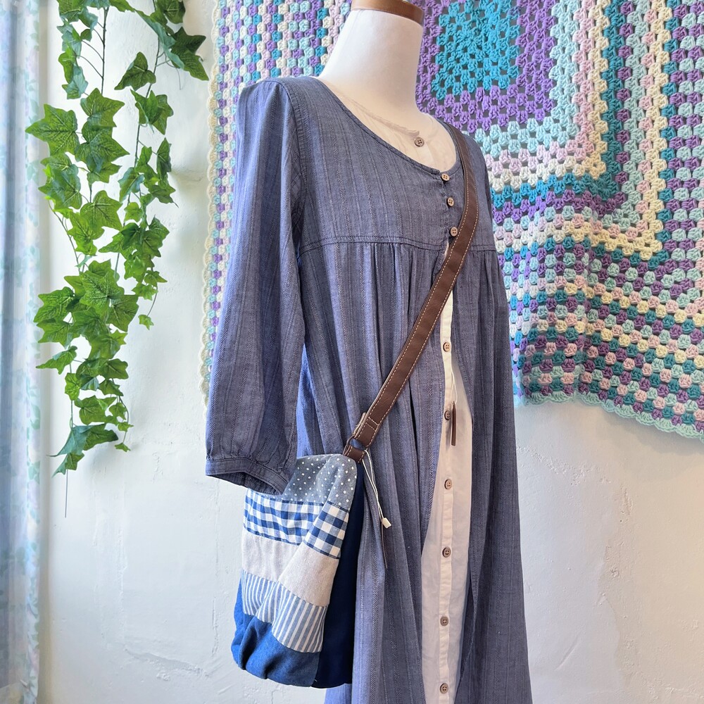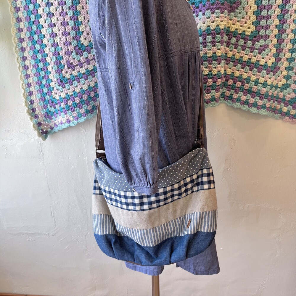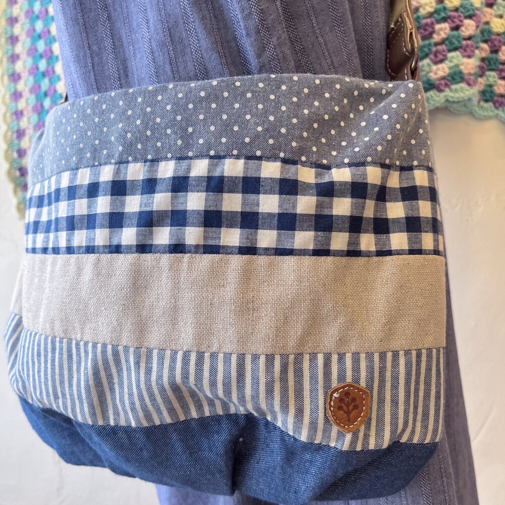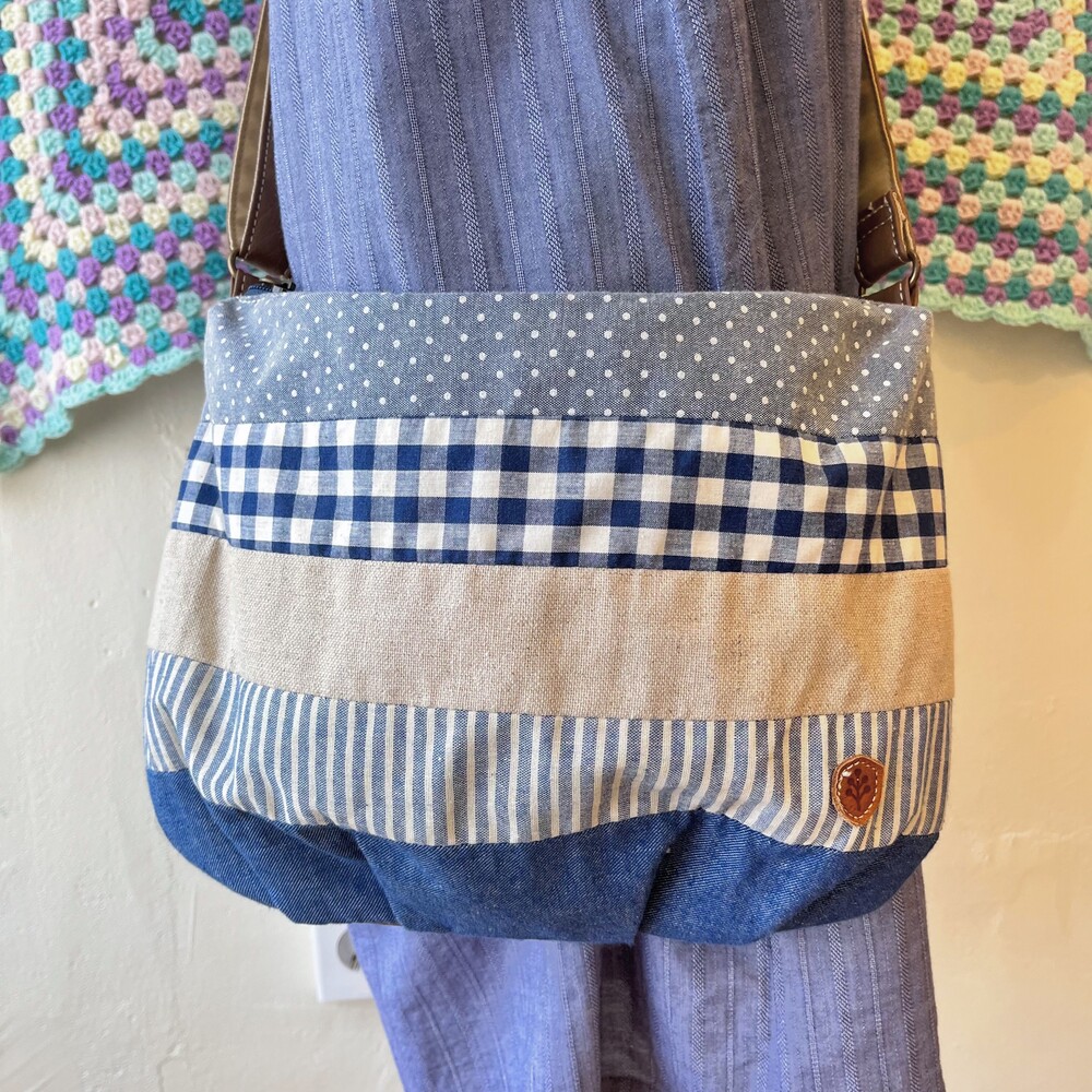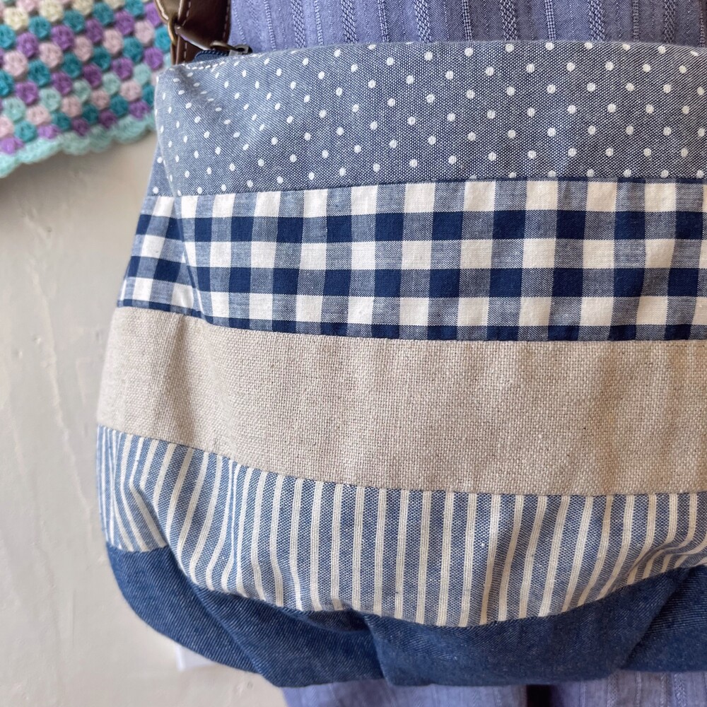 denim linen patch cross bag