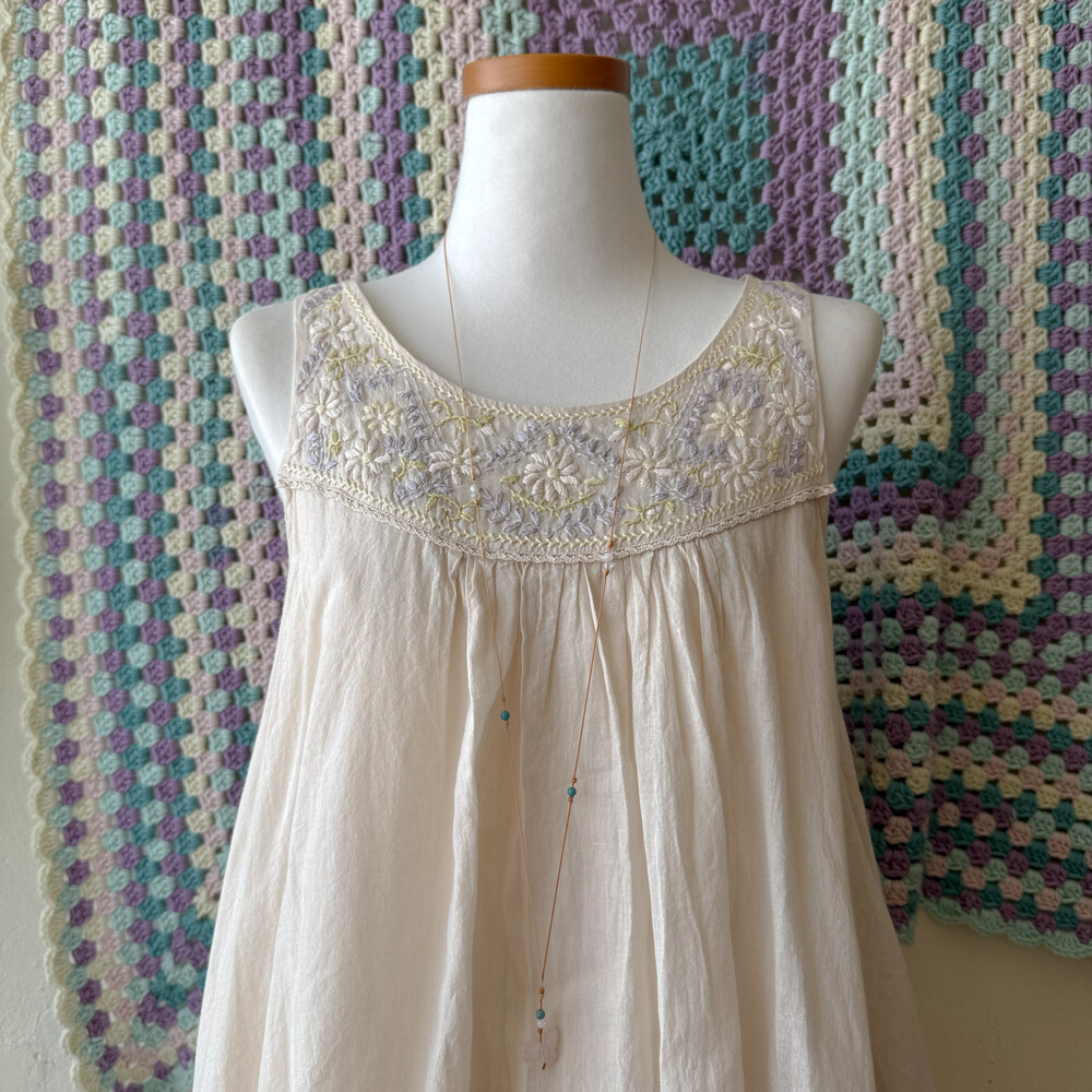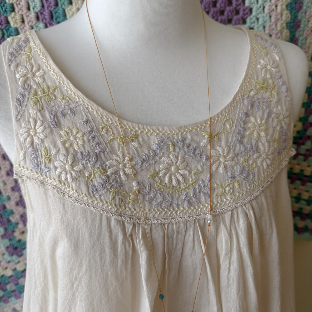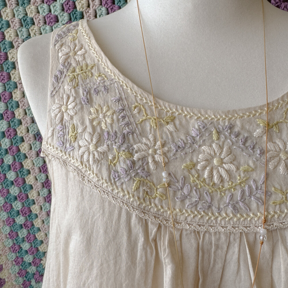 코튼 소재구요, 퍼플 그린 등 색감의 자수가 들어가 있어요
