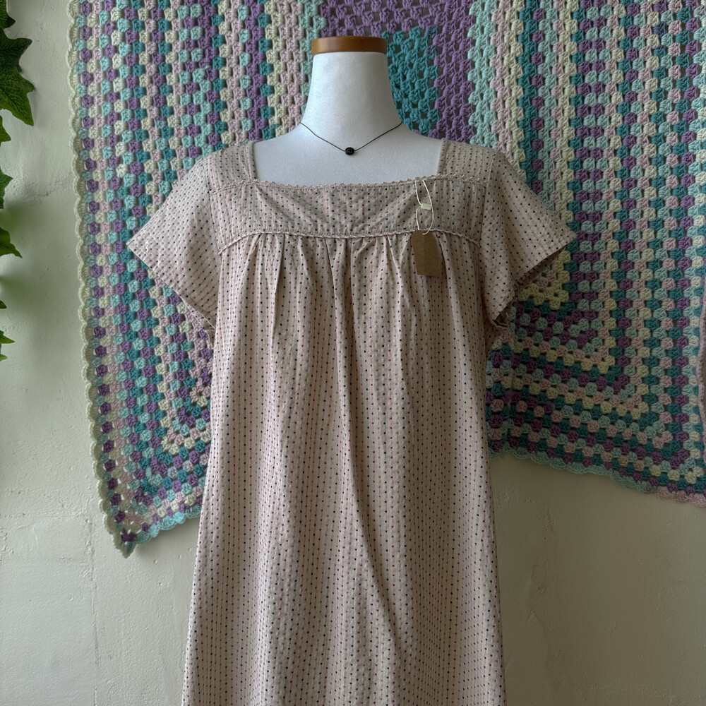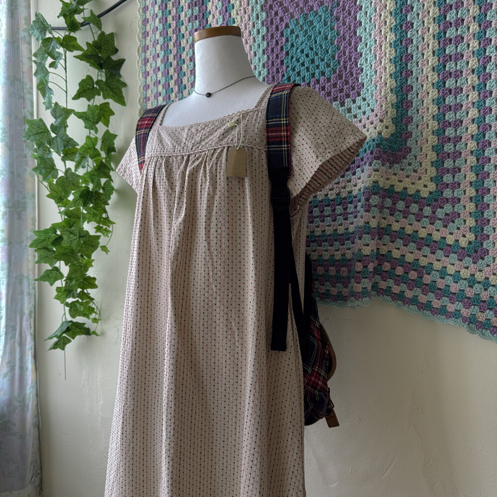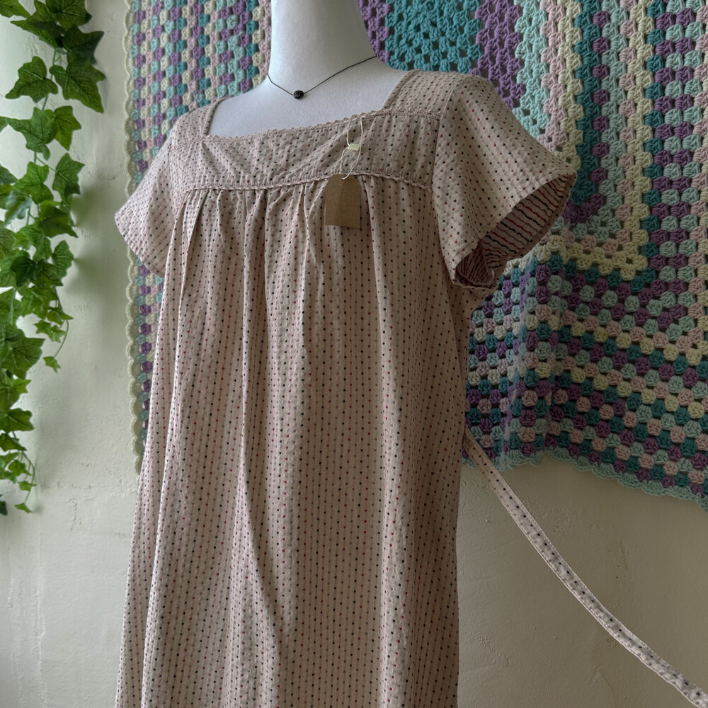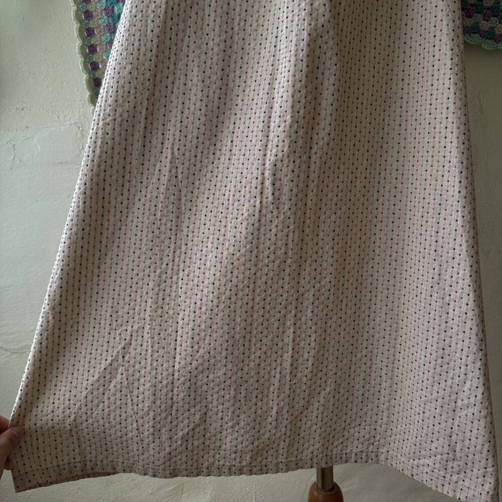 베이지 바탕에 블랙, 레드 패턴이 들어간 원피스예요