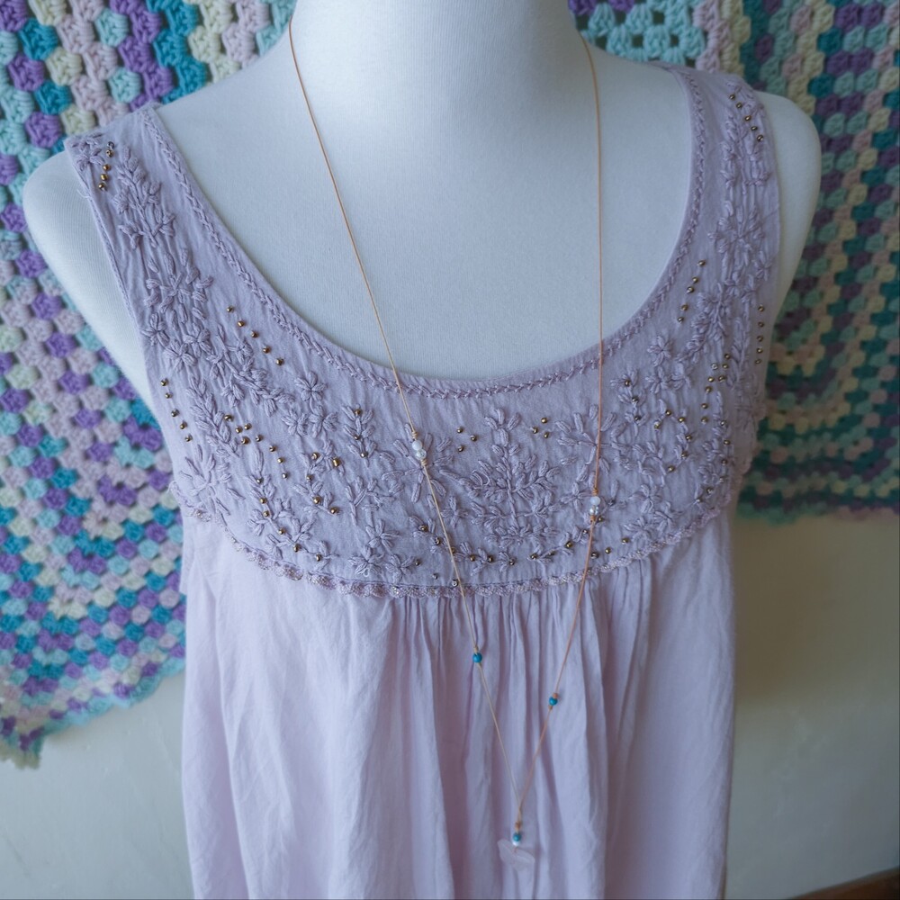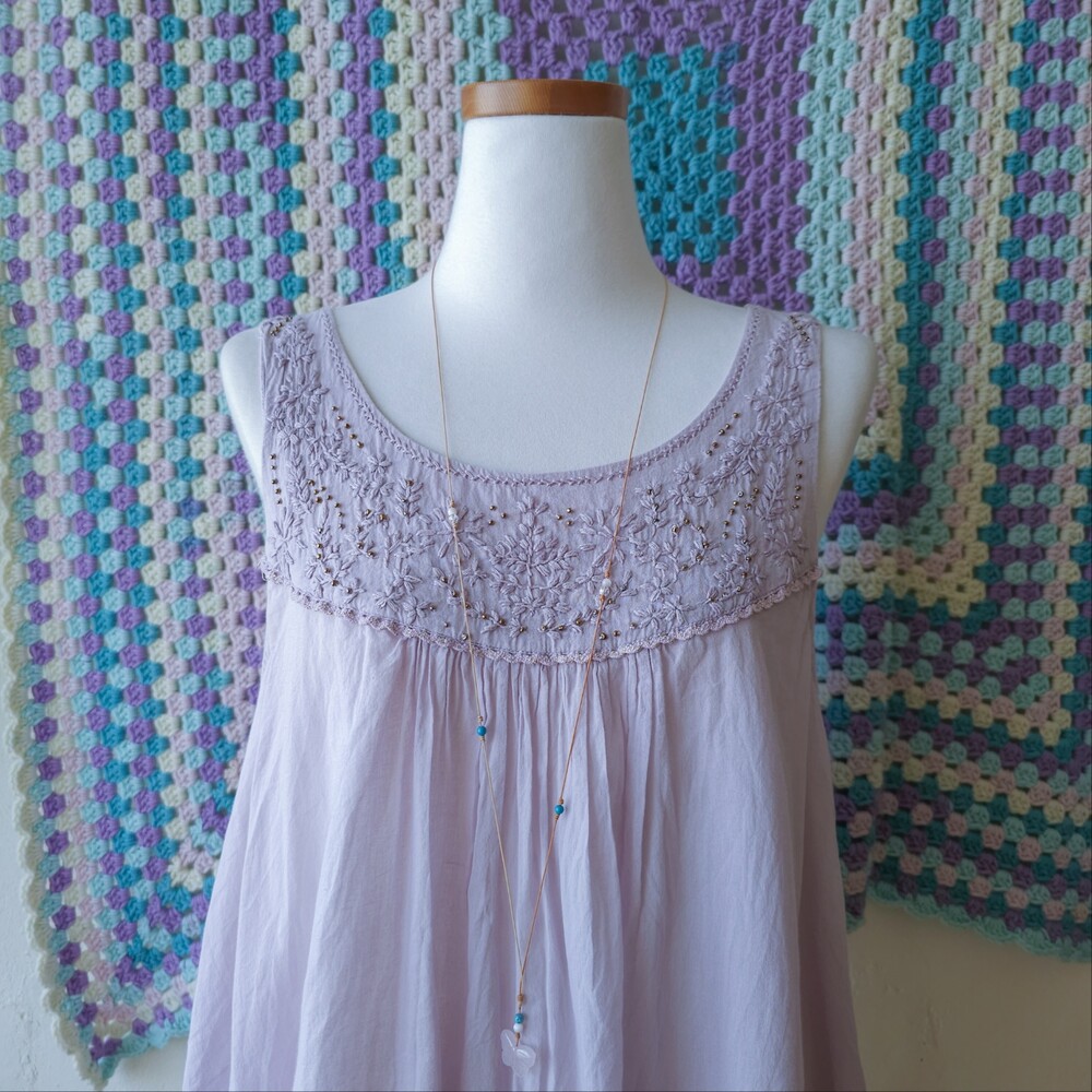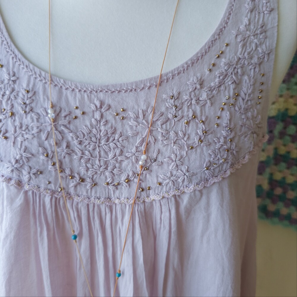 연보라 색감의 자수&비즈 민소매 블라우스예요