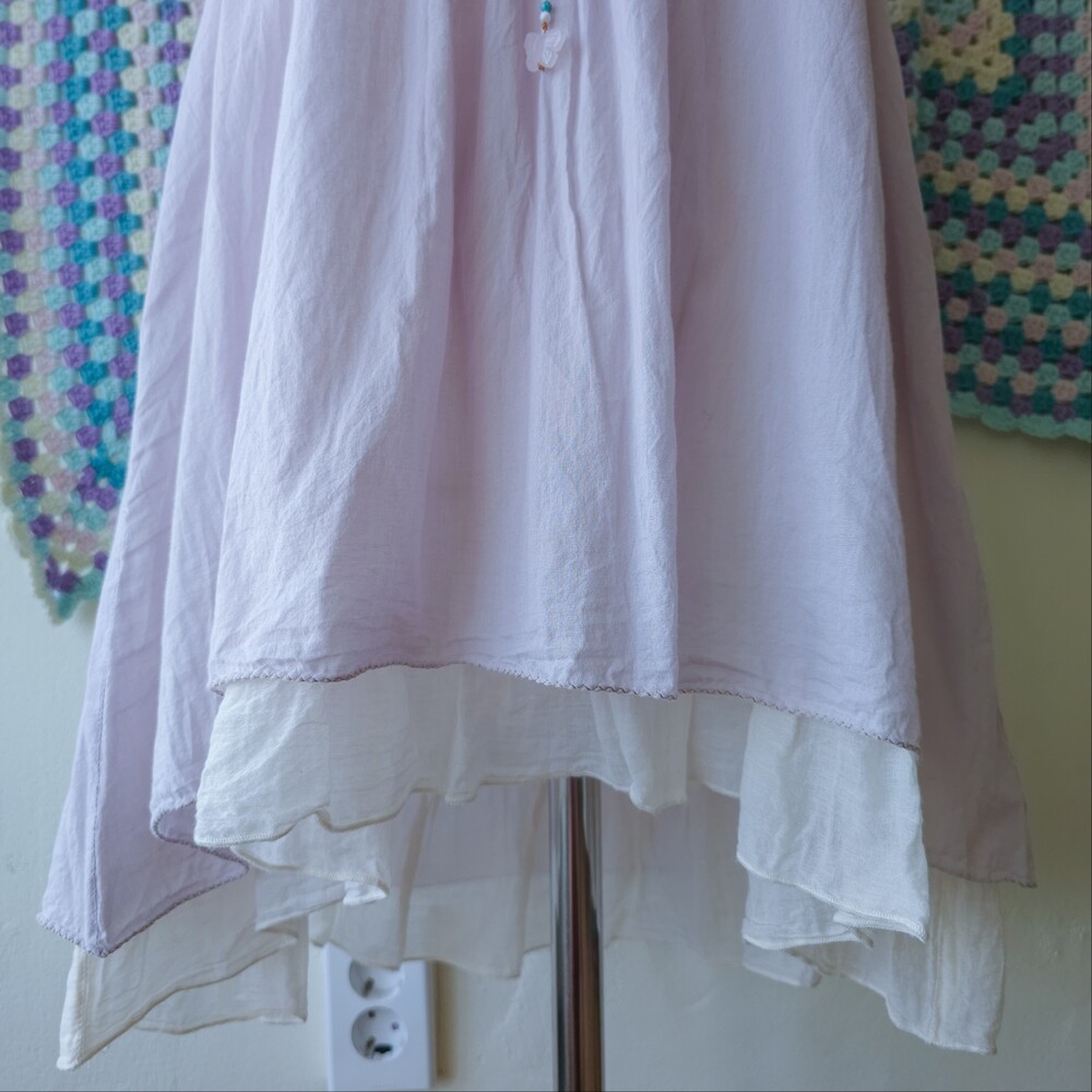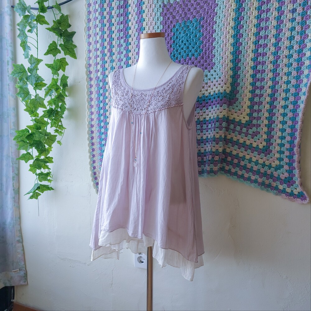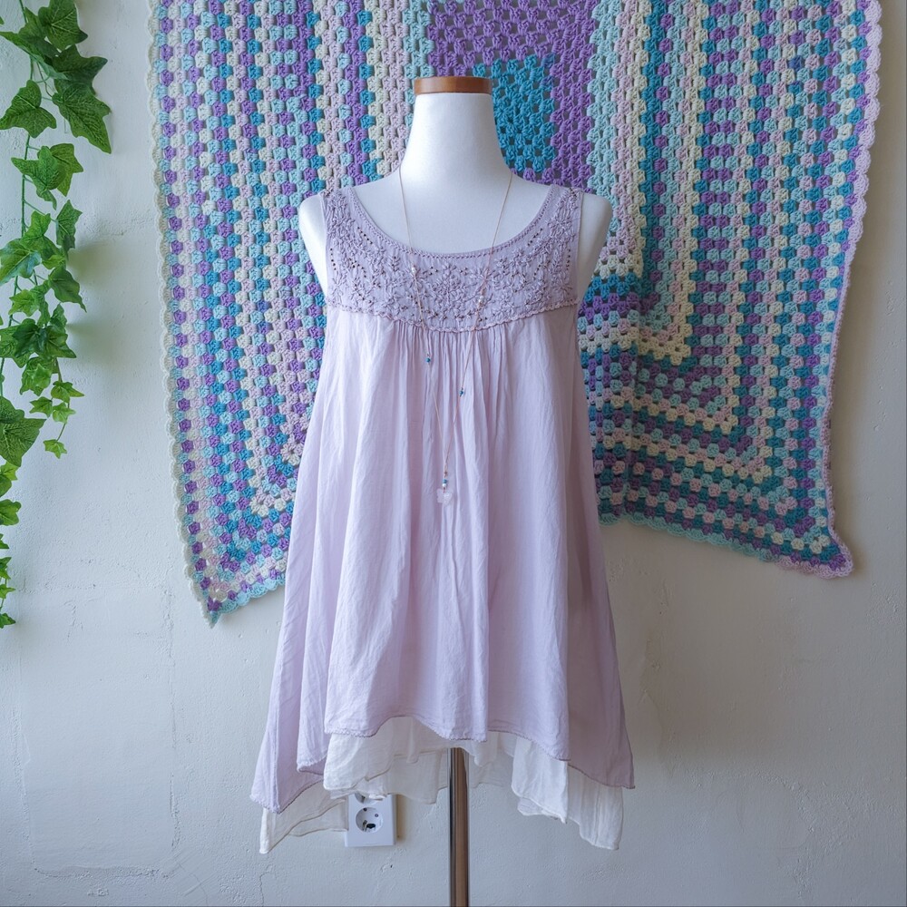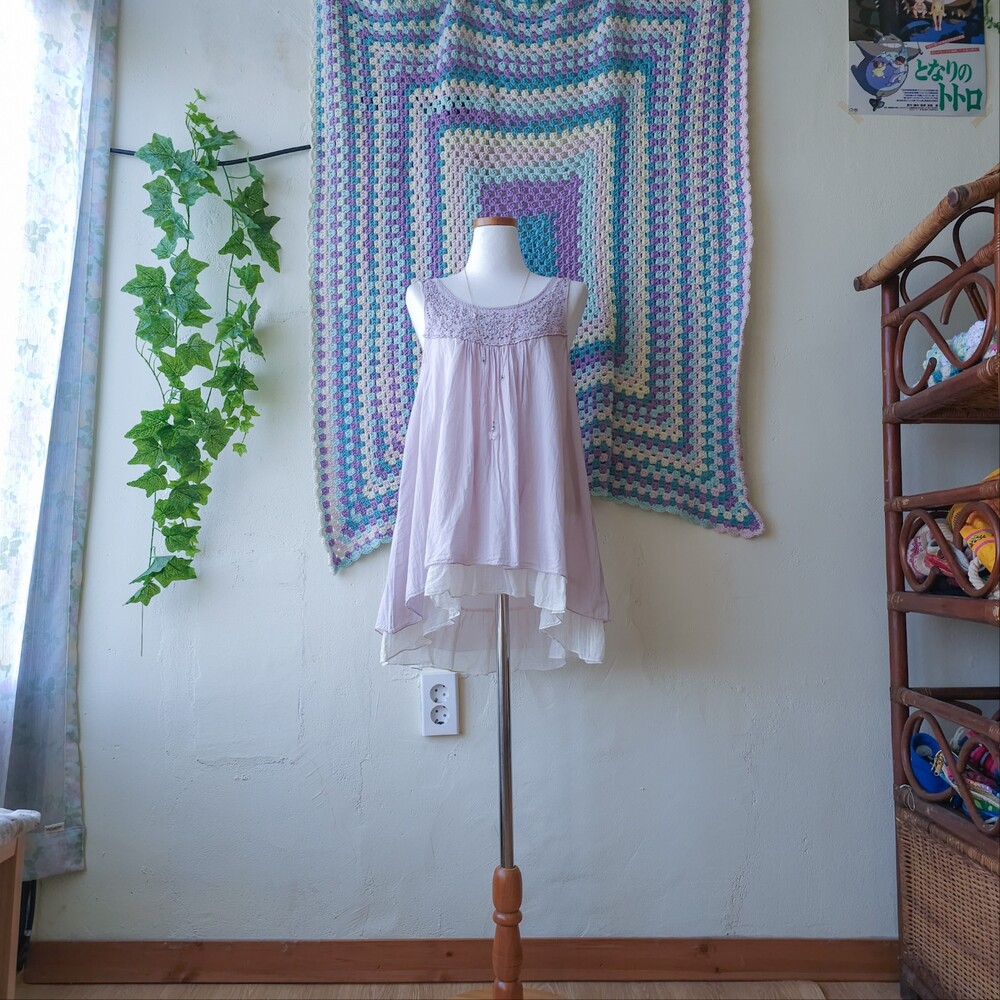 연보라 색감의 자수&비즈 민소매 블라우스예요