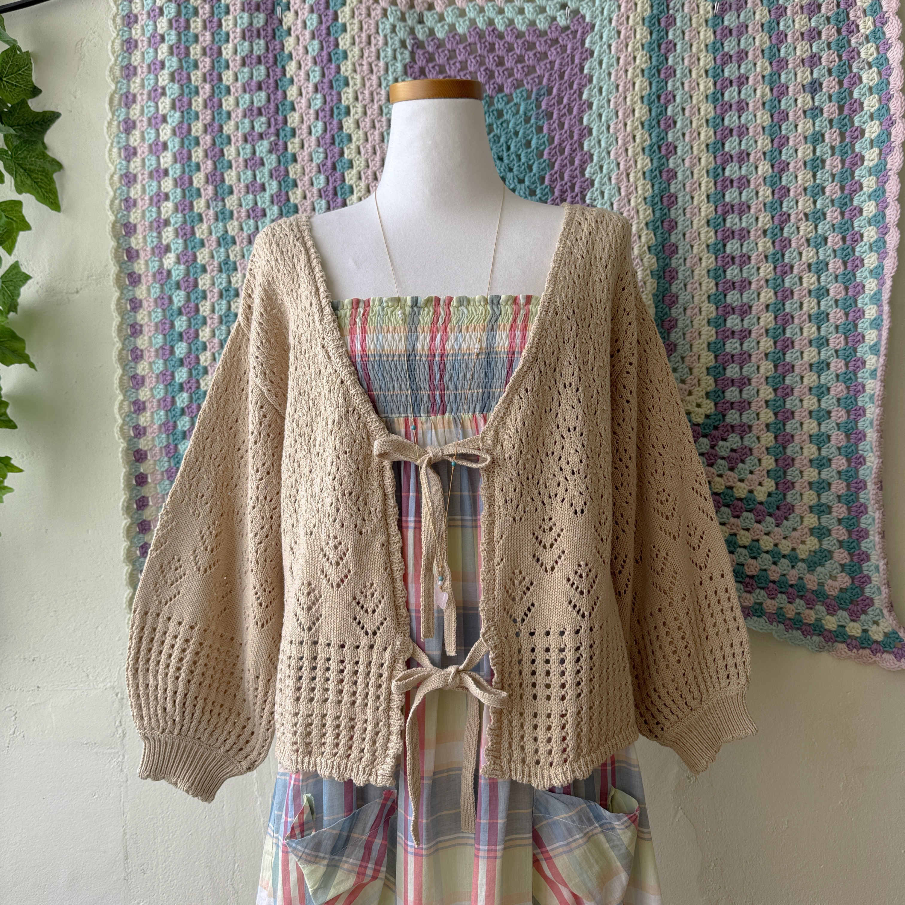 딥베이지 색감의 2리본 크로셰 가디건이에요