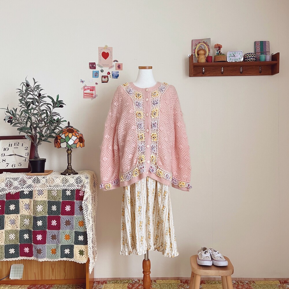 쨍하지 않고 은은한 파스텔 분홍빛의 가디건이구요