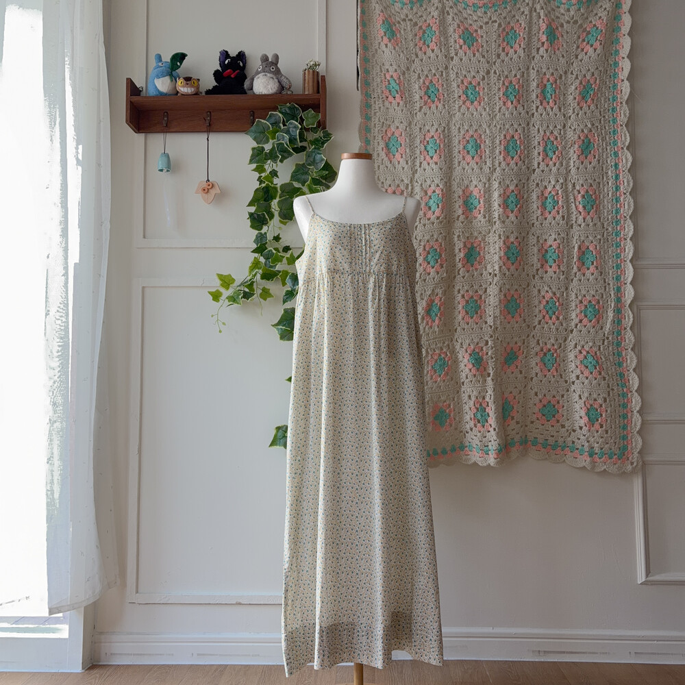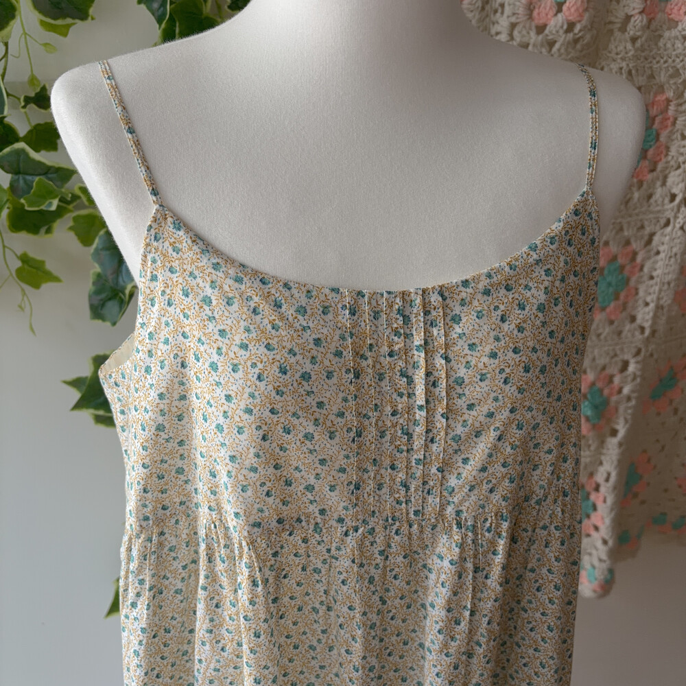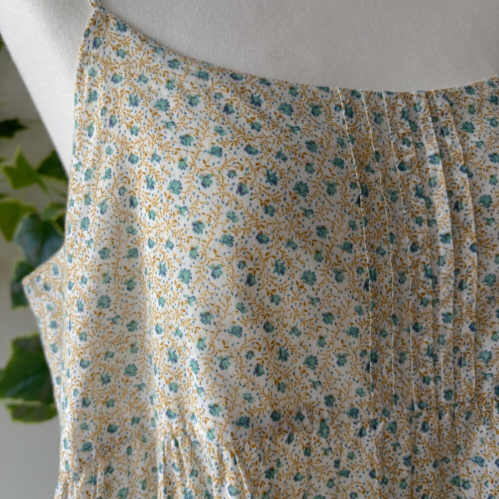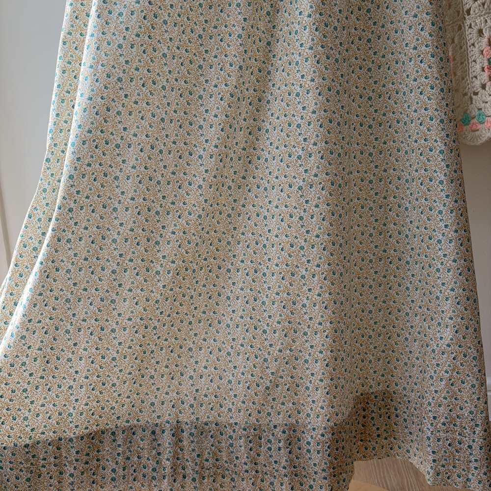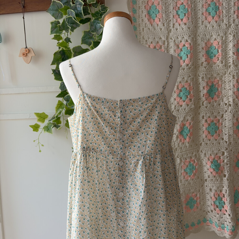 민트색 잔꽃 패턴의 코튼 끈원피스예요